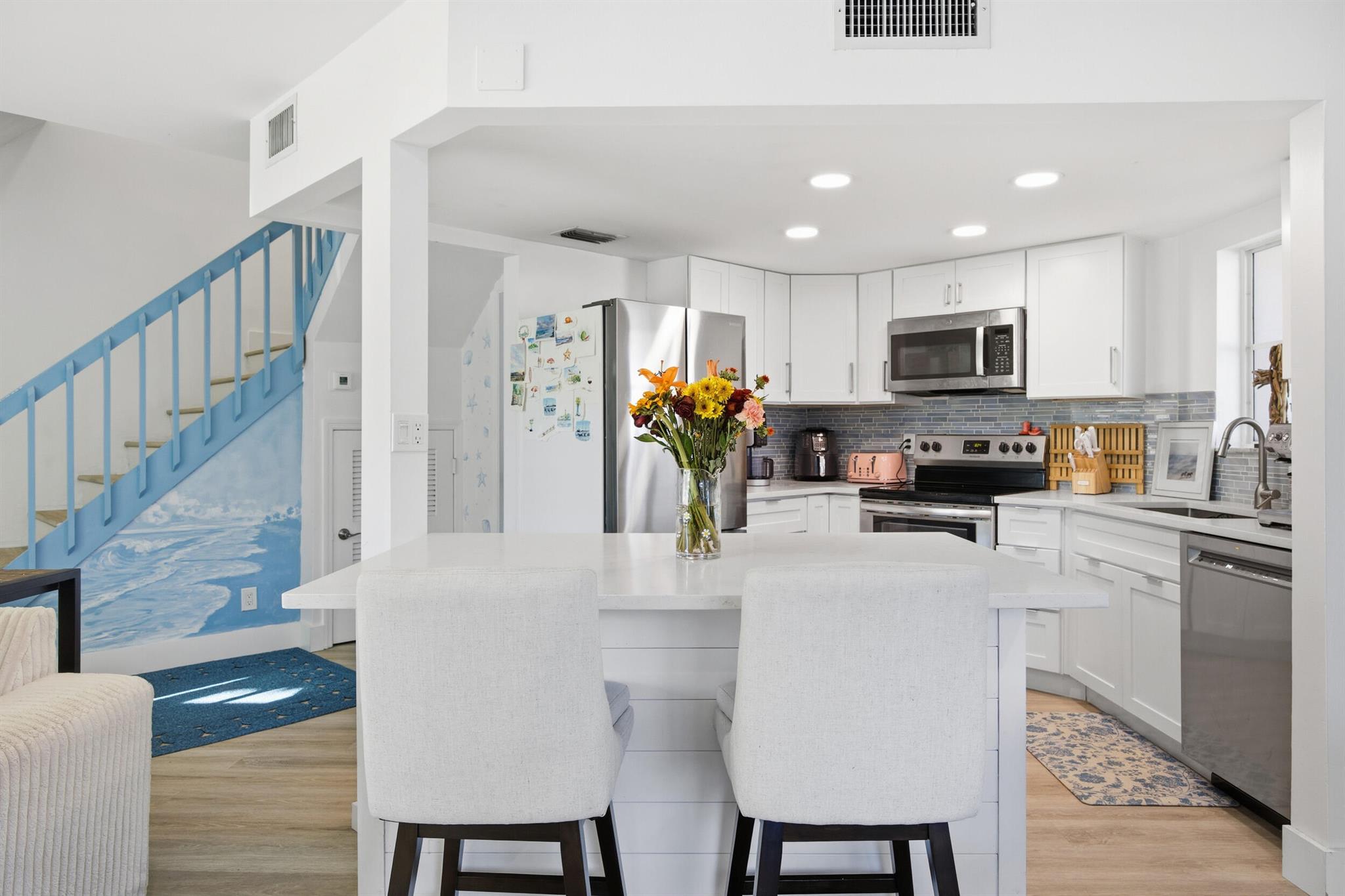 Beautifully updated in 2023, this inviting 2-bedroom, 2.5-bath, two-story townhouse is located in the gated, beachside community of Sea Brooke Place. Only a short walk from Jupiter's beautiful beaches, the home features a fresh, modern interior with a new kitchen, updated bathrooms, new flooring, impact windows and doors, and recently replaced AC and hot water heater.Inside, you'll notice the stunning custom Jupiter Lighthouse mural and the abundance of natural light that gives the space a warm, coastal feel. Sea Brooke Place also offers a private residents-only pathway that takes you straight to Jupiter's best beaches and the scenic boardwalk--just grab your beach gear and go.
