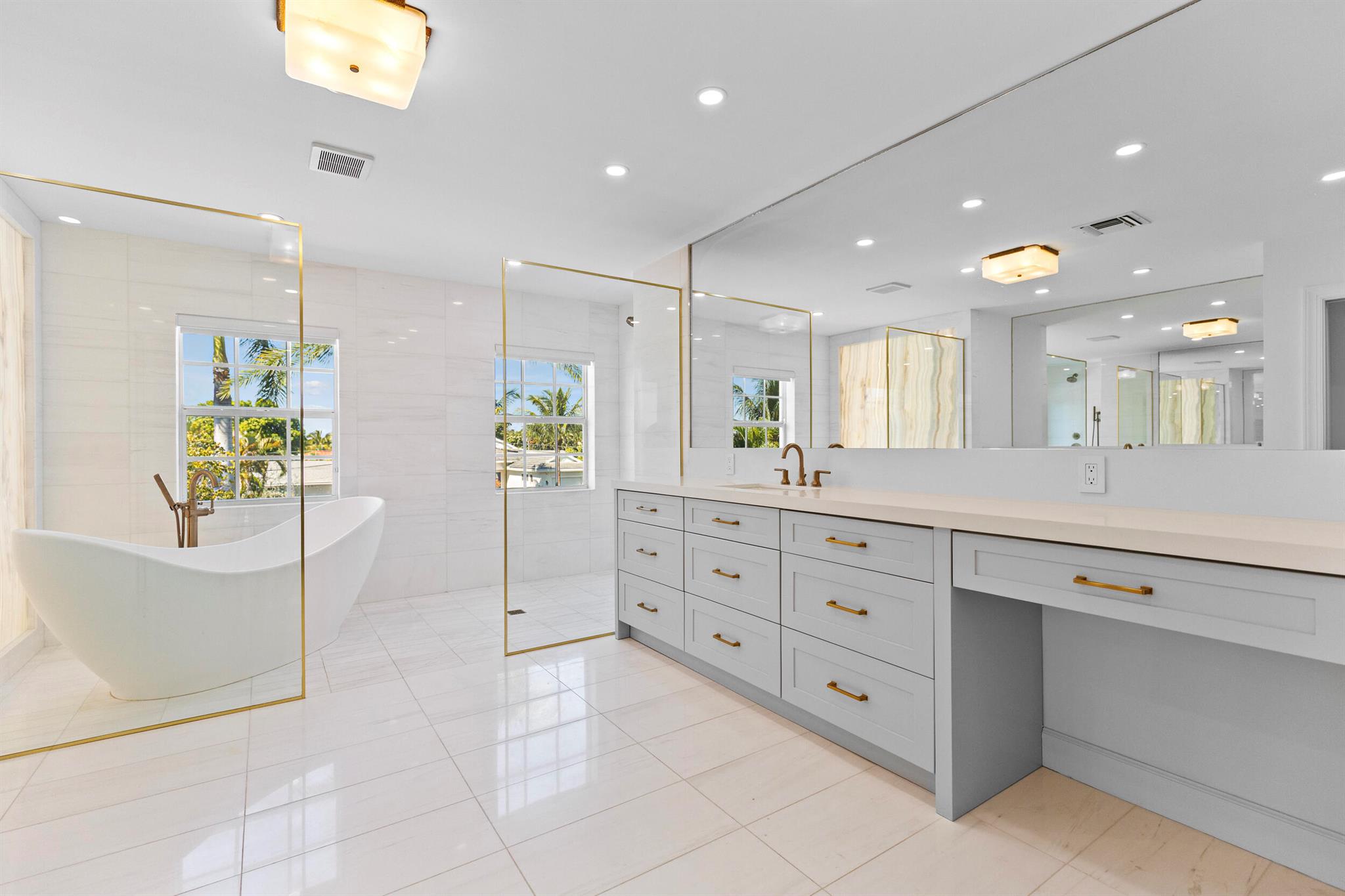 Stunning, fully renovated home in Delray Beach's highly sought-after Lake Ida community. This modern coastal residence offers hardwood floors throughout, impact windows and doors, and a brand-new roof. The chef's kitchen is exceptional, featuring dual refrigerators, dual dishwashers, a wine cooler, custom cabinetry, quartz and porcelain counters, and a built-in breakfast nook with bench seating. Each bedroom includes its own beautifully designed en suite bath. A custom office with built-in cabinetry provides a perfect work-from-home space. The backyard is a private oasis with new turf, new pool, and ample space for outdoor dining and entertaining. Ideally located just minutes to Atlantic Ave, Pineapple Grove, parks, Lake Ida, and Delray's award-winning beaches.