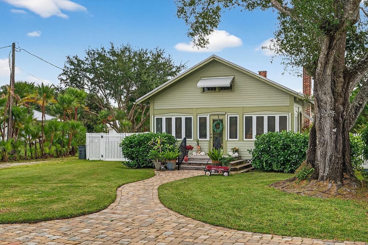 Step into history with this meticulously maintained 1926 Montgomery Ward ''Glen Ellyn'' kit home in Old Ft. Pierce. Loved by the same owner for 20+ yrs, this beauty is move-in or vacation rent ready (most furnishings incl.).The main home charms w/ high ceilings, original Dade County pine floors, & custom built-ins. The kitchen features a commercial 6-burner gas stove. Unique lot features the original water tower, now a custom tree house w/ deck. A detached 380 sq ft guest house offers great income potential, complete w/ a full bath, closet system, & small appliances. The laundry is located in the guest house structure but features a separate entrance, allowing for private use by a renter or the main house. Upgrades include a deep well (great water quality) & abundant custom storage.