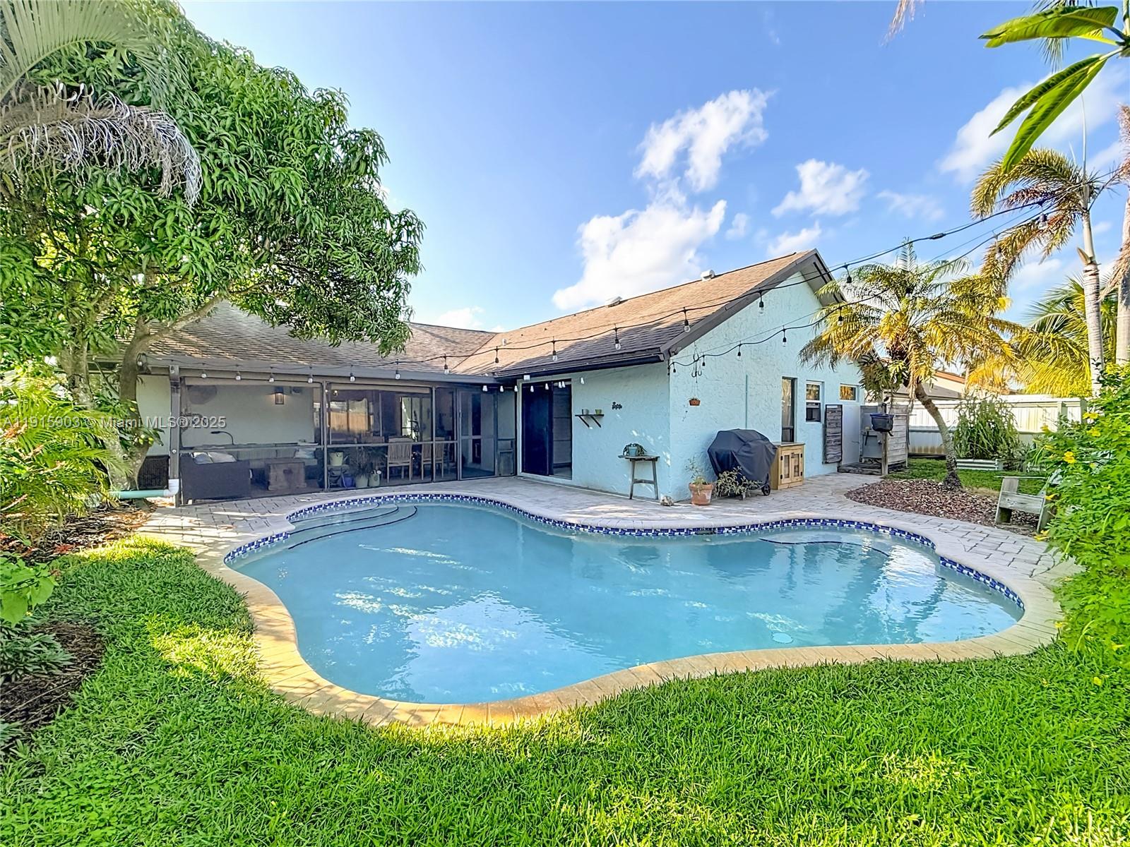 HOLIDAYS HAVE COME EARLY — SELLER JUST REDUCED THE PRICE! Beautiful and energy-efficient 3-bed/2-bath pool home in a highly desired Pembroke Pines neighborhood featuring an open kitchen with Corian countertops and custom Kentucky cabinetry, high ceilings, a large screened-in patio, and a backyard with mango and avocado trees and a free-form pool. The primary suite overlooks the pool and includes an upgraded bathroom with dual sinks, oversized shower, and freestanding tub, while the secondary bedrooms share a remodeled bath with a rain shower. Home includes zoned mini-split air conditioners, a tankless water heater, impact windows, and averages under $200/month in electric costs. With 1,805 sq ft of well-designed living space on a 7,009 sq ft lot, this home offers comfort, efficiency, and an ideal location.
