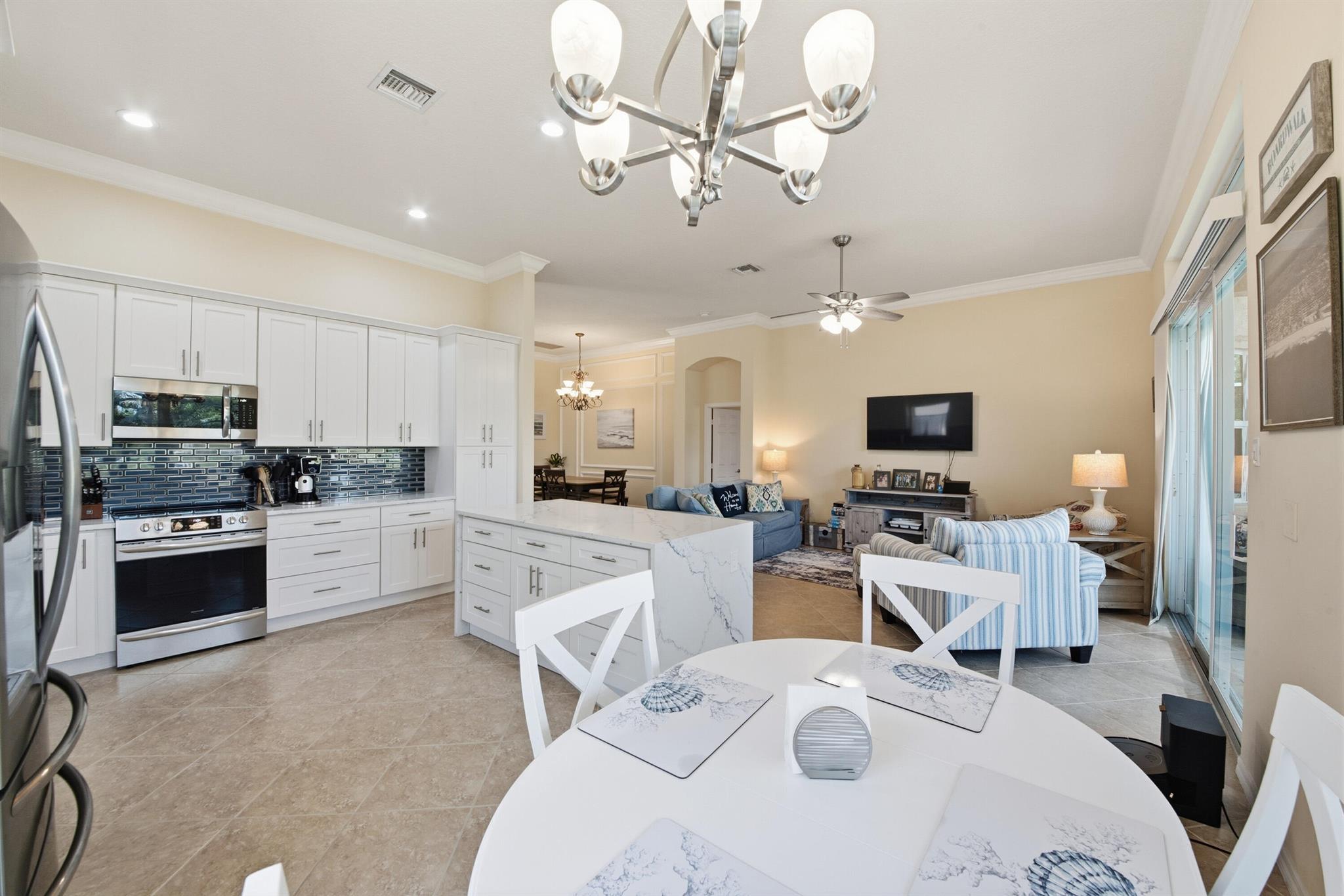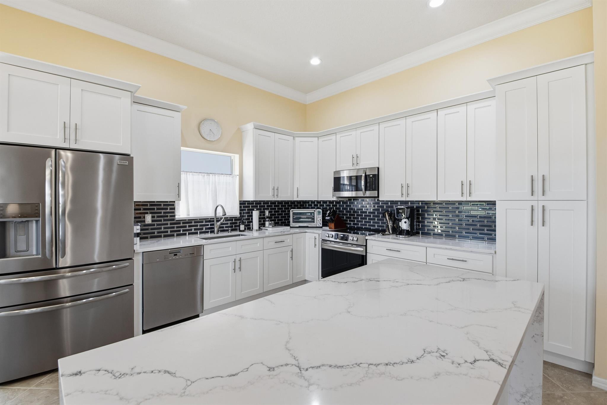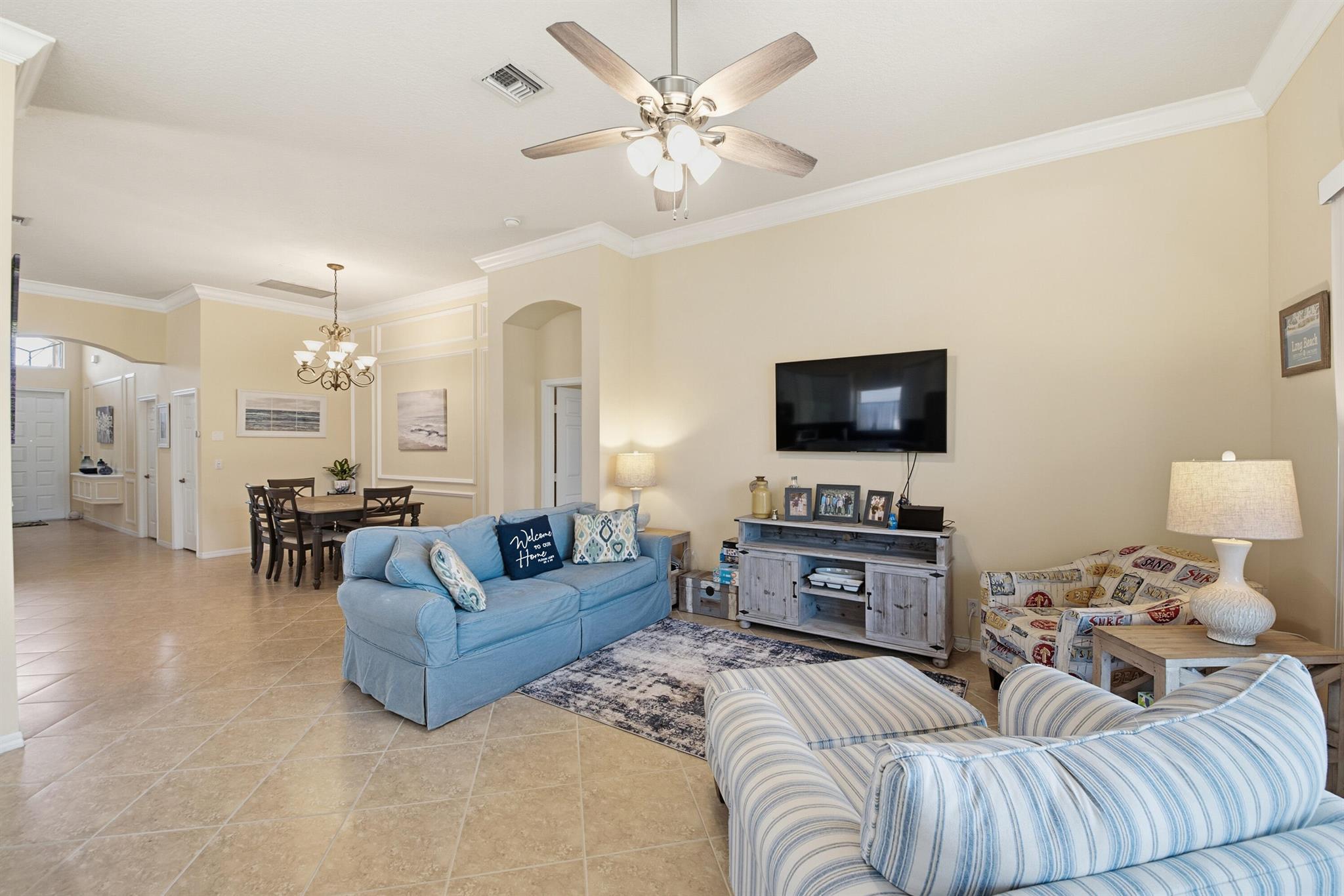 Don't miss out on this Beautiful single family Home w/ over 2200 SQ. FT. OF LIVING SPACE and a lovely LAKE VIEW - Plus a Bonus as most of the Furniture is included! Owners have kept this home immaculate. Interior features include: Remodeled Kitchen w/ Quartz countertops, Center Island, White Cabinetry, Tiled Backsplash & Stainless Steel Appliances; Tile & Laminate flooring throughout; A/C 2022; W/H 2021; Washer/Dryer 2024; ceiling fans; crown molding; high hat lighting. Exterior features: ''Panoramic'' Screened Patio w/ porcelain tile (Patio Furniture & Grill stay); Accordion hurricane shutters, Impact Windows (partial) & Impact Slider Door; Newer garage door opener & Gutters w/ downspouts.