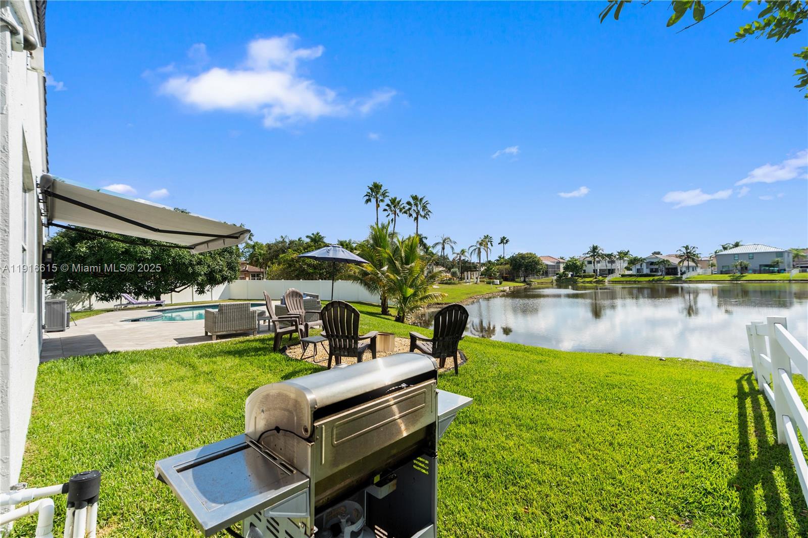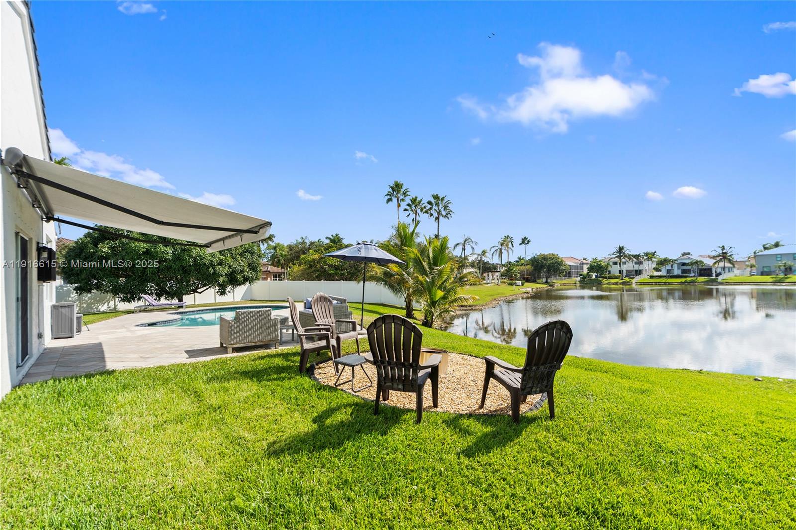 Resort-Style, Stunning Corner Lot - Spectacular Lake views from the moment you walk in and from Main bedroom, Family room & kitchen area. This fully remodeled 3-bedroom, 2-bathroom home with a 2-car garage combines modern luxury with serene lakeside living. Every inch of this spacious residence has been thoughtfully transformed with beautiful finishes: sleek quartz kitchen countertops with waterfall design, custom cabinetry, designer lighting, and spa-like bathrooms. Open concept living areas flow effortlessly, flooded with natural light and breathtaking pool and lake views. Expansive patio and lush landscape with mature Mango trees. New Roof 2024, Water heater 2024, Kitchen, appliances and cabinets recently remodeled. Impeccably maintained. Lot size 0.32 acre. Gated secured community.