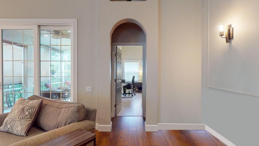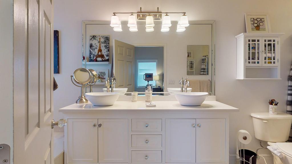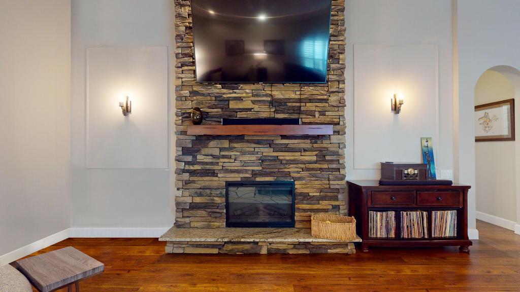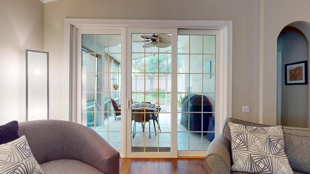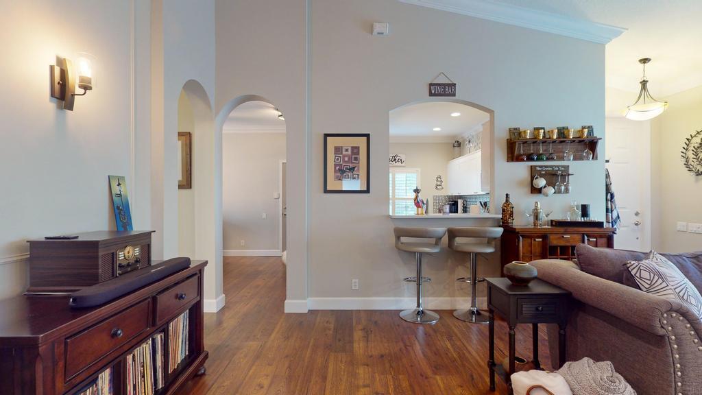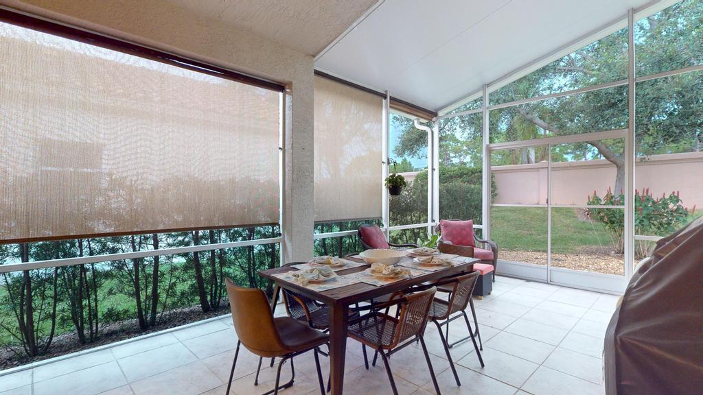 Step into luxury with this 2-bed, 2-bath Waterford model in The Cascades, an active 55+ golf community. This home features a stone accent wall & electric fireplace, creating a warm, stylish ambiance. The remodeled kitchen boasts Quartz countertops, a spacious island, modern backsplash & stainless steel appliances. The primary suite offers a large walk-in closet & spa-like ensuite with dual vanity, Roman tub & walk-in shower. The guest bedroom includes a Murphy king bed, while the guest bath showcases a glass-tiled shower & Quartz vanity. Enjoy the extended screened patio with roll-downs & Impact Sliders, perfect for relaxing or entertaining. Additional features include a split floor plan, 5'' baseboards, plantation shutters, generator hookup, newer AC & water heater. 2.75% Assumable Mtg!
