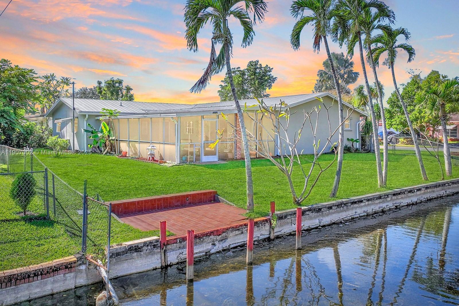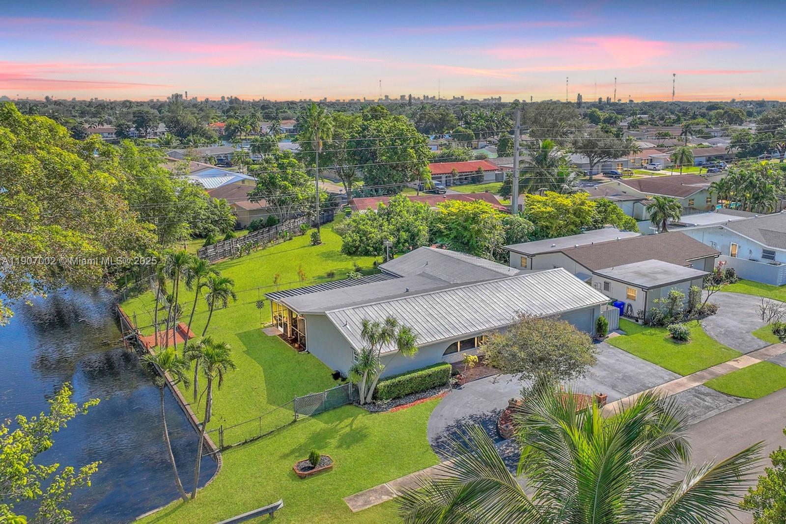 Spectacular waterfront corner lot home featuring 4 bed 2 bath situated on an 8,500 sq ft corner lot in Pembroke Pines. Bright home offers exceptional curb appeal w circular driveway 2 car garage. Inside you will find an updated kitchen w white wood style cabinetry & stainless steel appliances. Split floorplan, both baths have been tastefully renovated. Enjoy South Florida living on amazing screened-in patio ideal for relaxing, dining outdoors, or hosting gatherings while overlooking the tranquil waterway. A terrace at the water’s edge provides inviting outdoor space with peaceful, long-lake views. Home has full hurricane protection w impact windows & shutters combo. Durable metal roof, a 3 year old AC and No HOA. Conveniently located near great dining, shopping, parks & schools.