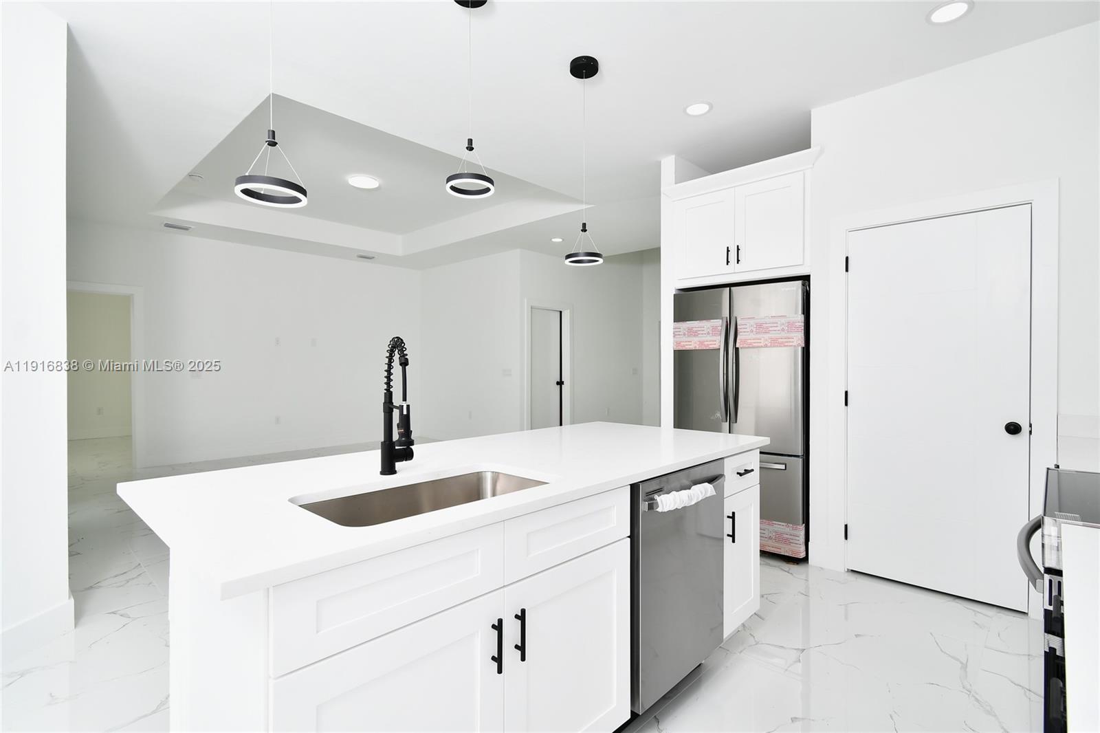 Seller is offering $15,000 towards buyers closing cost. Centrally located this is a gorgeous brand new 4/3 and double car garage home. This single-family residence offers the perfect blend of comfort and security. Step inside to discover a beautifully appointed interior where natural light floods through the impact hurricane windows and sliders. No expense has been spared. Double high impact doors, 10-foot cathedral ceilings. Imported ceramic floors throughout. Kitchen with huge island, quartz counter tops, modern lights, stainless steel appliances. Master has his and hers walk-in closets, double sink and walk in shower. Guest bathroom with matching quartz and glass enclosure. Plenty of room for a pool. Automatic sprinklers. COME SEE IT BEFORE ITS TOO LATE!!
