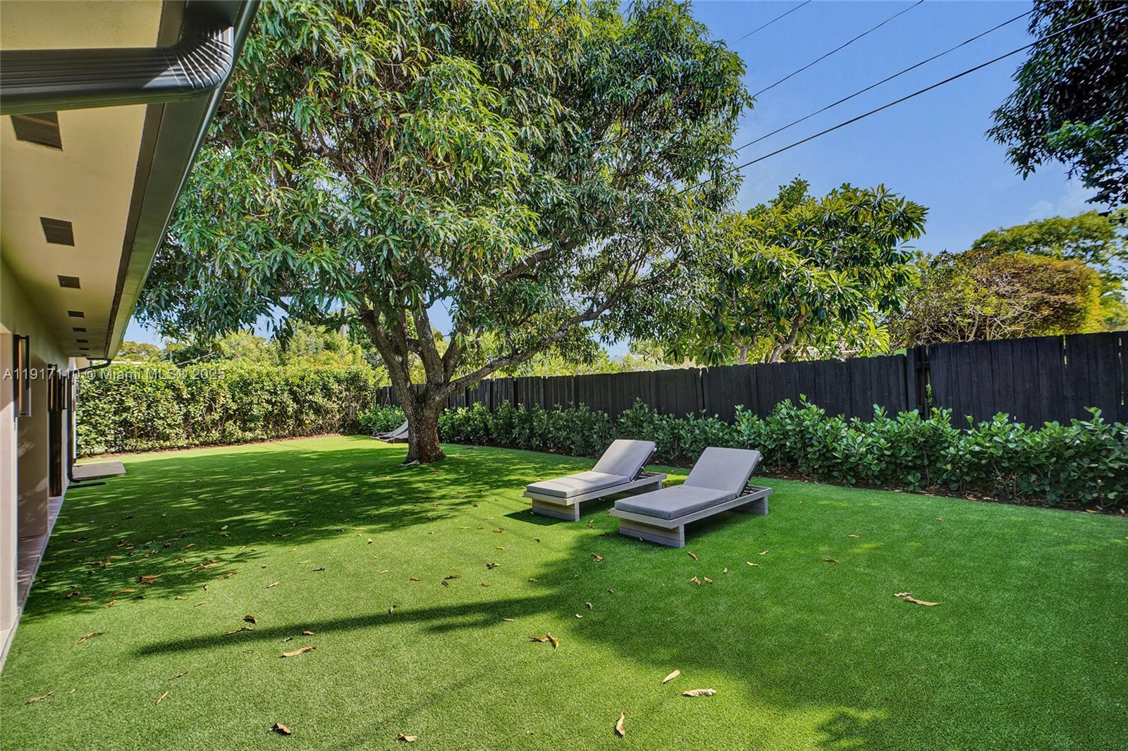Stunning, fully remodeled modern home featuring clean architectural lines, warm natural tones, and top-quality finishes throughout. The open-concept layout highlights a sleek Italian-style kitchen with custom wood cabinetry, quartz countertops, and top-of-the-line appliances, including stainless steel appliances. This elegant residence features impact-resistant windows and doors, Italian-built-in closets, large porcelain floors, high ceilings, and designer LED lighting. The spacious living and dining areas are surrounded by glass sliders that fill the home with natural light and create a perfect indoor-outdoor flow. The outdoor space is designed for entertaining, featuring a built-in BBQ, artificial grass, and beautifully landscaped gardens. Every detail combines luxury and functionality