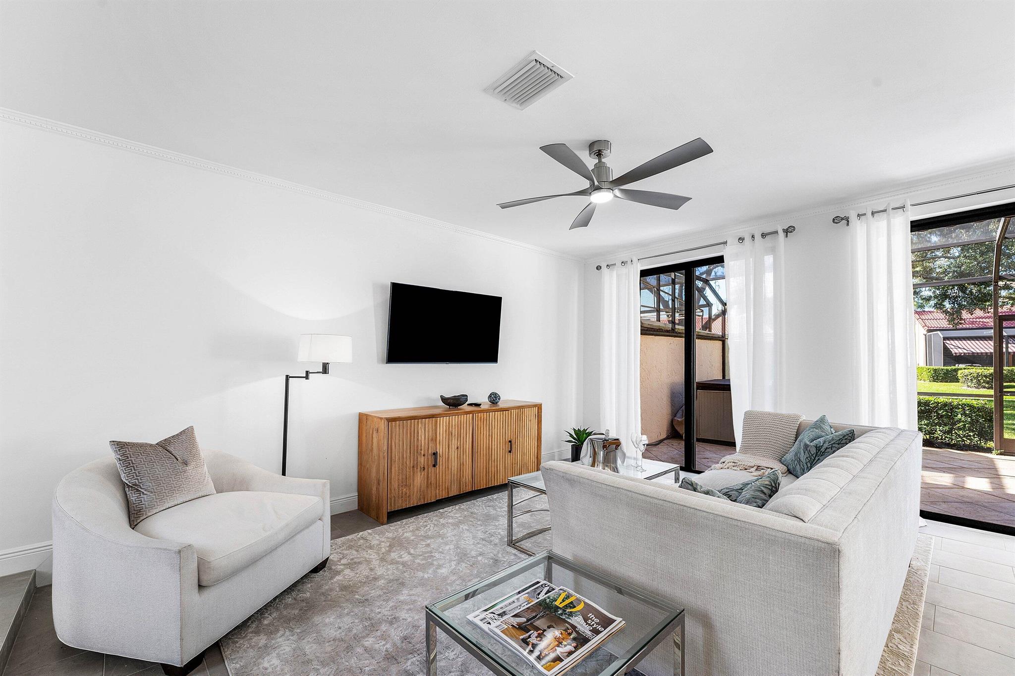 Fabulous and fully remodeled, 2-bedroom, 2.5-bath townhome with a one-car garage, 6 car driveway and New 2025 roof! Located in the prestigious PGA National! This beautifully updated residence offers modern finishes throughout, including a sleek kitchen with stainless steel appliances, stylish bathrooms, modern stairway and spacious living areas filled with natural light. Perfect as a primary residence, vacation home, or investment property.The open floor plan seamlessly connects the indoor and outdoor spaces, with a private patio & a wide treed garden space ideal for relaxing or entertaining. Bedrooms feature large walk-in closets, providing ample storage space. Located close to the community pool, you'll enjoy easy access to golf and recreation.Situated in the world-renowned PGA National