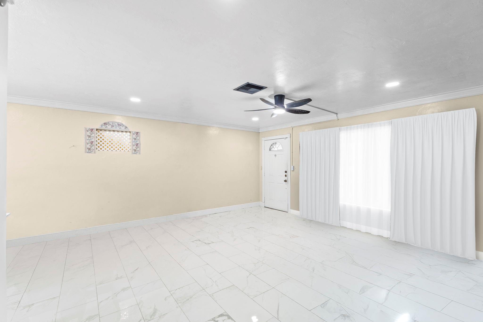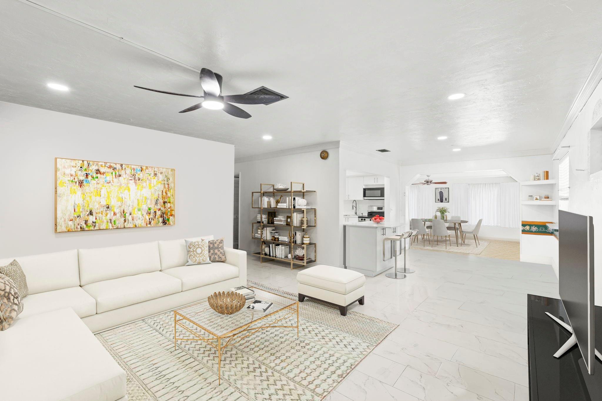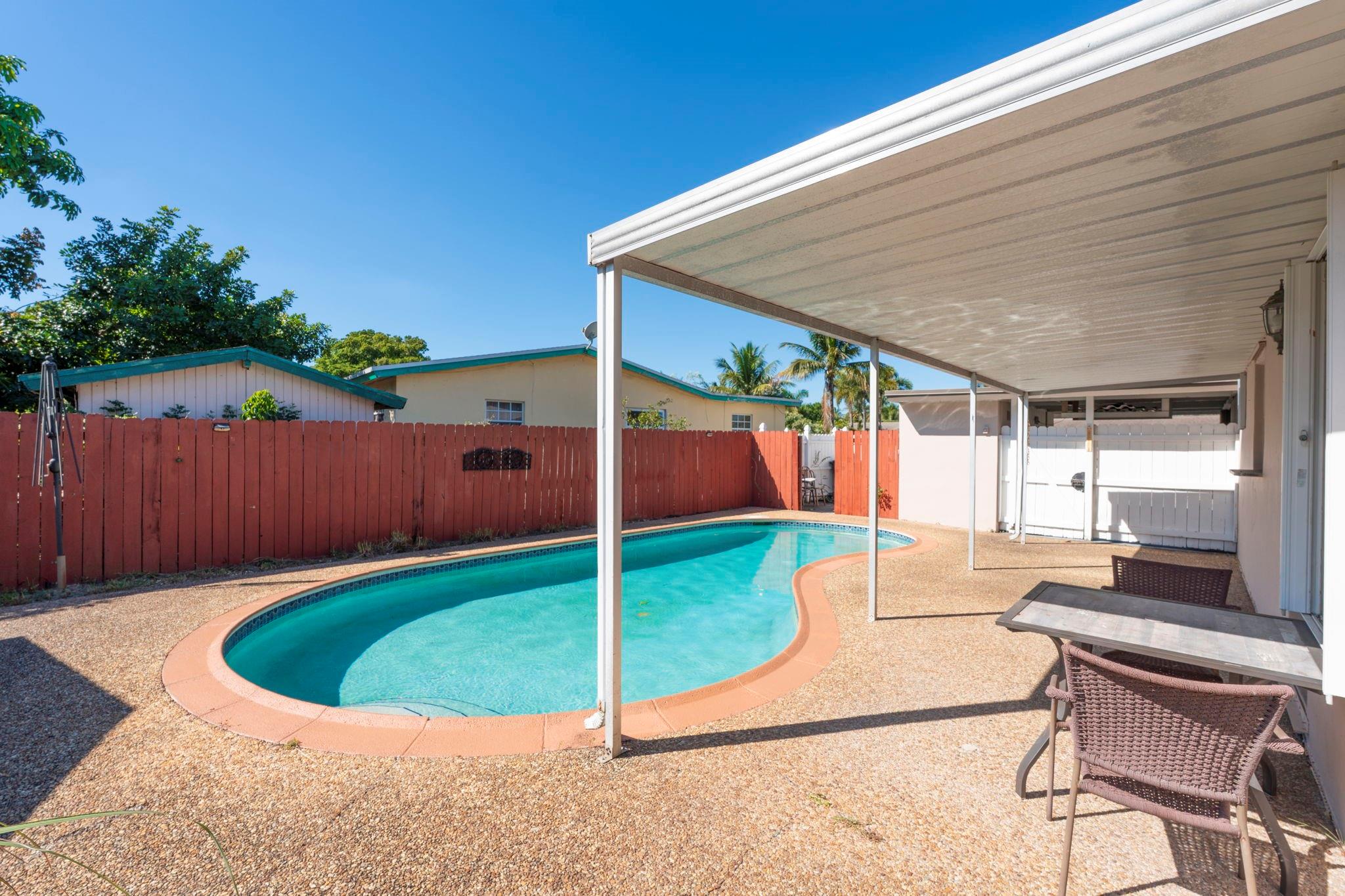 Welcome to this charming and well-cared-for 3-bedroom, 2-bath home located on a quiet interior street close to shopping, schools, and major airports. The home features a fenced pool with a covered patio area—perfect for relaxing or entertaining—and a spacious backyard complete with a storage shed. Inside, you’ll enjoy a recently updated kitchen with modern finishes and new appliances, along with new porcelain tile flooring throughout the main living areas. Additional highlights include crown molding, a tankless water heater, an indoor washing machine, and extra storage/workspace in the carport area. The large front porch offers a welcoming space to unwind and enjoy the breeze. A fantastic opportunity to own a well-kept home in a desirable, family-friendly community.