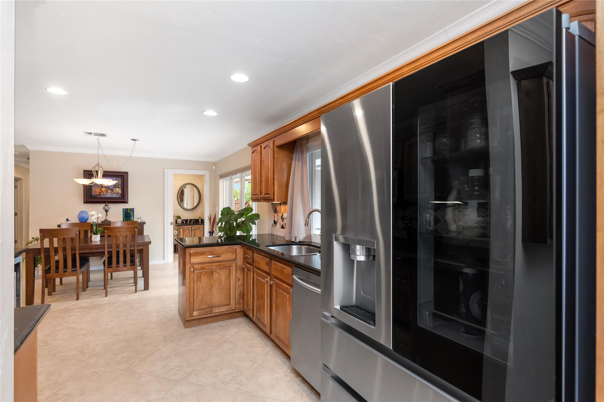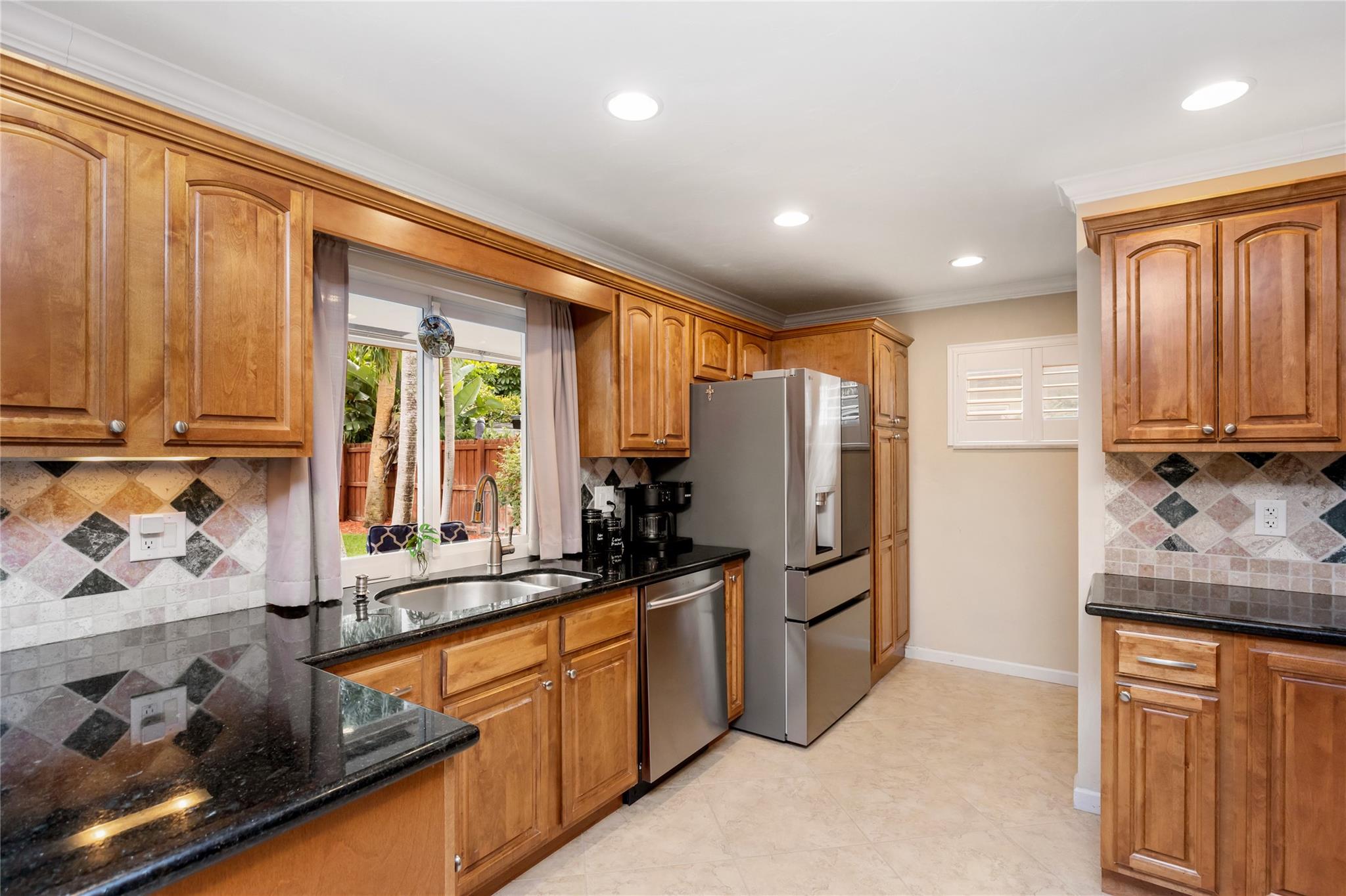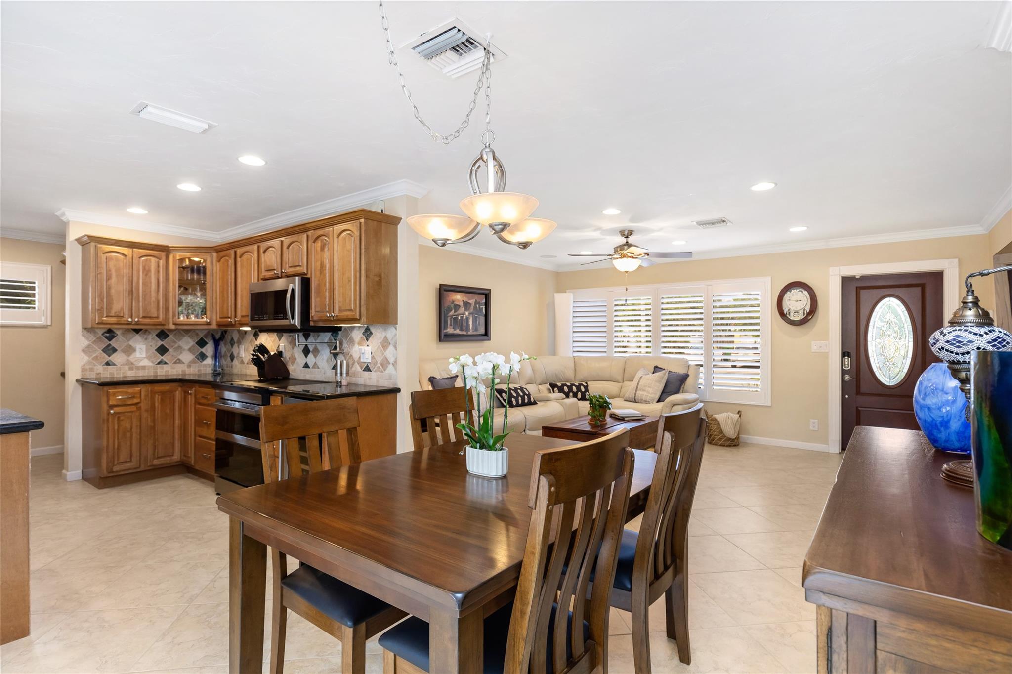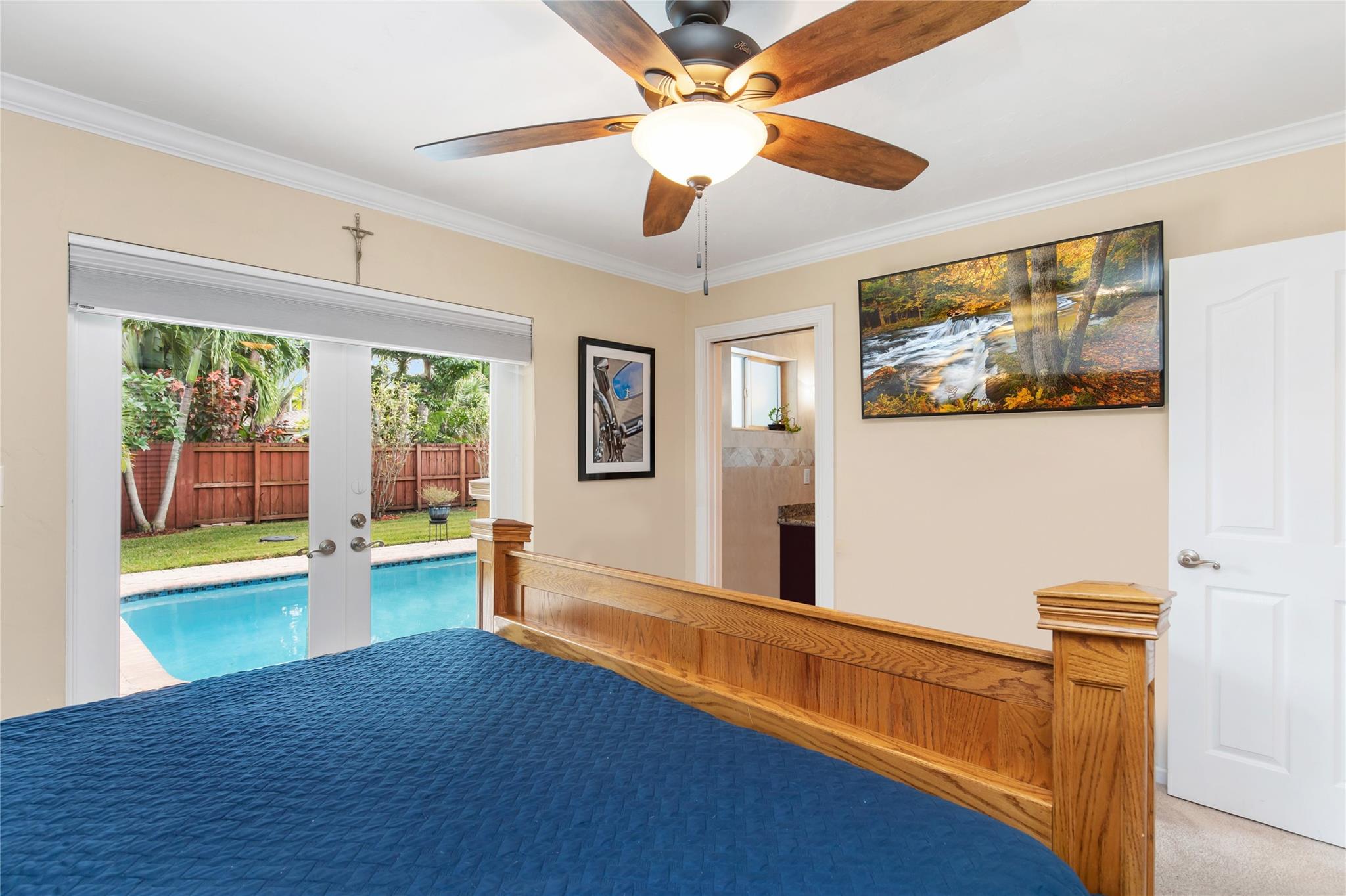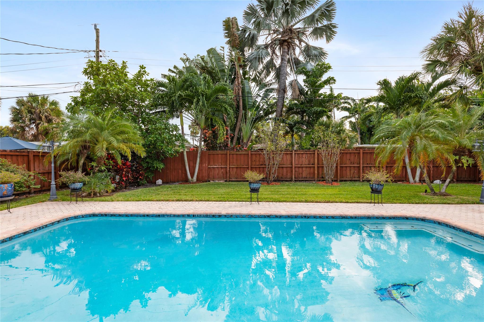 Beautifully maintained 3BR/2BA home in sought after Imperial Point with a private Tropical Backyard and Sparkling Pool. Enjoy an updated kitchen with brand-new appliances. Spacious living and dining areas with a Full-House Generator, plantation shutters, crown molding and neutral finishes throughout. The primary suite offers pool access and a well-appointed bath with jetted tub and glass enclosure. Outdoor features include a heater/chiller pool system, lush landscaping, and ample patio space for entertaining. Additional upgrades: New A/C, Mosquito Misting system, and Impact Windows/Doors. Move-in ready home in a fantastic East Fort Lauderdale location, close to shopping, dining, parks, and about 2 miles to the beach without the beach price!