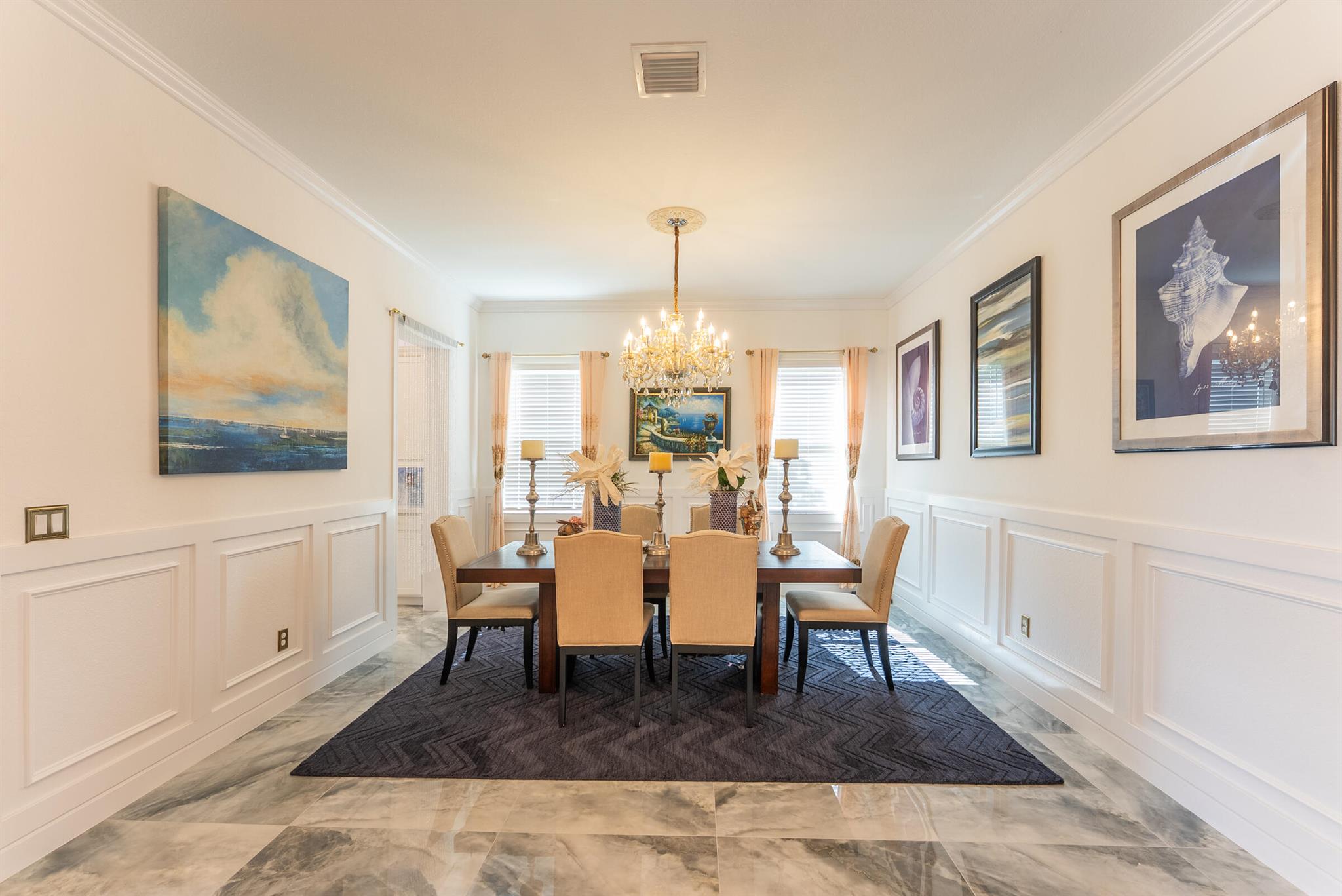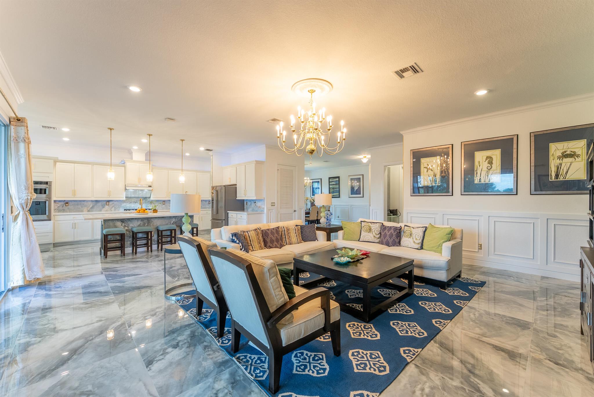 Welcome to Arden - where every day feels like a vacation.This beautifully appointed 4-bedroom, 4-bath, two-story home sits on a desirable corner homesite with no rear neighbor, offering long sight lines and tranquil water views. With a 3-car garage, screened and covered patio (complete with fans and a utility sink), and fully fenced backyard, this home blends comfort, function, and style.Inside, the main level features elegant crown molding, wainscoting, and gorgeous tile floors throughout. The heart of the home is the spacious chef's kitchen, showcasing a large island, gas cooktop, wall oven and microwave, upgraded fixtures, recessed lighting, and a butler's pantry for extra storage and prep space. The main level also includes a full guest suite, ideal for visitors or mu