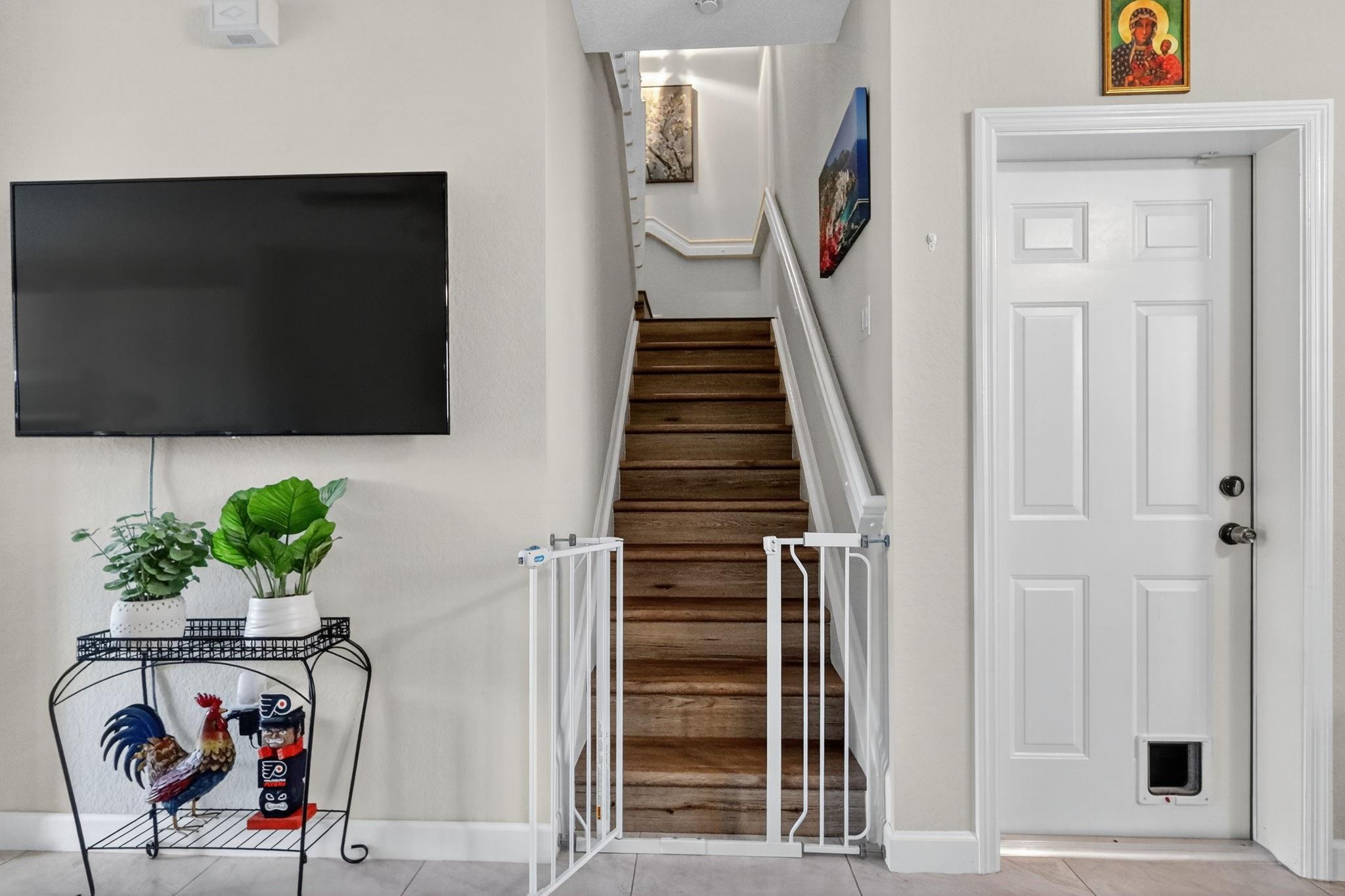 3 bedroom, 3 full bath townhouse with 1 car garage PLUS LOFT that can be enclosed for a 4th room. Mini office work station. One full bedroom & bathroom on first floor. Laundry on the first floor. Home is located on a pond w/ privacy hedges. Cul de sac street. Tile & laminate throughout. Smart stainless steel appliances. Hurricane accordian shutters. Approx ages: water heater 2 yrs, washer dryer 5yrs, appliances 3 yrs. HOA includes: cable, alarm, internet, manned guard gate, amenities. Gated community w/pool, kids pool, clubhouse, gym, tennis. Centrally located. Pets allowed.