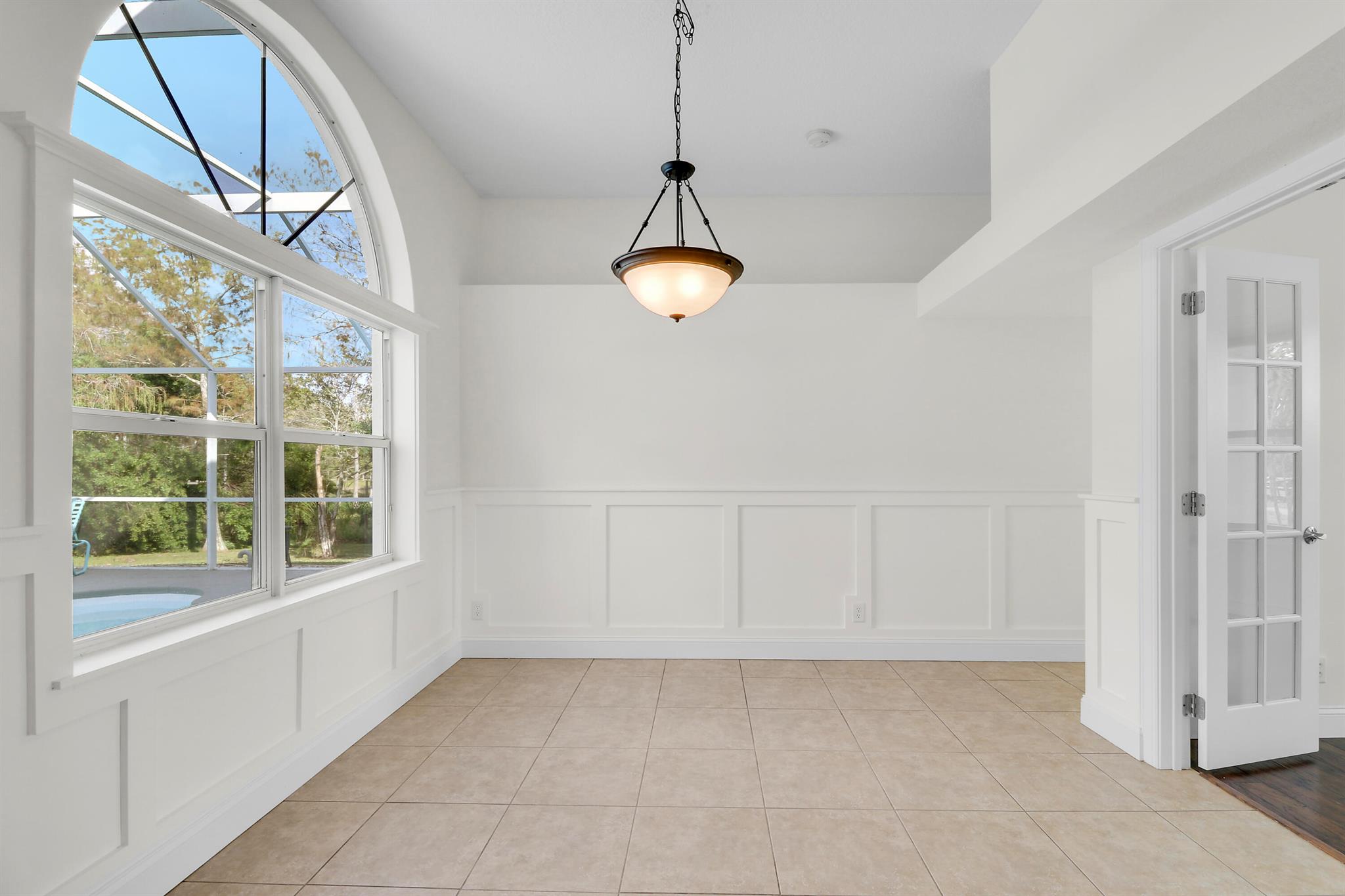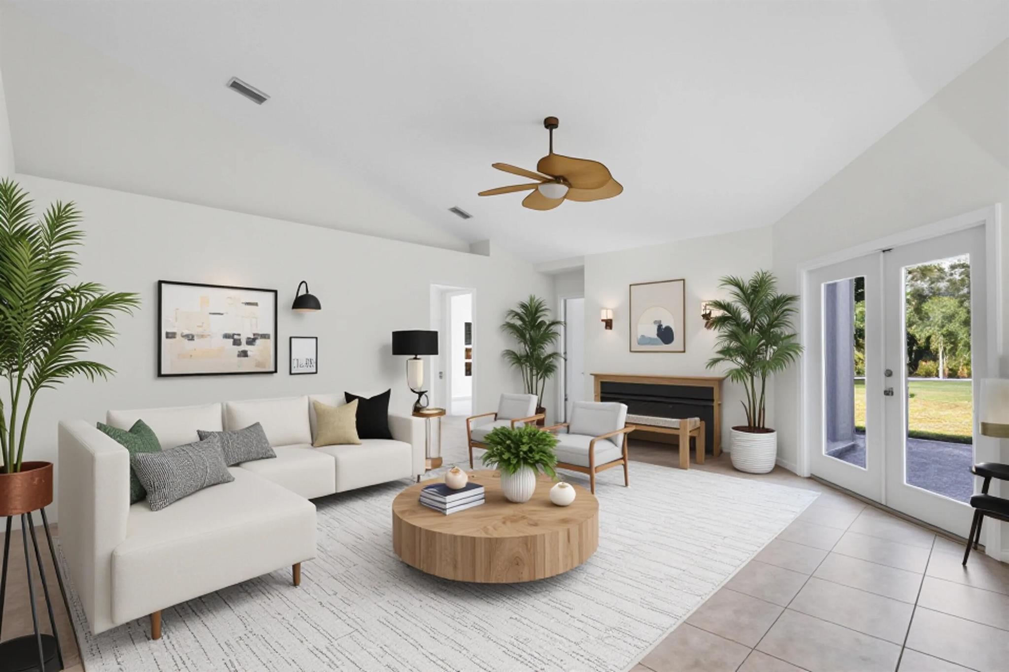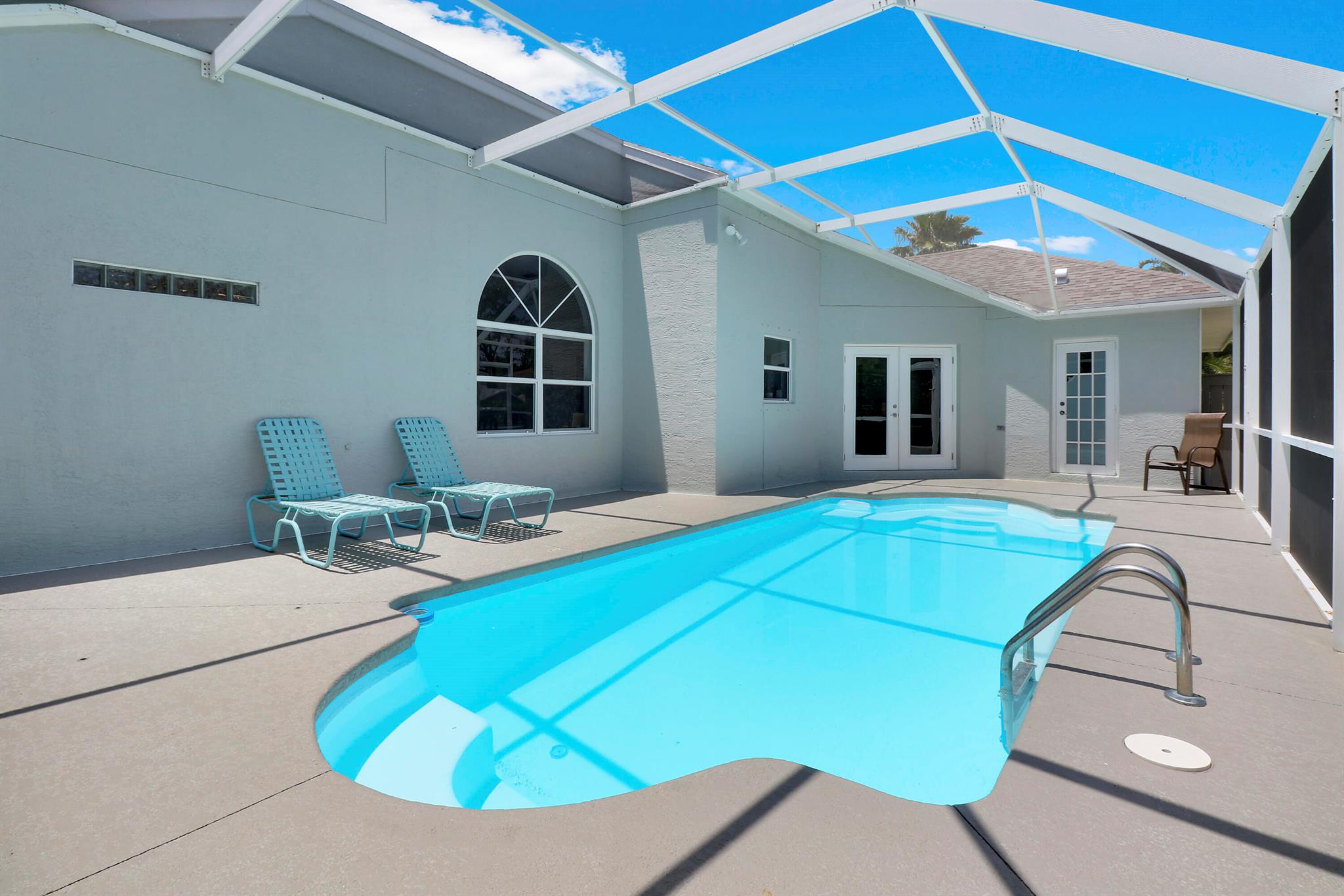 A must see! This CBS 3BR/ 2BA/2 Car + Den pool home sits on 1.25 acres and is fully fenced yard for your pets & children. Featuring 1928 SF under air. The lovely oversized covered front porch gives a warm welcoming feel. The home is light, bright and features high ceilings, tile & wood throughout with custom wainscoting in the Dining area. Kitchen features quartz counters and stainless appliances. The master BR is roomy with large windows, 2 closets and updated master bath. The den, also large, offers ample space. An RV carport sits on a concrete pad offering various types of usage and also be accessed from a back entrance on the adjacent road. The roof is 2023 making this CBS home a solid build. Close to dining, shops, entertainment, beaches, I95, FL Turnpike and airport.