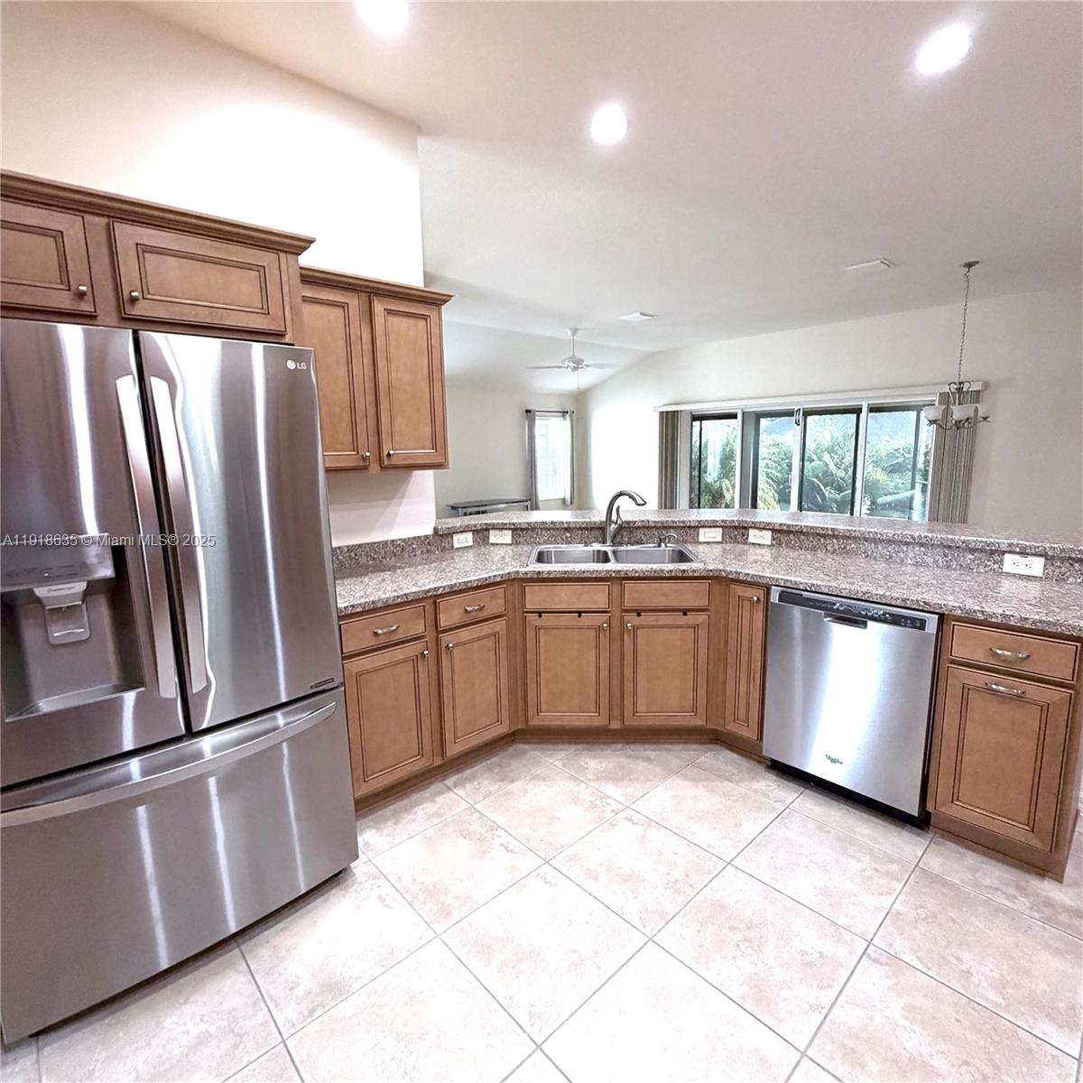 Immaculate 3/2 Begonia Designer Home. 2731/Tot sf. Features open concept, Coffered Ceiling aprimary BR. Appliances on site incl W/D, Fridge Stove Micro. Extendable rear awing Paver Tile BBQ Patio. 3-car parking (2+Golf Cart). Custom Driveway, Well maintained landscaping. Walk in closets, Walk in Shower, Enclosed Tub, Extra Shelving, Tasteful decor. Wall TV in BR. Pull-down access ladder to Garage upper-storage. Lots of extras. Big, Bright & Open.