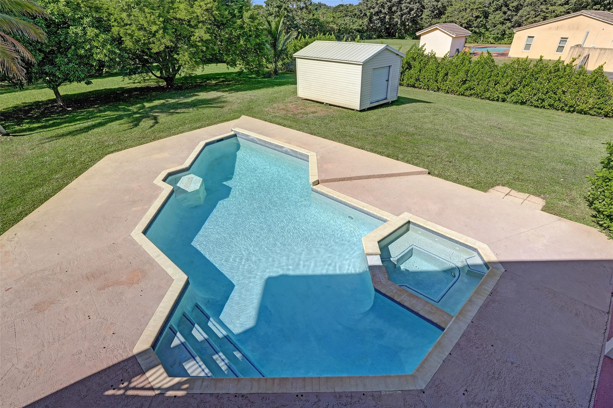 Stunning 5BD/3BA estate on 1.25-acre fenced lot in sought-after, equestrian-friendly Davie. Gated entry with intercom, extended driveway, and 3-car garage. Built solid with concrete block construction in 2003 and completely renovated top to bottom. Brand-new roof, all hurricane impact-rated windows, doors, and garage doors. First floor features soaring 25-ft ceilings, open living area, family room, and breakfast nook overlooking covered patio and heated pool. Chef’s kitchen opens to pool—ideal for entertaining. Upstairs offers DOUBLE MASTER BEDROOMS, 3 additional rooms + loft, hardwood flooring, glass railings, and wraparound balconies with backyard views. All bedrooms upstairs. Includes water treatment system and detached storage unit. Zoned for A-rated schools. Move-in ready!
