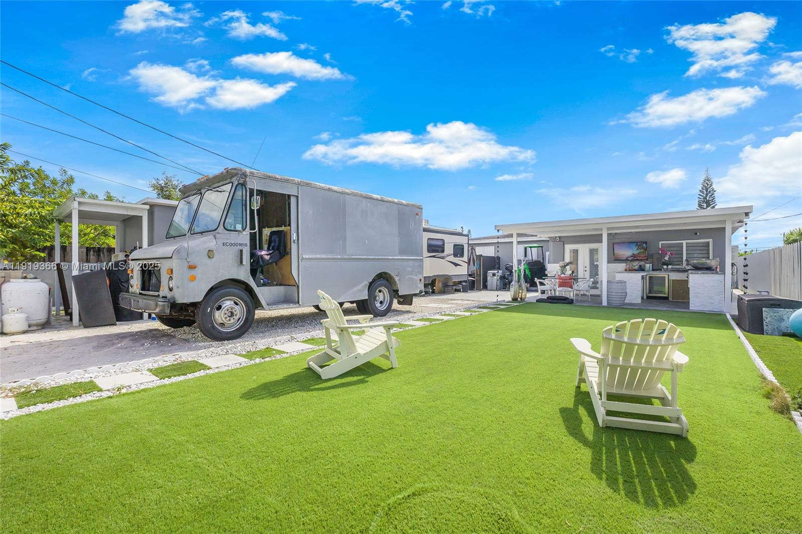 Beautiful 3-bedroom, 2 bathroom home in Homestead featuring a bright open floor plan, modern flooring, recessed lighting, and an updated kitchen with white cabinetry, quartz counters, stainless steel appliances, and plenty of storage. Stylish bathrooms and an indoor laundry area add convenience. The backyard is an entertainer’s dream with a spacious covered outdoor kitchen, bar area, TV setup, and low-maintenance turf. Property offers gated parking with room for RVs, boats, or work trailers. Includes an on-site RV for extra space or storage. Move-in ready and located near schools, shopping, and major highways.
