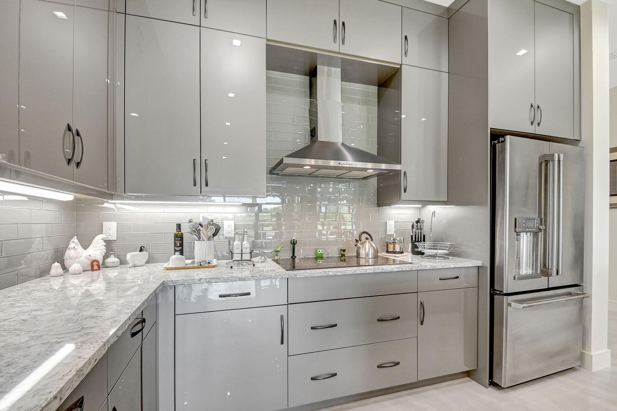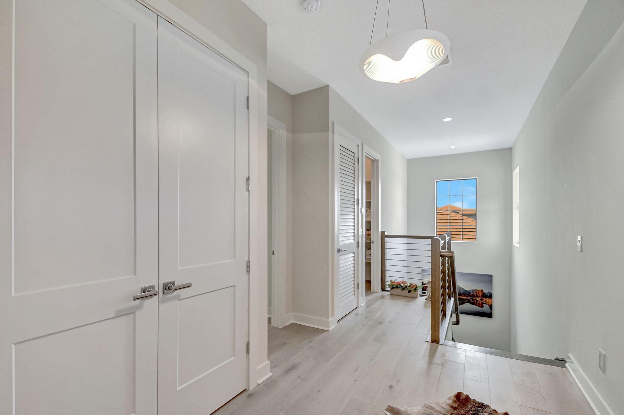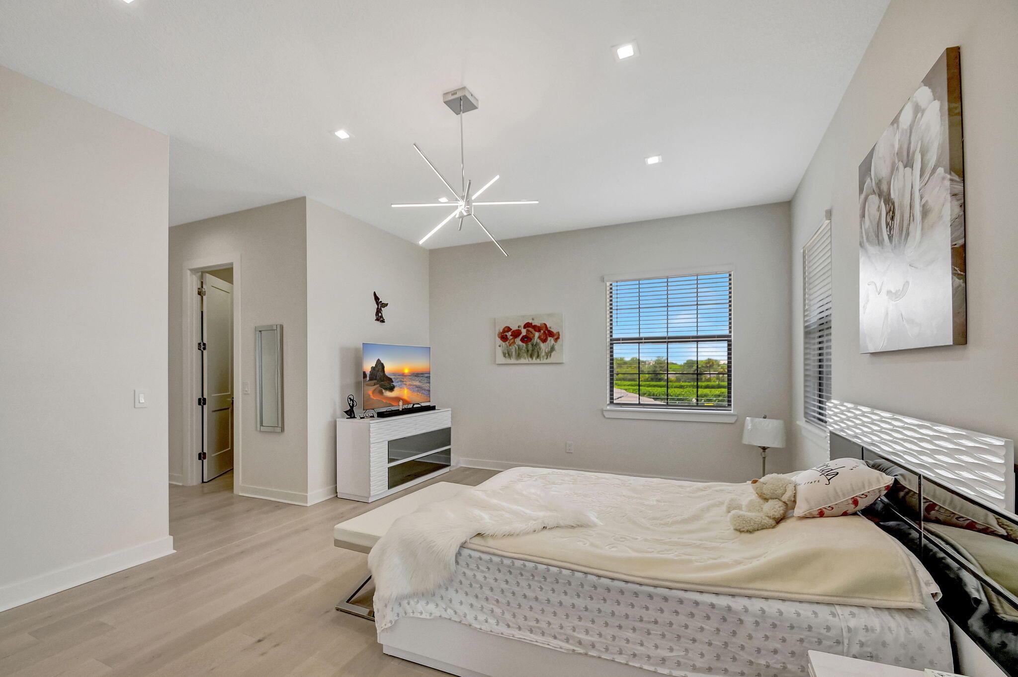 Hidden Gem! Stunning, built in 2021 home in the exclusive, gated community of Banyan Cay Resort near private golf course, WPB Downtown. This pristine residence on the lake features 3 suites, half bath and a 2-car garage. With 10.5 ft. ceilings and recessed lighting throughout, the home feels airy and grand. The gourmet designer kitchen is a chef's delight, showcasing custom cabinetry, quartz countertops & a waterfall island that opens to the dining area, den, living room, and expansive covered patio perfect for entertaining. On the first floor, you'll find a bedroom suite, a half bath, and a laundry room. The master suite is located on the second floor & offers two custom-built walk-in closets and a luxurious bathroom with dual sinks, granite countertops, a bathtub, and a separate shower