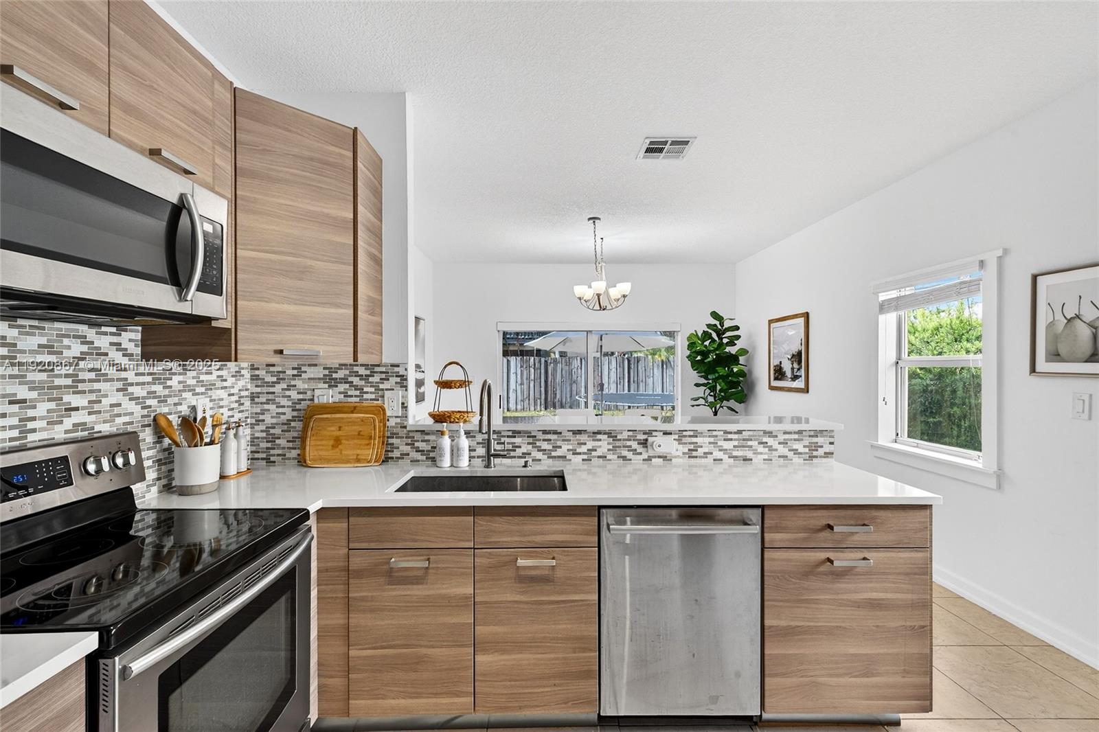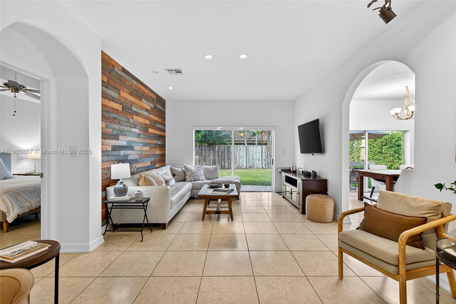 Beautifully updated single-family home in the gated community of Oak Creek. This 3-bedrooms, 2-baths residence blends modern updates with a spacious, flowing layout. The updated kitchen and tile flooring extend through the living areas, while a split bedroom plan adds privacy. The primary suite features both a reach-in closet and a large walk-in closet with en-suite bathroom. High ceilings create an airy feel, and the large backyard offers room for outdoor entertaining and a future pool. Oak Creek provides security, a friendly neighborhood, and easy access to parks, shopping, dining, and highways.