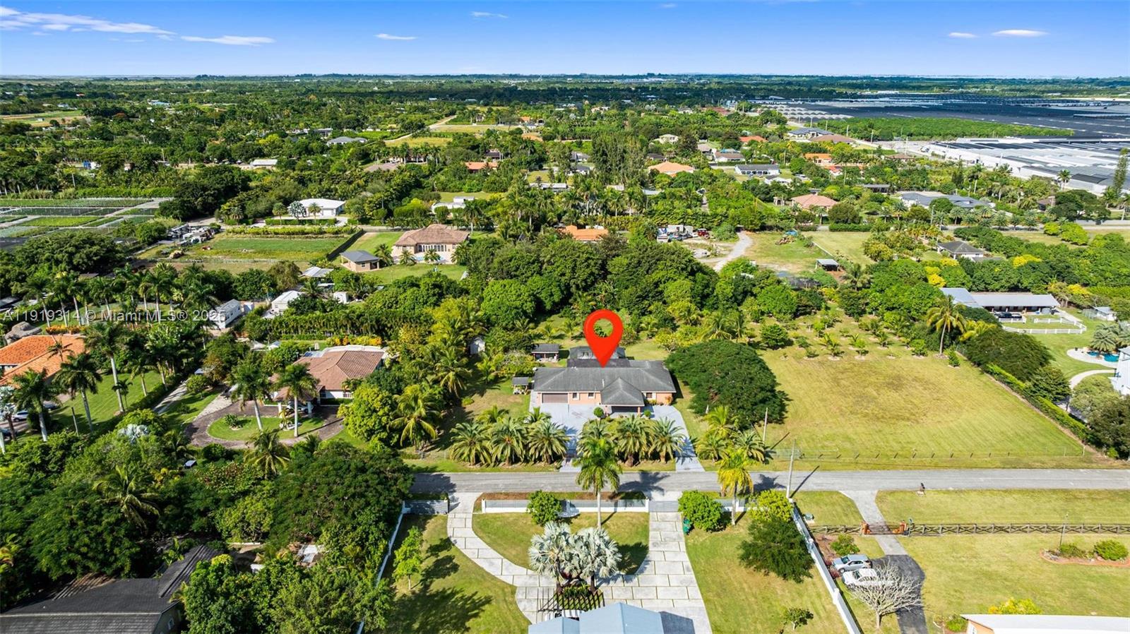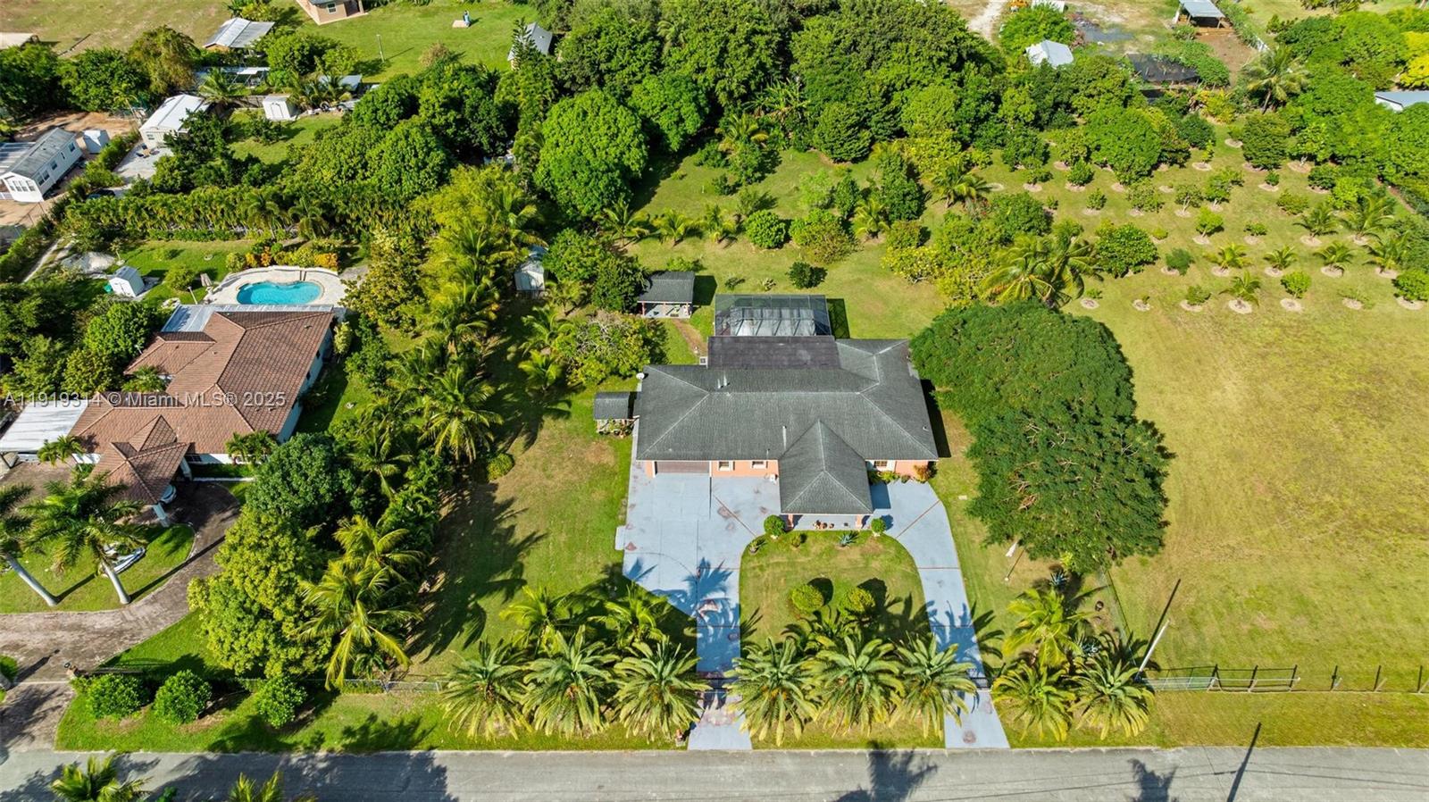 Beautiful ranch style home on 1.25 acres in The Redlands. Features 4 spacious bedrooms, including a hurricane safe bunker room, AC units were replaced less than two years ago, irrigation system. Cozy living areas, large lanais with new screen and doggie door, 2 electric gates, surrounded by exotic fruit trees (Lychees - Mangos - Mamey - Lemon - Orange - Avocado - Bananas and MORE). Enjoy privacy, nature, and peaceful country living while staying close to Baptist Hospital West and Health Centers, shops, schools, parks, wineries, Knaus Berry Farm, Fruit & Spice Park, Black Point Marina, and major highways. A unique property with endless possibilities! Close Krome Ave, Turnpike, US-1, and just 30–35 minutes from Kendall and 40 minutes from Miami International Airport.