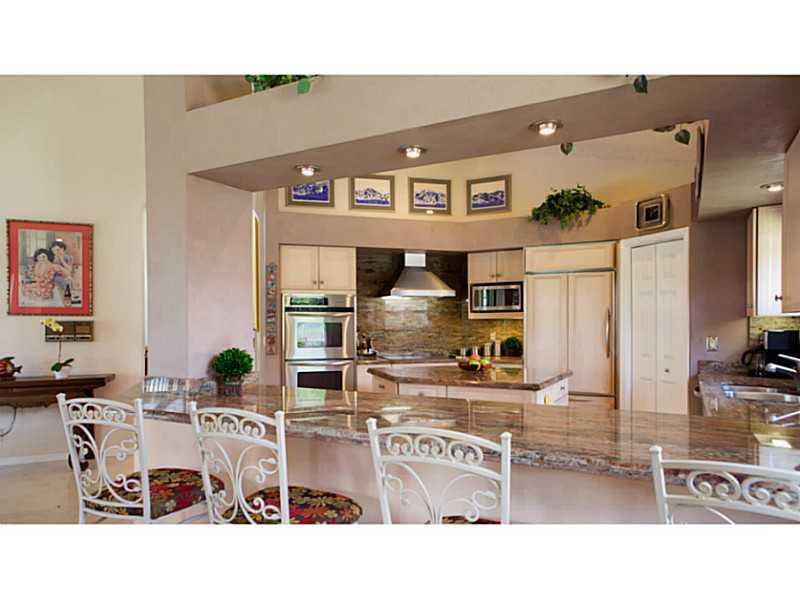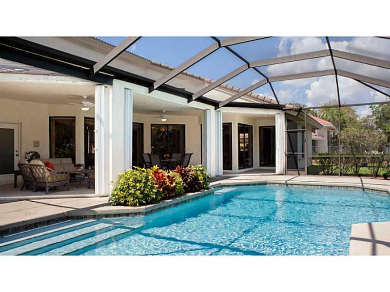 Exquisitely maintained home within the desirable community of Palm Island. This 5/4 single-story residence boasts a flow through split floor plan with open spaces & natural lights. Features include porcelain tiles throughout, renovated bathrooms, remodele d kitchen w/ granite counter & SS appliances, large breakfast area, family room, high ceilings, newer roof & AC's impact windws & extended accordion shutters, plus beautiful pool and screened-in extensively covered patio area overlooking the serene lake.
