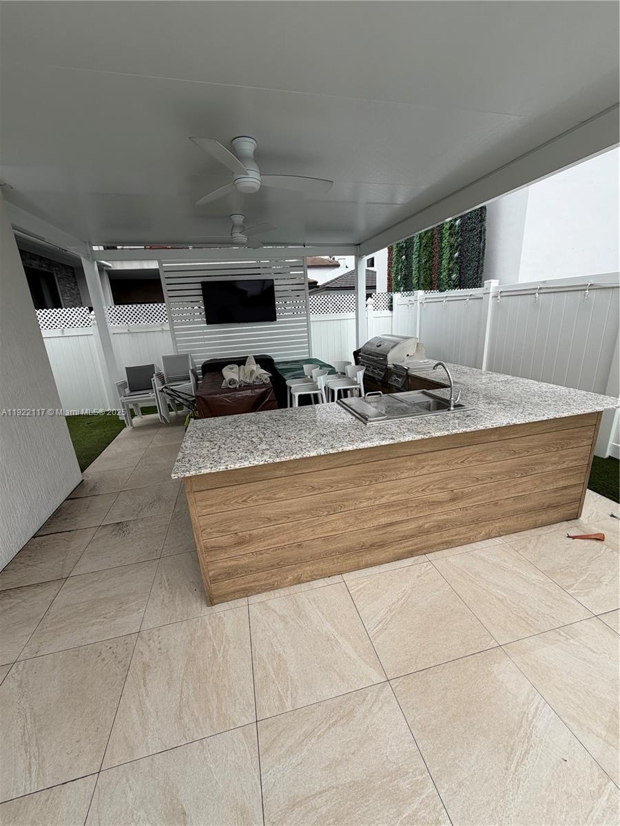 Beautiful 4-bedroom, 3.5-bath home located in downtown Doral. This barely lived-in property (less than two months of occupancy) features ceramic tile floors downstairs and laminate flooring on the second level. The primary suite is conveniently located on the ground floor. Enjoy an exceptional outdoor living space with a custom putting green, heated pool with waterfall, and hot tub. The stunning outdoor structure and full summer kitchen—built by Pirello Patio—include high-end appliances and represent over $220,000 in upgrades. Additional features include a one-car garage and premium finishes throughout. Short Term Seller Financing will be considered! Easy to show