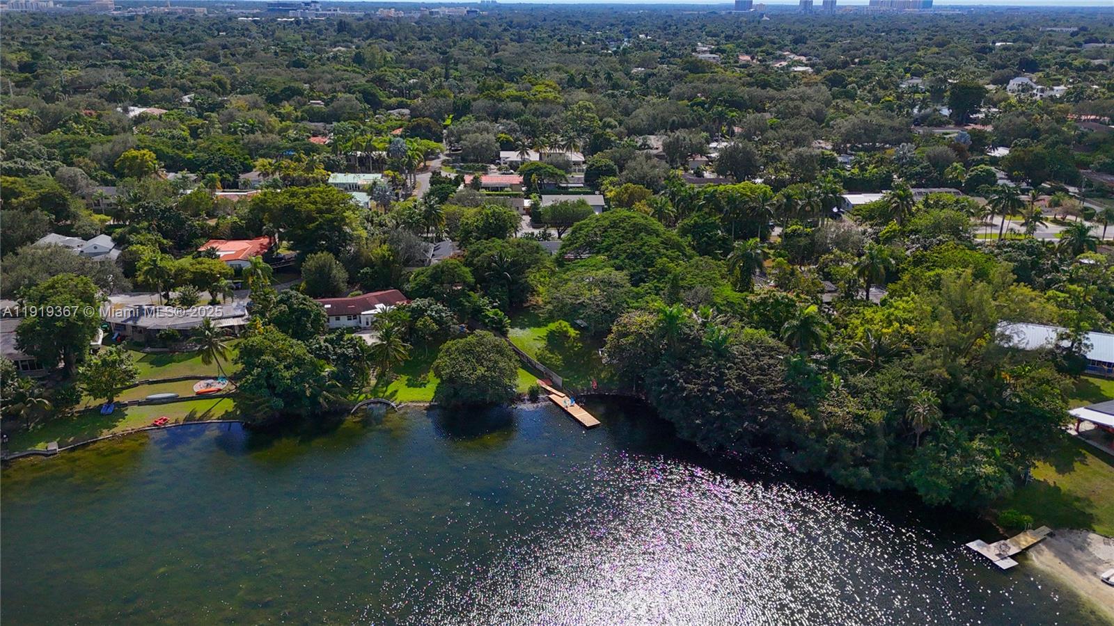 Discover this exceptional 5-bedroom, 3-bath home on a lush 16,459 Sq Ft lot, the house is beautifully positioned on an elevated parcel with a pathway down to your own floating dock and vistas across Coral Lake. The stunning great room with white oak floors and floor-to-ceiling windows is a light-filled space ideal for gathering friends and family. The recently updated kitchen has lots of workspace including an open butler’s pantry and counter seating. The spacious dining area beckons for long Sunday brunches, spontaneous dinner parties or an inspiring work space. Upstairs, the primary suite is your personal treehouse retreat—a screened balcony where the lake reveals itself, a spa-like renovated bath with glass-enclosed shower and a spacious walk-in closet. Three additional bedrooms (one w ensuite bath) and 2 baths are located on first floor. The spacious backyard and tree-shaded 16,459 sq ft lot offers freedom to roam and play. Keep fishing poles at the ready so kids can fish off the dock while you settle into the Adirondack chairs with a good book, watch the breezes dance across the water. 3 AC zones, Newer Roof, Foyer entrance, corner lot. Minutes to downtown South Miami, Coral Gables, and University of Miami.