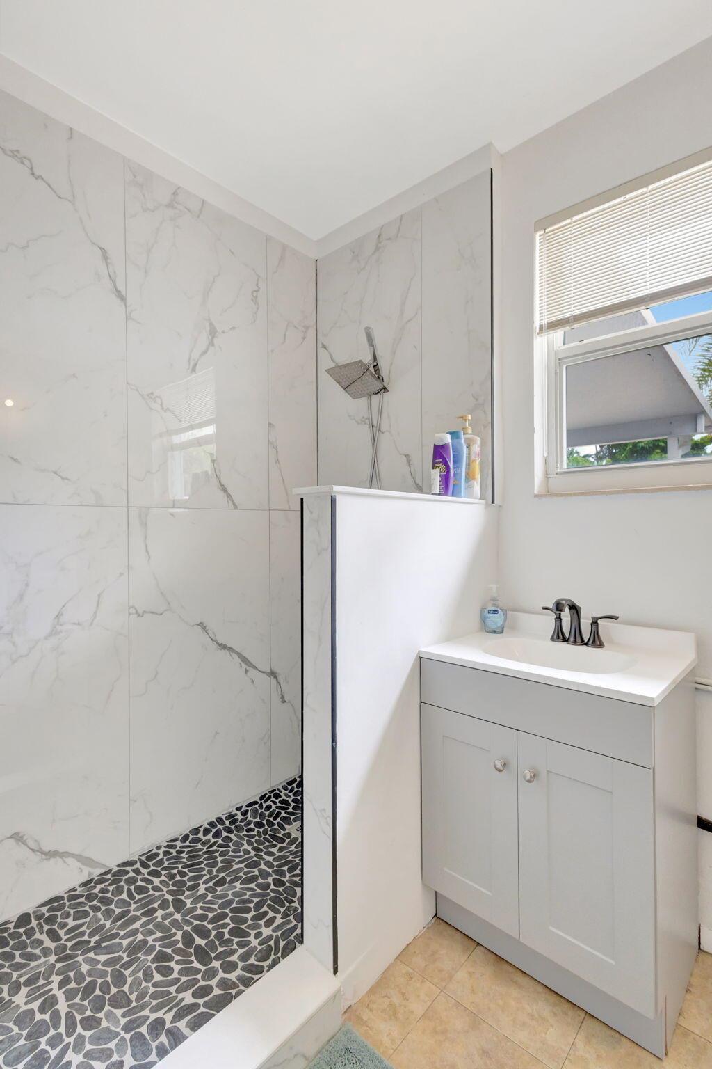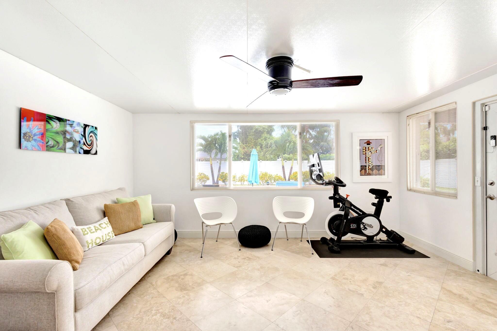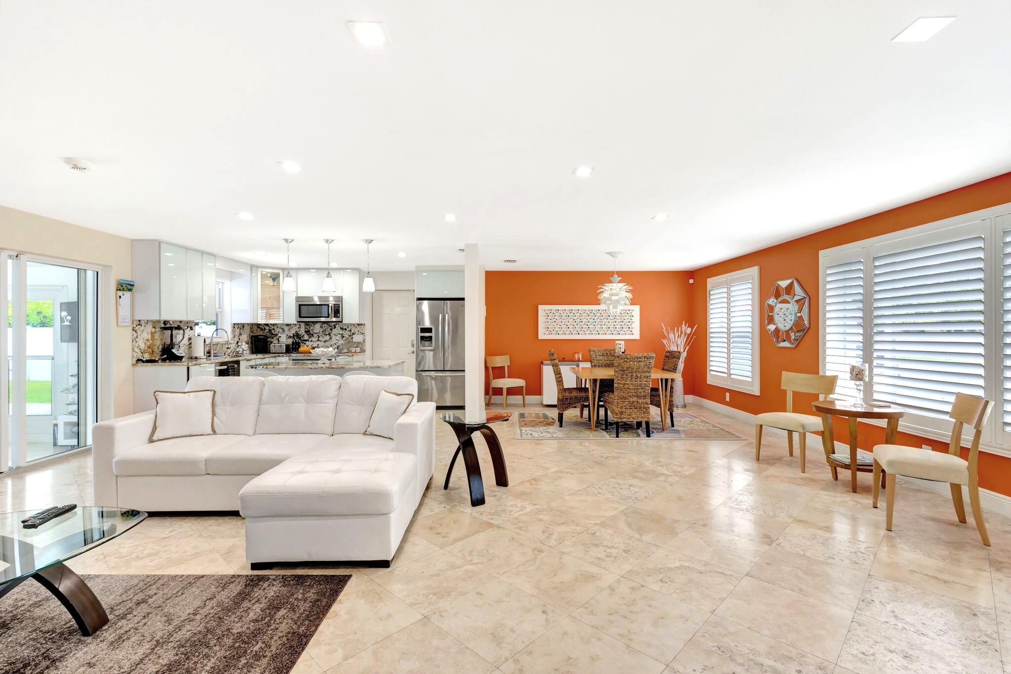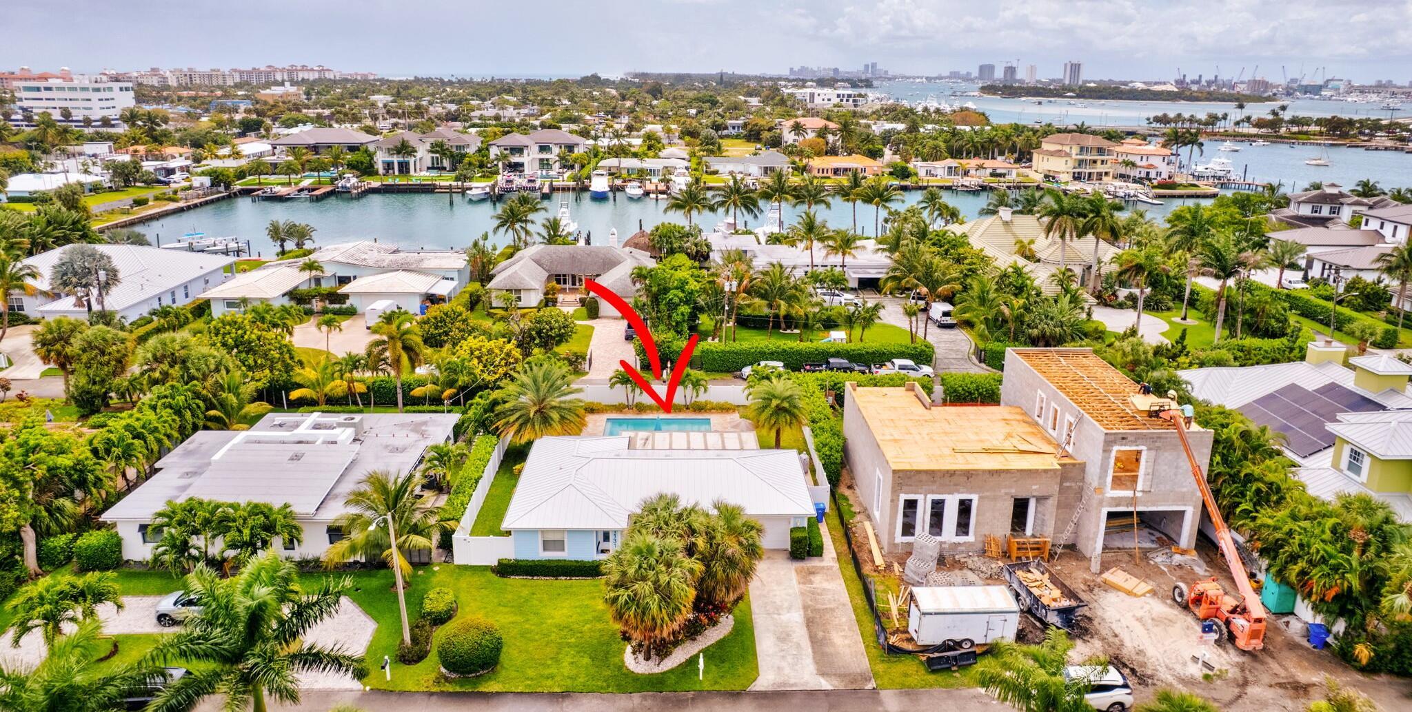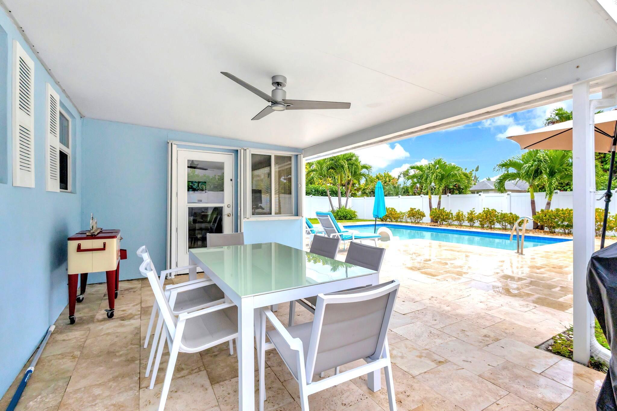 Impeccable, recently renovated, CBS Yacht Harbor Estates home that includes a beautiful modern custom heated pool with a travertine deck and new pool heater. The backyard is a south facing, private, fenced retreat that along with the new heated pool, has a covered patio and lots of open area. Other new features include an a/c system with an ultra-violet light, travertine tile throughout, impact windows and plantation shutters. Front to back, the home is street to street with no immediate rear neighbors, has 2 Bedrooms, 2 baths, plus an additional 12' x 16' flex room currently used as a sleeping room, plantation shutters, a wide driveway, and a garage. Furniture is negotiable. Close to PBI airport, beaches, intracoastal, Singer Island and Palm Beach County venues, amenities, and hotels.