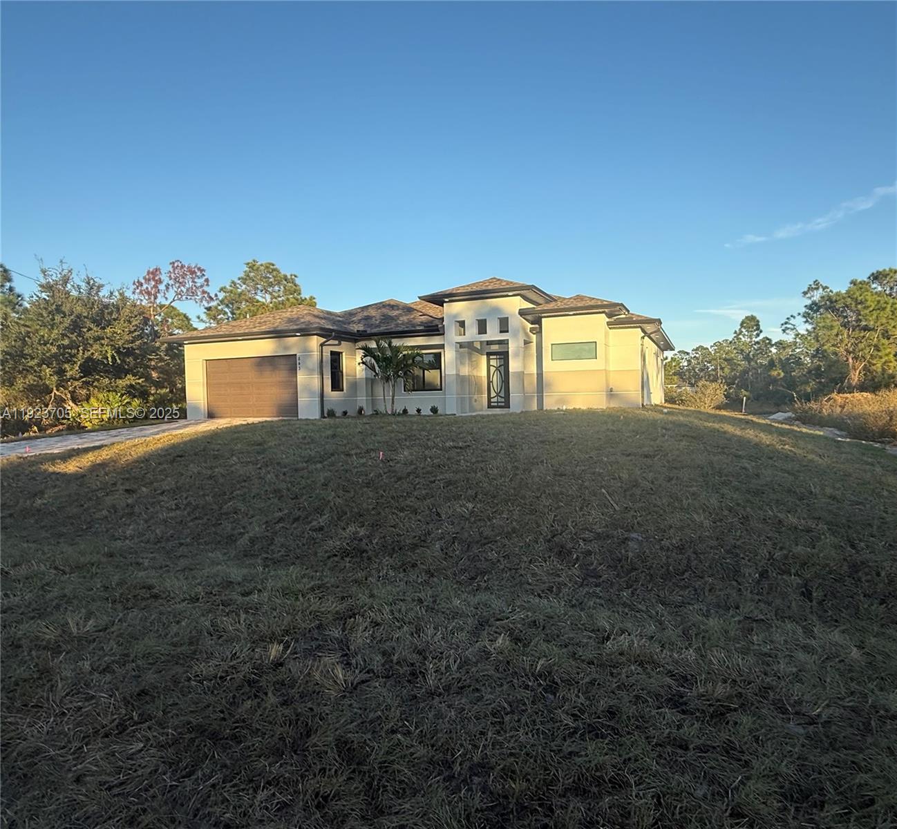Welcome to this gorgeous 4/2/2 new construction home featuring luxury upgrades and thoughtful design throughout. The home features a bright, open layout, High ceilings, quartz countertops, shaker cabinets, walk-in custom-built closets, a spacious master suite, and a large lanai that is already set up for an outdoor kitchen. Ideal for entertaining. The backyard provides plenty of room for gatherings, gardening, or future additions like a Pool. Nestled in a beautiful, Quiet Lehigh Acres Neighborhood close to top-rated schools, shopping, and major roads, including SR-82, this home offers convenience and comfort with a short commute to Fort Myers. A must-see property that truly checks all the boxes. If you're seeking peace, quiet, and a true sense of tranquility, this home offers exactly that.