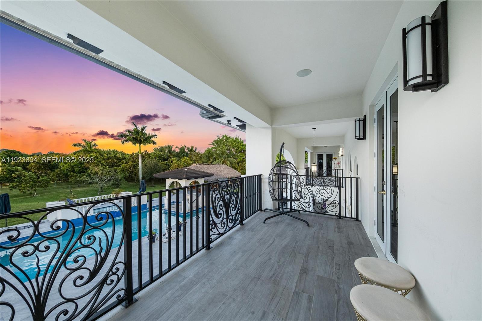 Introducing a rare custom-built architectural masterpiece where nature, sophistication & luxury merge as one. A grand entrance that opens to soaring ceilings w/custom wooden doors, 2 separate staircases, elevator & floor-to-ceiling impact glass. Just under 2 acres in the heart of Horse Country with more than 12,804sf of actual area, this gated sanctuary comes equipped with 8 great sized bedrooms, 11 bathrooms & expansive terraces from each room, giving the feeling of a timeless, tranquil & unmatched legacy estate. Chef’s kitchen boasts an expansive marble island w/stainless steel appliances, multiple midnight bars & an additional outdoor kitchen. Indulge in the ultimate privacy with every fruit tree imaginable; soursop, mango, avocado, lime, oranges, plums, mamey, dragon fruit, passion fruit, cherimoya, plantains, mandarins & more! Both kitchens, family room & outdoor spaces flow together perfectly. The first floor is equipped with 2 bedrooms, 2 offices, kids playroom, study area, theatre room & gym. The second level boasts 6 bedrooms, private family den & an expansive primary suite including dual walk-in closets, spa bath & steam sauna. Enjoy the lush grounds outdoors, an infinity saltwater pool with a swim up bar & jacuzzi, including a waterfall feature. Along with a summer kitchen BBQ area, outdoor spa bedroom & full bathroom. Washers and dryers located on both first & second floors. 3-car garage with ample parking throughout, security system & new concrete flat tile roof.