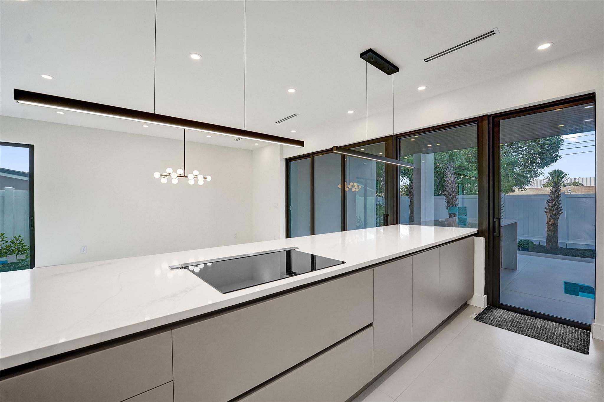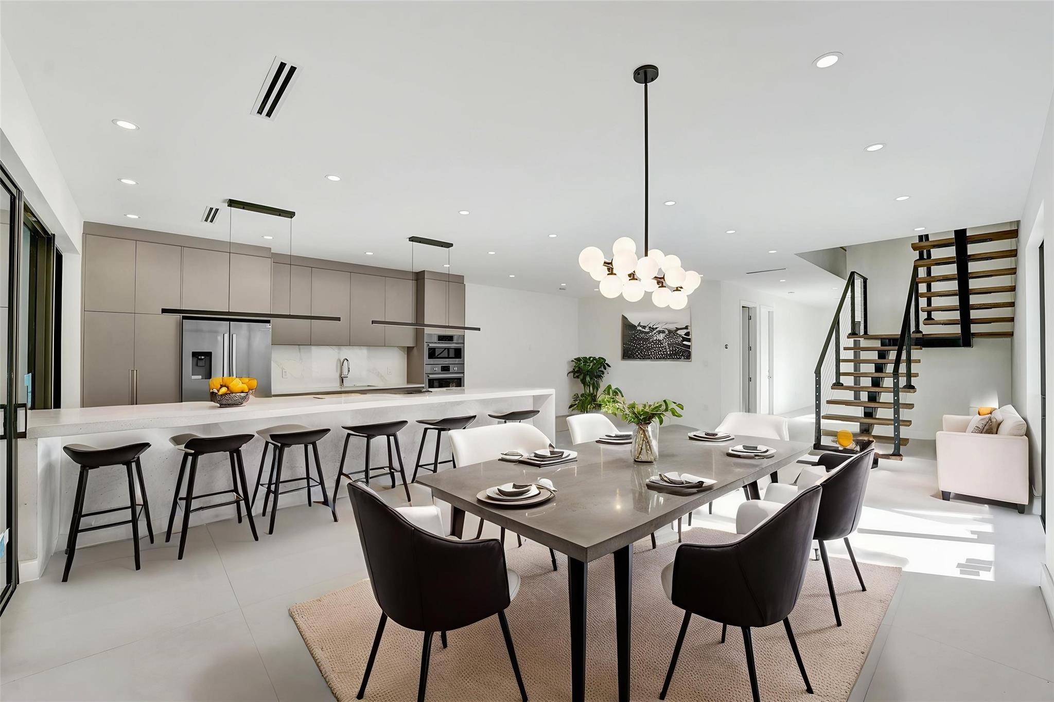 Brand-new construction duplex w/ 2,775 sqft, built w/ a reinforced structural system, interior solid concrete walls, & an elevated foundation. High-end finishes include designer Florence cabinetry, Bosch appliances, LED recessed lighting, Italian porcelain tiles, & a floating staircase. Enjoy seamless indoor–outdoor living w/ sliding glass doors that retract into the wall, opening to a fully equipped summer kitchen, hot tub, integrated mosquito screen, exterior lighting, & designer landscaping. Featuring 3 bedrooms, 4 bathrooms, office/den, & a laundry room. All bedrooms offer walk-in closets and ensuite bathrooms with Kohler fixtures, including a primary suite with 2 walk-in closets. Home also includes high-impact windows & doors, 2 AC units, & a rainwater drainage system.