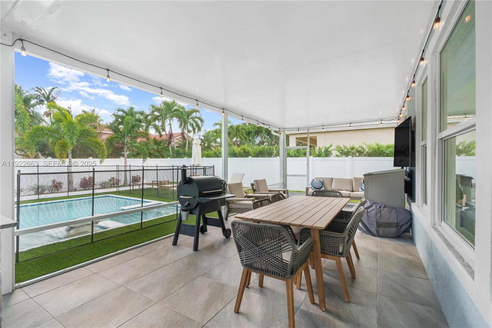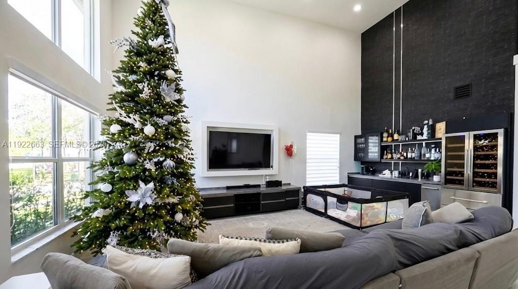 OPEN HOUSE on today, 12/13/25 11 - 1 pm. Welcome to this beautifully upgraded residence in the sought after gated community of Pembroke Falls. This 2 story home offers an ideal layout with 1 bedroom and full bath on the main level and 3 spacious bedrooms upstairs. The primary suite features 1 walk-in closet, soaking tub, walk-in shower, and dual vanities. A brand new heated saltwater pool and heated spa with safety fence anchors the private, fully fenced yard. Inside, enjoy LED recessed lighting, 4x4 porcelain tile flooring, upgraded stairs, built-in closets, blackout shades (automated in the primary), Google Home integration, and a 350-bottle dual-zone wine fridge and ice maker in the family room. The kitchen offers over $25K in JennAir appliances, quartz counters, gas stove, and a second wine fridge. Additional upgrades include a 2-yr-old AC, tankless gas water heater, newer washer/dryer, new gutters, Rainbird sprinkler system, insulated patio, and premium Blaze outdoor kitchen appliances, and impact windows. Maintenance includes internet, cable, alarm system, and access tot he amenities. Click on the VIRTUAL TOUR link to see a walk-thru of this home. Pembroke Falls provides a vibrant lifestyle with extensive recreational amenities, including a large clubhouse, fitness facilities, multiple pools, tennis and pickleball courts, walking paths, play areas, and community gathering spaces creating a resort-style environment for all ages.
