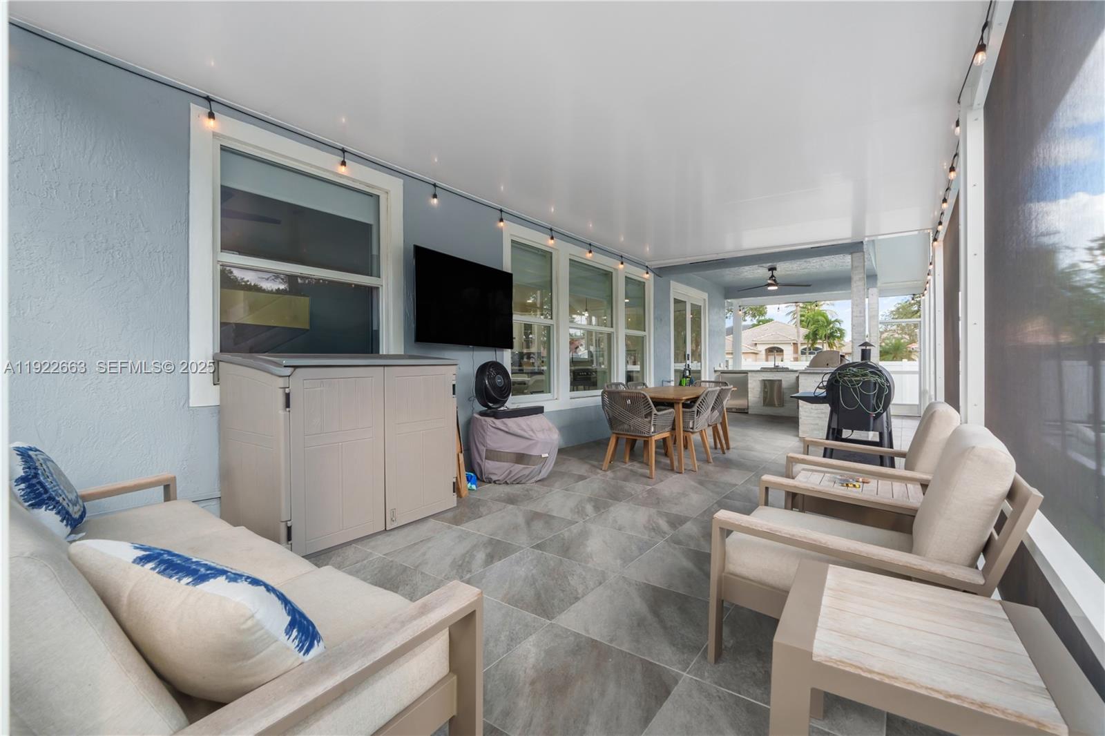 Welcome to this beautifully upgraded residence in the sought after gated community of Pembroke Falls. This 2 story home offers an ideal layout with 1 bedroom and full bath on the main level and 3 spacious bedrooms upstairs. The primary suite features 1 walk-in closet, soaking tub, walk-in shower, and dual vanities. A brand new heated saltwater pool and heated spa with safety fence anchors the private, fully fenced yard. Inside, enjoy LED recessed lighting, 4x4 porcelain tile flooring, upgraded stairs, built-in closets, blackout shades (automated in the primary), Google Home integration, and a 350-bottle dual-zone wine fridge and ice maker in the family room. The kitchen offers over $25K in JennAir appliances, quartz counters, gas stove, and a second wine fridge. Additional upgrades include a 2-yr-old AC, tankless gas water heater, newer washer/dryer, new gutters, Rainbird sprinkler system, insulated patio, and premium Blaze outdoor kitchen appliances, and impact windows. Maintenance includes internet, cable, alarm system, and access tot he amenities. Click on the VIRTUAL TOUR link to see a walk-thru of this home. Pembroke Falls provides a vibrant lifestyle with extensive recreational amenities, including a large clubhouse, fitness facilities, multiple pools, tennis and pickleball courts, walking paths, play areas, and community gathering spaces creating a resort-style environment for all ages.
