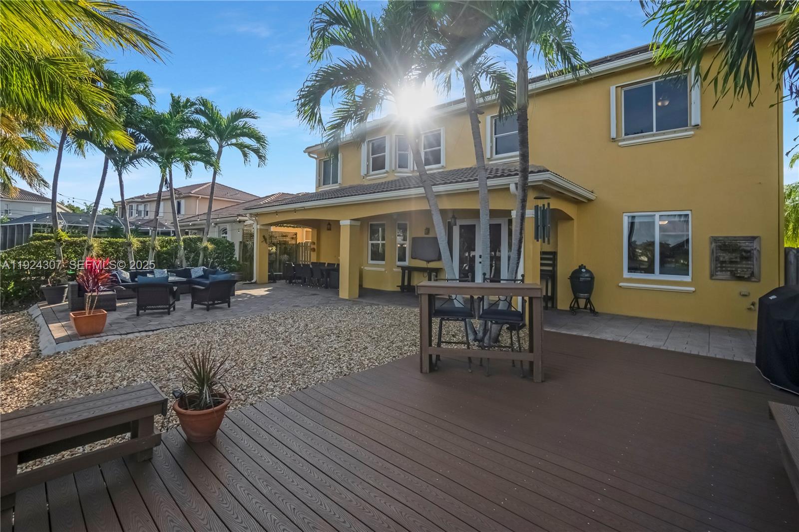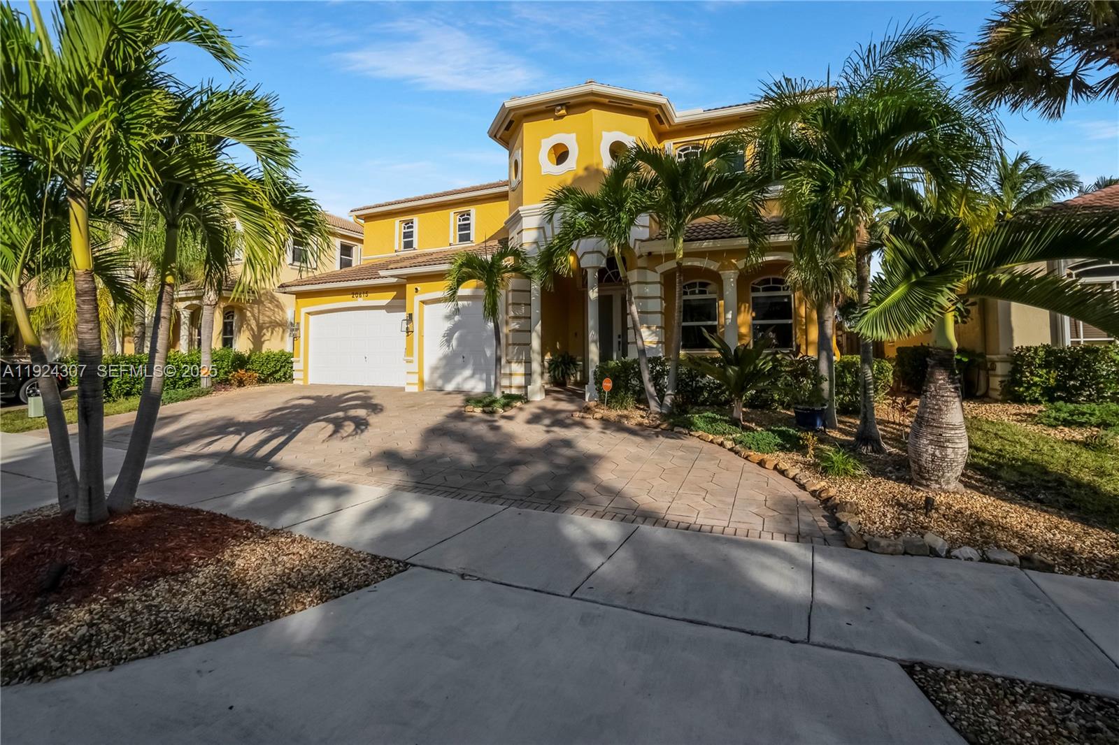 Discover this beautifully maintained 4-bedroom, 3-bath home perfectly situated on a tranquil lakefront lot. This home features a convenient first-floor bedroom and full bath, as well as three bedrooms and two baths upstairs. The home also features solar panels that significantly enhance energy efficiency, along with impact windows on the first floor and accordion shutters on the second. Inside, the main living areas are finished with tile flooring, while the upstairs bedrooms offer carpeting for added comfort. The kitchen is equipped with stainless steel appliances and ample cabinetry, a large island, and a walk-in pantry. The primary suite is complemented by beautiful lake views and two closets for extra space. Step outside to the backyard overlooking a lake, an inviting setting for outdoor dining, gatherings, or simply enjoying the peaceful scenery. The spacious 3-car garage offers ample storage and convenience, accommodating multiple vehicles or hobby space