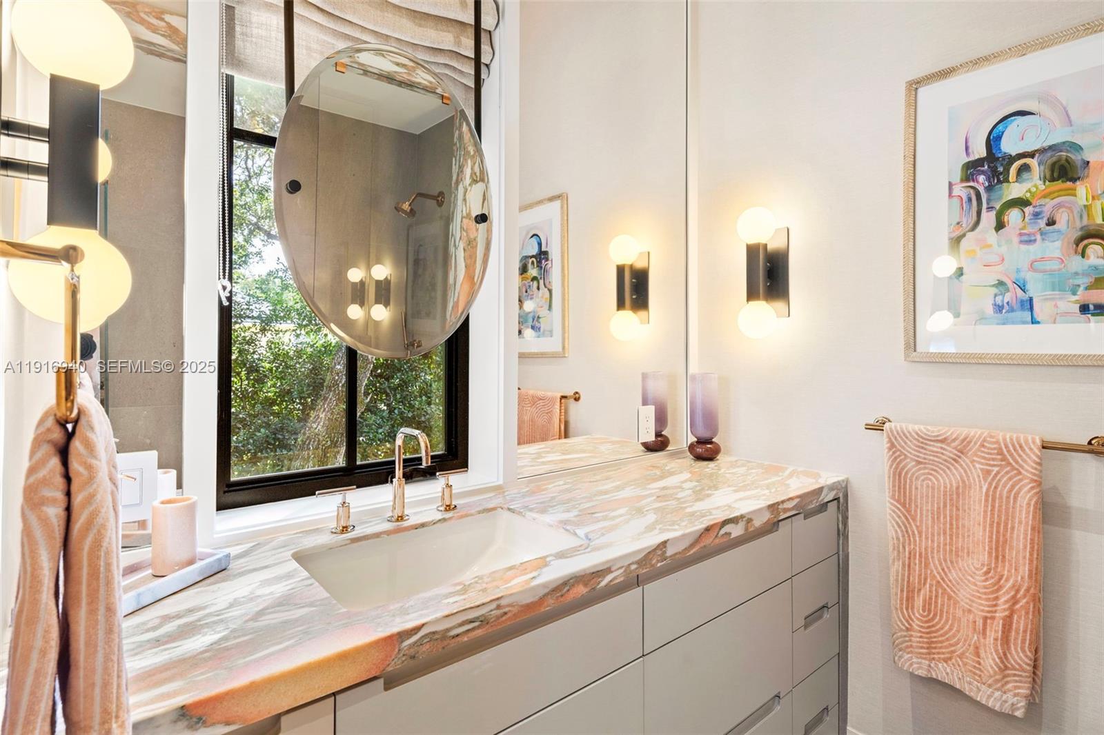 Never-before-seen, recently built, exquisitely designed 2-story Estate on a quiet, oak-lined street in North Pinecrest. Contemporary & timeless, grandly scaled & understated. No-expense-spared finishes include gorgeous natural stone & wood floors throughout, extraordinary vaulted ceilings, bespoke millwork. Abundant windows complement expansive, thoughtfully appointed space: 7 bedrooms (4 up), 6.5 baths, living, family & formal dining rooms, eat-in kitchen w/ Subzero & Wolf appliances, theater, game & play rooms, gym, 2 laundry rooms (up/down), 4-car garage. Smart Home w/ Savant-Sonos-powered security. Exterior features: Screened summer kitchen, lavish resort pool, lit basketball court, playground, lush landscape & full-house generator. This custom-curated Pinecrest Paradise has it all!