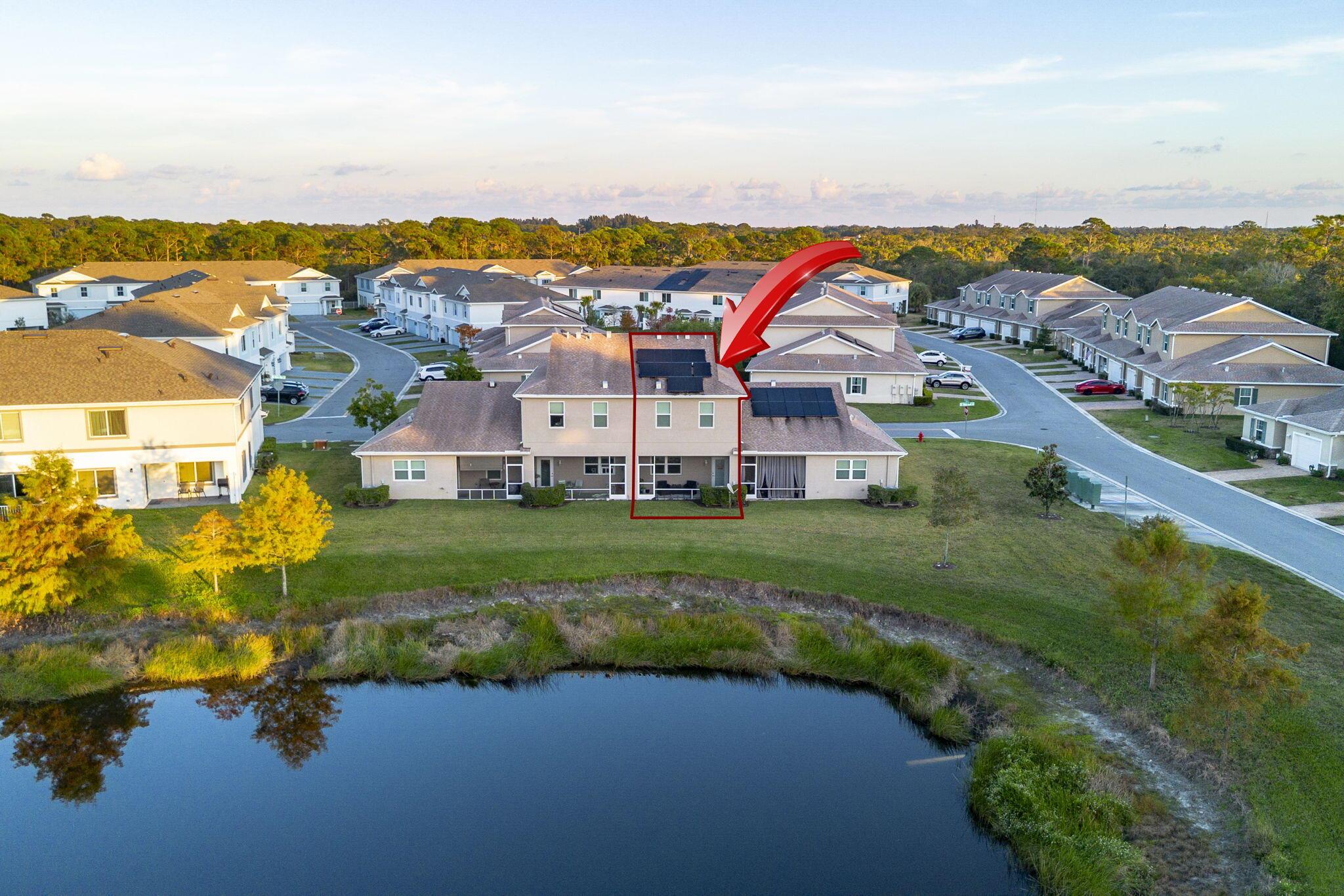 Welcome to 696 Waters Edge Lane, where efficiency, comfort, and quality upgrades come together in one exceptional waterfront residence. This home offers fully paid-off solar panels, impact-rated windows and doors, a hybrid water heater, and 2019 appliances with transferable warranties for added peace of mind. The interior features granite countertops, a bright open layout, and timeless finishes throughout. One of the unique advantages of this property is the oversized one-car garage with two additional driveways that can accommodate up to 2 vehicles. Relax in the west-facing screened-in lanai and enjoy stunning sunset views over the tranquil waterfront, with major systems already updated and its prime location near the community pool, parks, dining, and shopping.