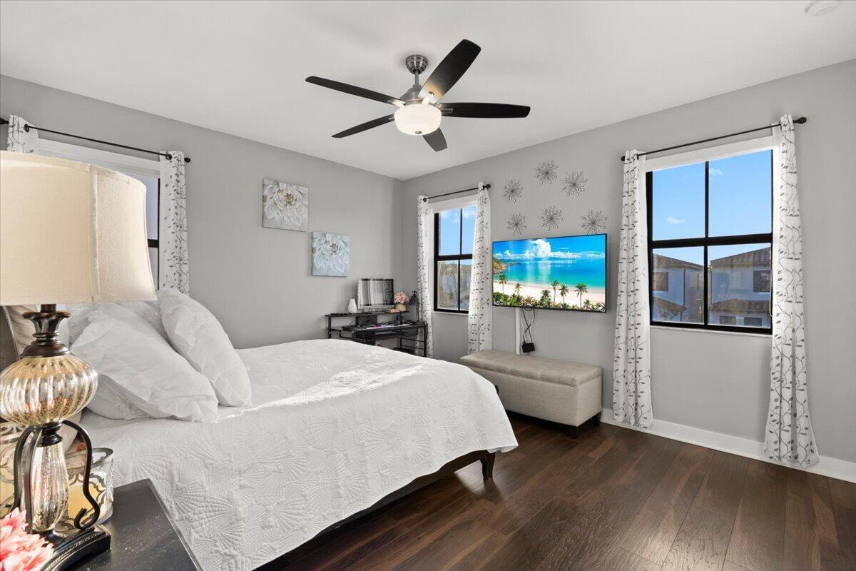 Beautifully upgraded 4-bed, 3.5-bath single-family home in the desirable gated community of Arbor Parc in Palm Beach Gardens. This modern residence offers TWO primary suites, including one conveniently located on the main floor!Step inside to discover freshly painted interiors, elegant tile, engineered hardwood flooring, and a spacious open-concept layout.The living and dining areas flow seamlessly into the large paved backyard, perfect for outdoor dining, entertaining, or enjoying the Florida sunshine. A whole-home water filtration system adds convenience and peace of mind.Enjoy resort-style amenities, including a sparkling pool, fitness center, and clubhouse made for hosting! The community is centrally located close to 95, shopping, top rated schools and more ! Book today!
