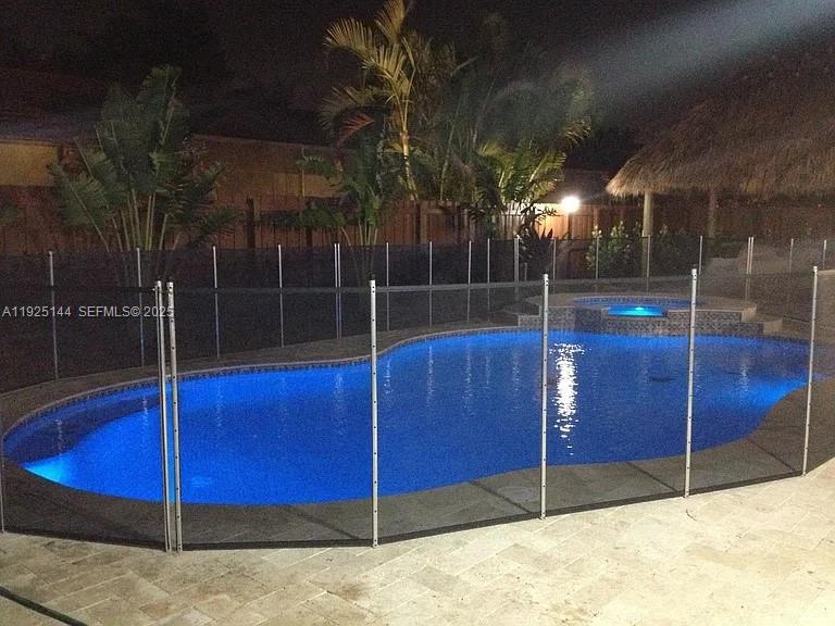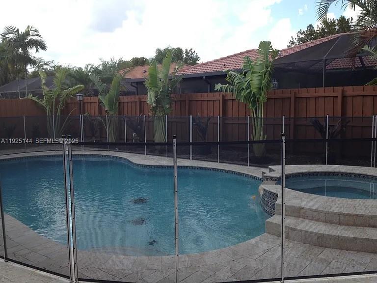 Beautiful 4/3 single-family home on an oversized lot with a spectacular backyard. Features include a freeform pool and spa, travertine deck, tiki hut, and professional landscaping. Mediterranean-style exterior with stone façade, keyless entry, 2-car garage, accordion shutters, pavers, concrete borders, and side yard with room for a boat. Inside, you’ll find a welcoming foyer, formal living and dining areas, tile throughout with wood flooring in the bedrooms, separate laundry room, volume ceilings, crown moldings, and plantation shutters. The spacious upgraded kitchen offers granite countertops, stainless steel appliances, breakfast area, and an island snack bar. This one won’t last!