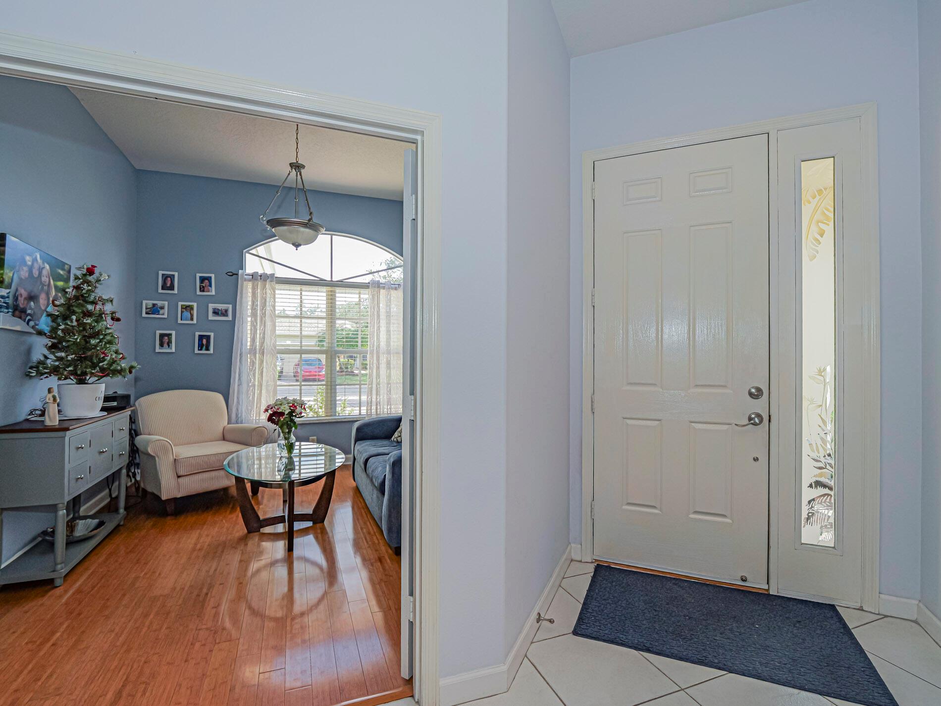 Beautiful Florida living in this 3BR/2BA, 2-car garage lakefront home located in a desirable gated community. Features include tile & bamboo wood floors, granite kitchen countertops, hurricane accordion shutters, a new 2022 roof, and fresh 2025 exterior paint. Spacious primary suite with His & Hers walk-in closets, volume ceilings. Enjoy relaxing, grilling, and entertaining on the enclosed screened patio with peaceful lake views. Centrally located minutes to shopping, dining, and the beaches. Community offers clubhouse, pool & more with very low HOA fees.