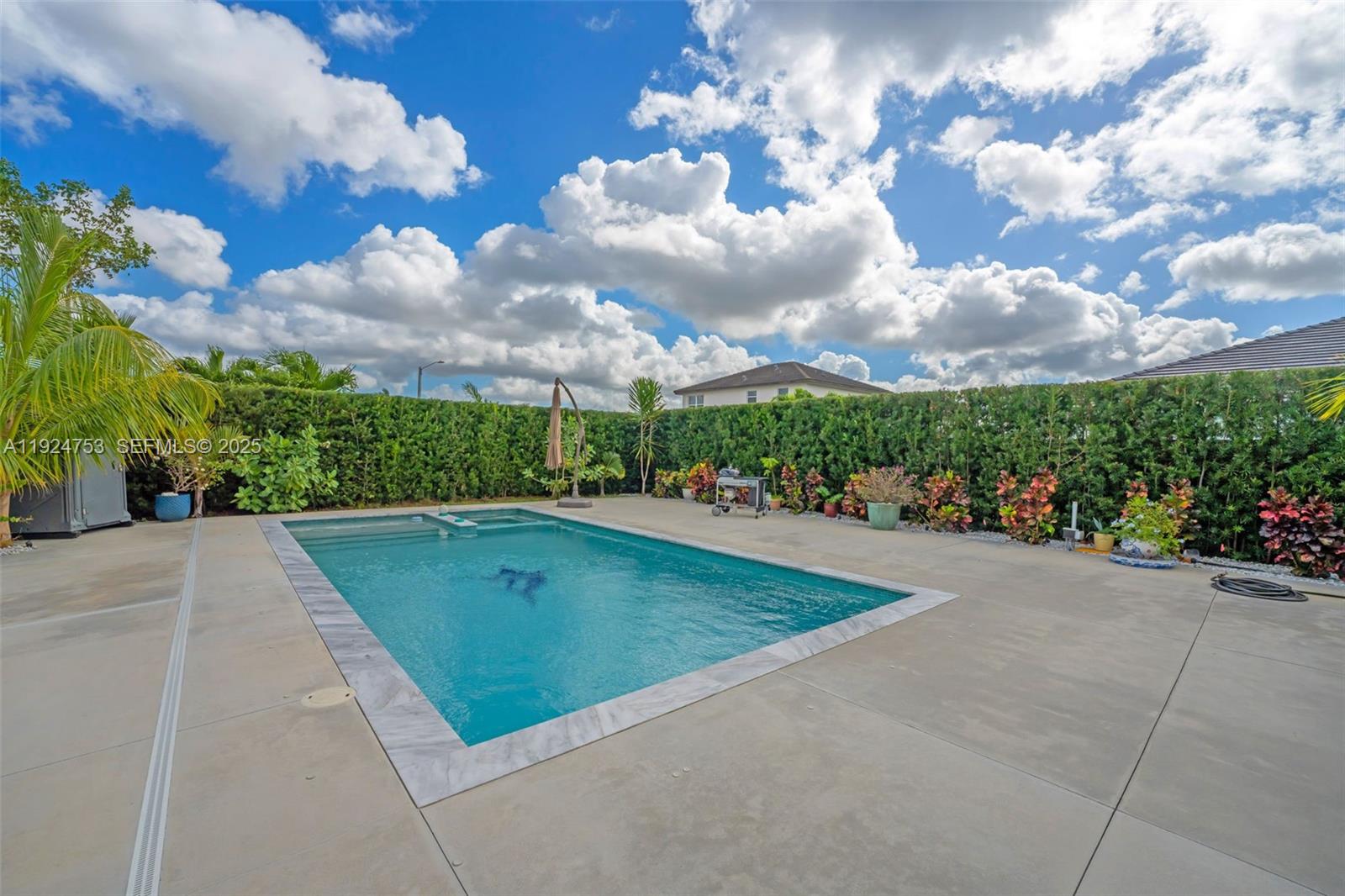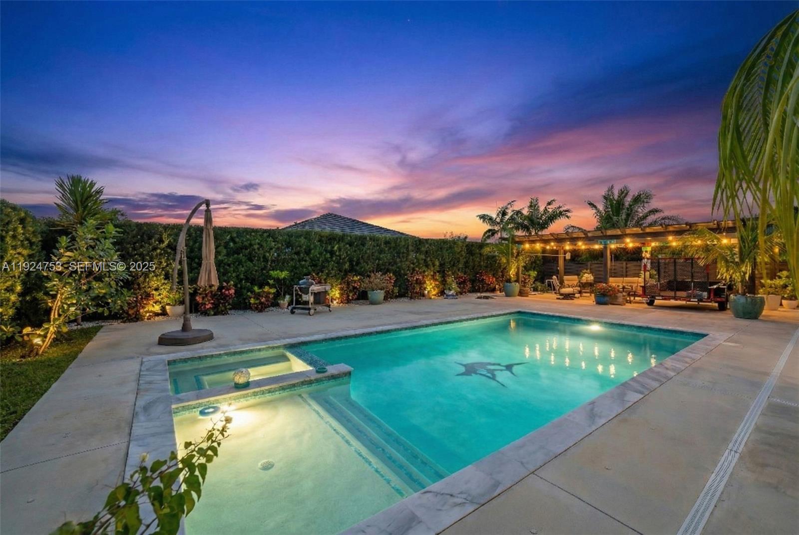Step into your own slice of South Florida paradise with this beautifully appointed two-story home in the sought-after Willow Trace community. Built in 2020, this stunning home welcomes you with 4 spacious bedrooms, 3.5 bathrooms, and 2,204 sqft of bright living space designed for both comfort and entertaining. Set on an impressive 14,021 sqft fully fenced lot, the outdoor living experience is nothing short of spectacular. Enjoy your private resort-style retreat featuring a breathtaking 15x30 heated pool/ spa, expansive cement pool deck, 2 aluminum pergolas with insulated roof panels and a lush collection of mature tropical fruit trees including coconut, mango, avocado, guava, and more—creating a serene and private oasis. Inside, the home features a sophisticated open-concept living and dining design that flows seamlessly into the gourmet kitchen, complete with stainless steel appliances, quartz countertops, a statement cooking island, and abundant custom cabinetry. Additional highlights include a charming front porch, elegant paved driveway, 2-car garage, and an ideal layout for a large family and elevated lifestyle living. Perfectly positioned near major highways, shopping, dining, hospitals, and the Miami Zoo, this residence offers the ultimate balance of privacy, elegance, and convenience. No flood zone insurance required, low HOA that doesn't require approval, open community. This is a rare opportunity to own a truly distinctive home—schedule your private showing today.