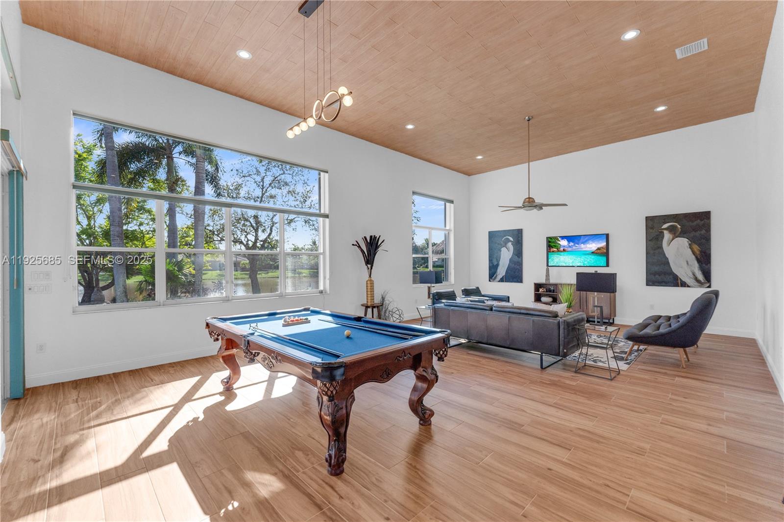 Sprawling lots, serene lakes, 24/7 manned security, close to top-rated schools, shopping, dining, & major highways, this Hanover model is the largest in the community, featuring 3 zone AC, 3 car garage, 14 ft ceilings on a lush, waterfront, builders’ acre. Tons of windows, abundant natural light, desirable split floor plan, soaring ceilings, Chef’s kitchen w enormous walk-in pantry, great counter space, center island, 2 ovens, breakfast area & snack bar all overlooking an enormous family room, ideal for entertaining or cozy living! Relax in your luxurious primary suite w/ bay window, dual walk-in closets, and a sumptuous bath. Cooling breezes welcome you to your backyard oasis featuring lush grounds, fruit trees, a recently remodeled sparkling pool, boat ramp & fence. New roof in 2020; new water heater, newer AC units, 3 car garage A rare opportunity to own a Hanover model in this prestigious community—your next chapter starts here.