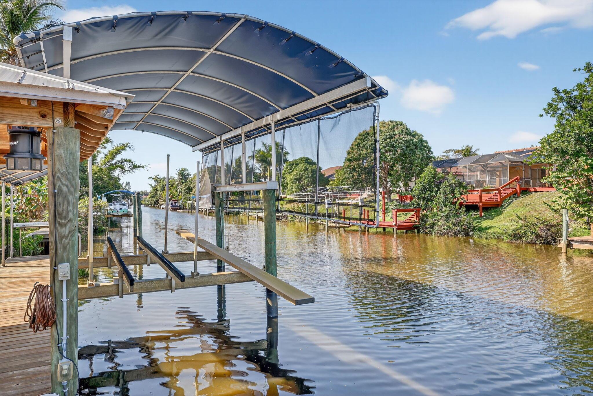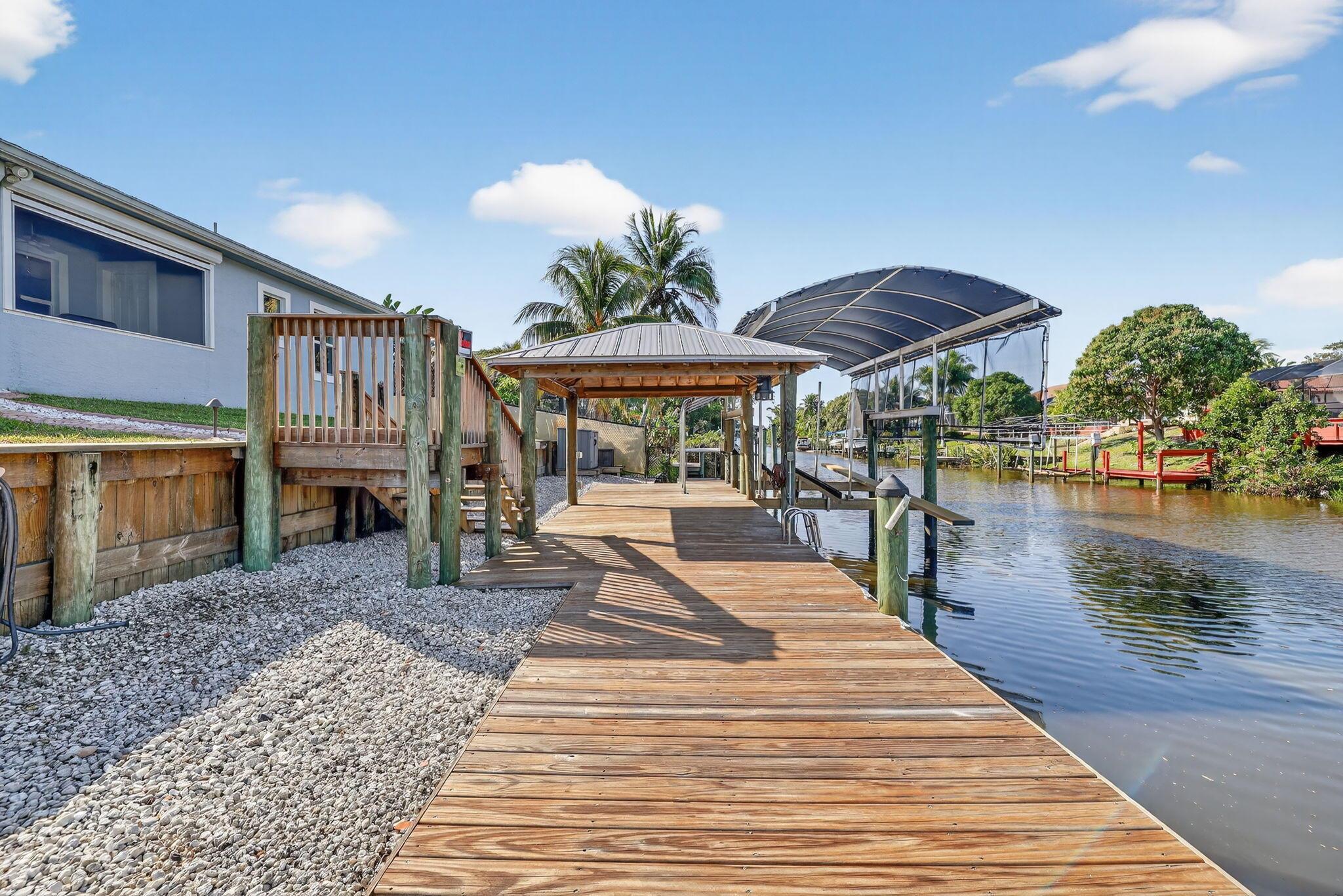 Experience new luxury living with this 2019-built waterfront home featuring direct ocean-access, a private dock, and 16K boat lift right in your backyard. Enjoy stunning, unobstructed water views, an open, gorgeous great room w/ large flex room, 4 spacious bedrooms, 3 baths, including a cabana bath. Highlights include a center-island kitchen, spacious patio with outdoor kitchen, big green egg smoker, grill, fridge & more. The Covered dock, covered boat lift, fish station, w/ H2O, and electric complete the perfect backyard. smart outlets/switches, 8 smart TVs, Luma security camera system, oversized garage with cabinets, propane appliances, and RV 50-amp outlet. All this in a great location close to shopping, restaurants and still a great ride to the ocean.