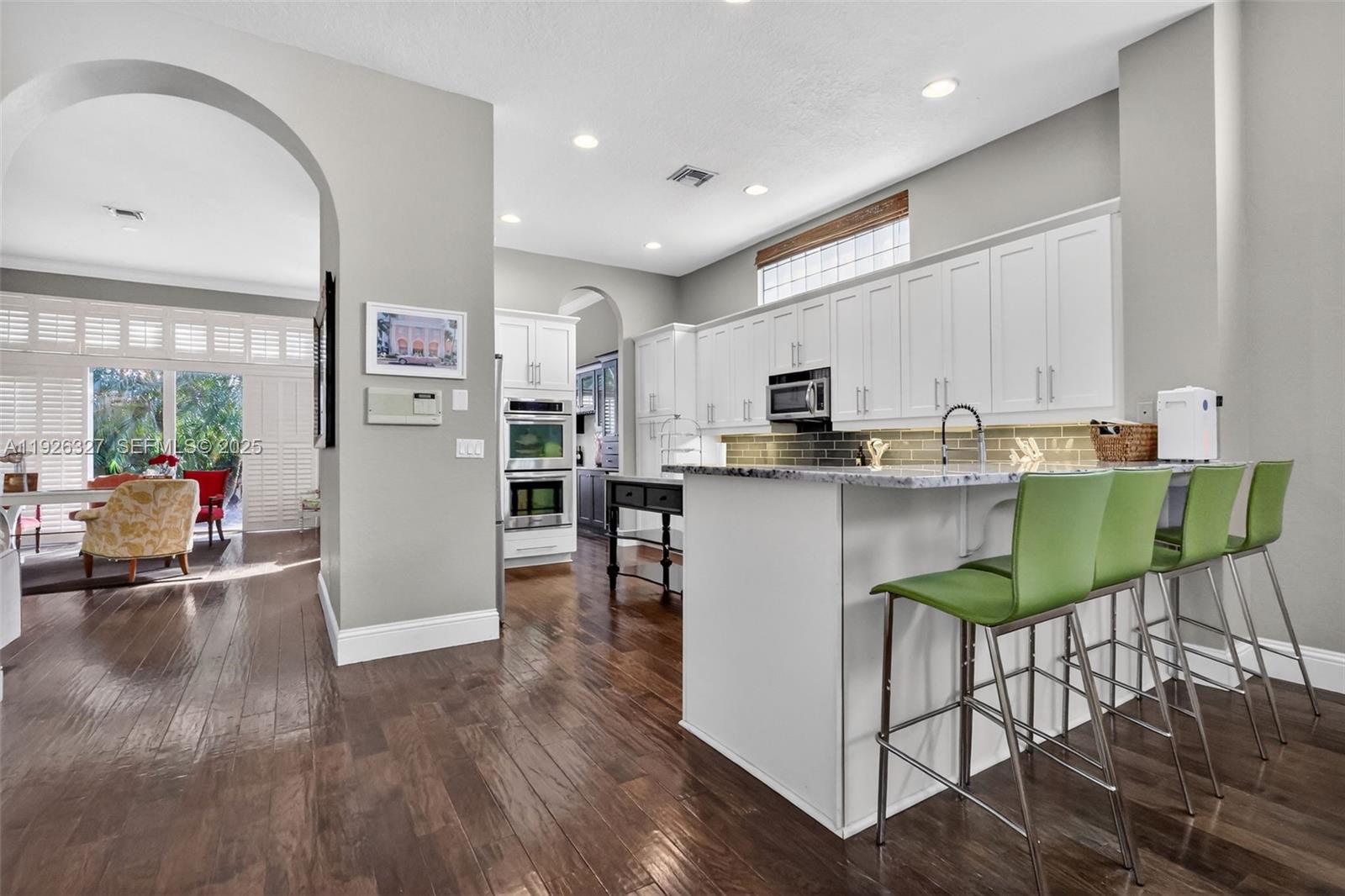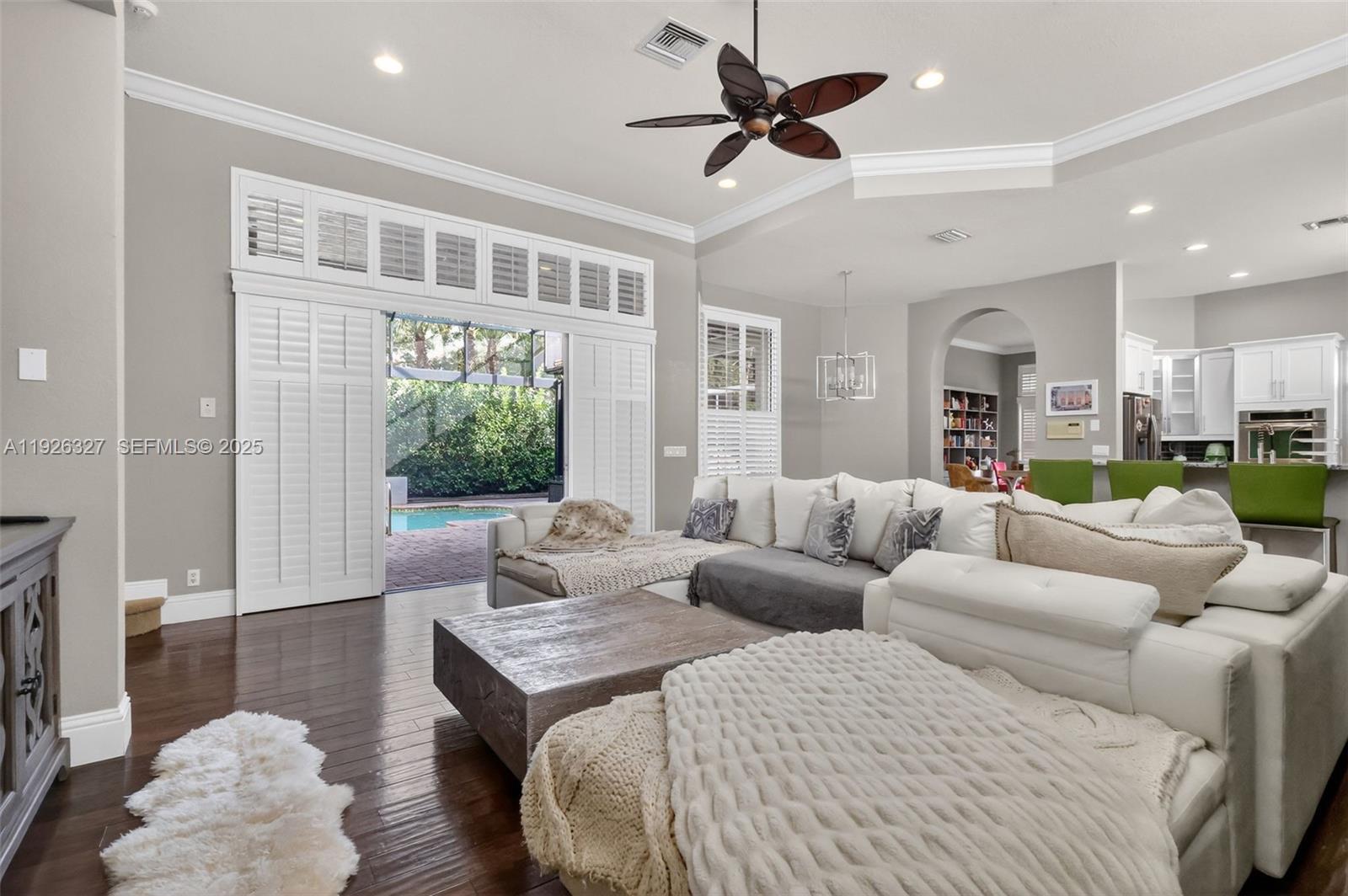 Experience resort-style living in this beautiful 5BR / 4.5BA courtyard home, privately situated at the end of a cul-de-sac in the gated community of Mirabella. A stunning courtyard floor plan centers around the sparkling pool, now enclosed by a brand-new $40,000 screened structure that creates a seamless indoor/outdoor oasis. At night, soft lighting transforms the courtyard into a serene retreat. Large windows with elegant shutters fill the home with natural light. The spacious dining room includes its own wine fridge, perfect for entertaining. The separate poolside guest suite offers ideal accommodations for visitors, extended family, or a private office. With generous living spaces, total privacy, and a beautiful courtyard design, this home brings together comfort, elegance, and true Florida living. Mirabella at Mirasol is a premier gated community offering 24/7 security, a resort-style pool, fitness center, clubhouse, tennis courts, playgrounds, and family-friendly sidewalks throughout, providing an exceptional lifestyle in the heart of Palm Beach Gardens.