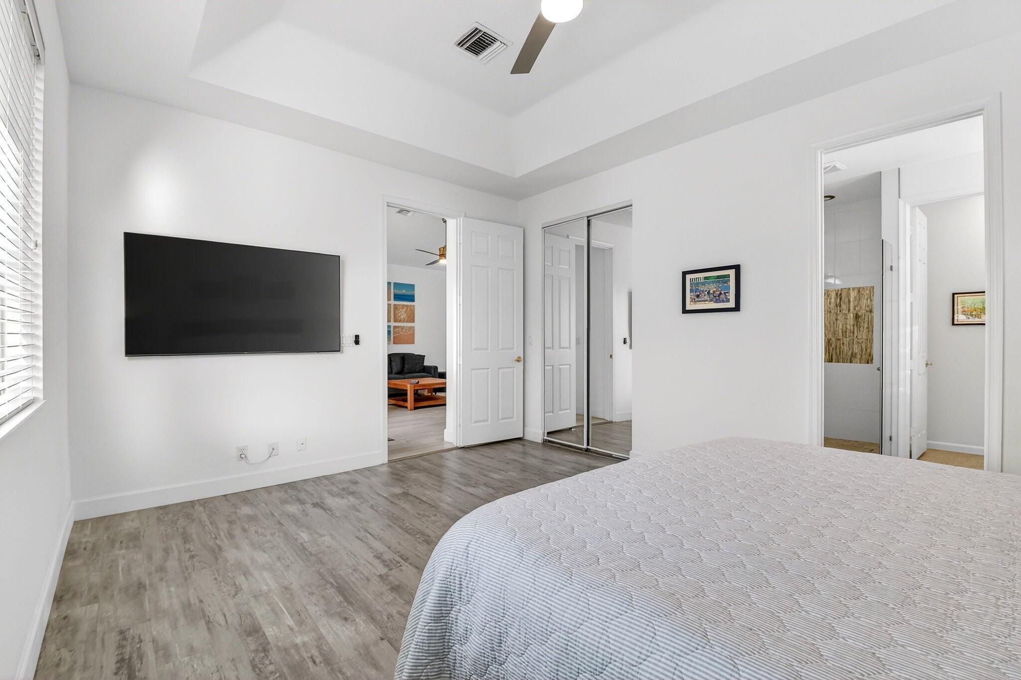 Charming 3/2 home on a spacious lot with NEW ROOF. Welcome to this beautifully maintained home offering modern upgrades & comfortable living throughout. The updated kitchen is accented with stylish Quartz countertops and a custom table to match. The primary BR boasts a trey ceiling, custom closet w/ built-ins that provide exceptional storage. The fully renovated bath has it all, upgraded, cabinets & flooring + a large curbless shower. Step outside to a large fenced-in backyard, perfect for entertaining. The garage is a standout with a polyaspartic floor coating offering a clean, durable & polished look. With its thoughtful updates, great layout & generously sized lot, this home is move-in ready and truly a must-see. Venetian Isles is vibrant 55+ community offering country club living.