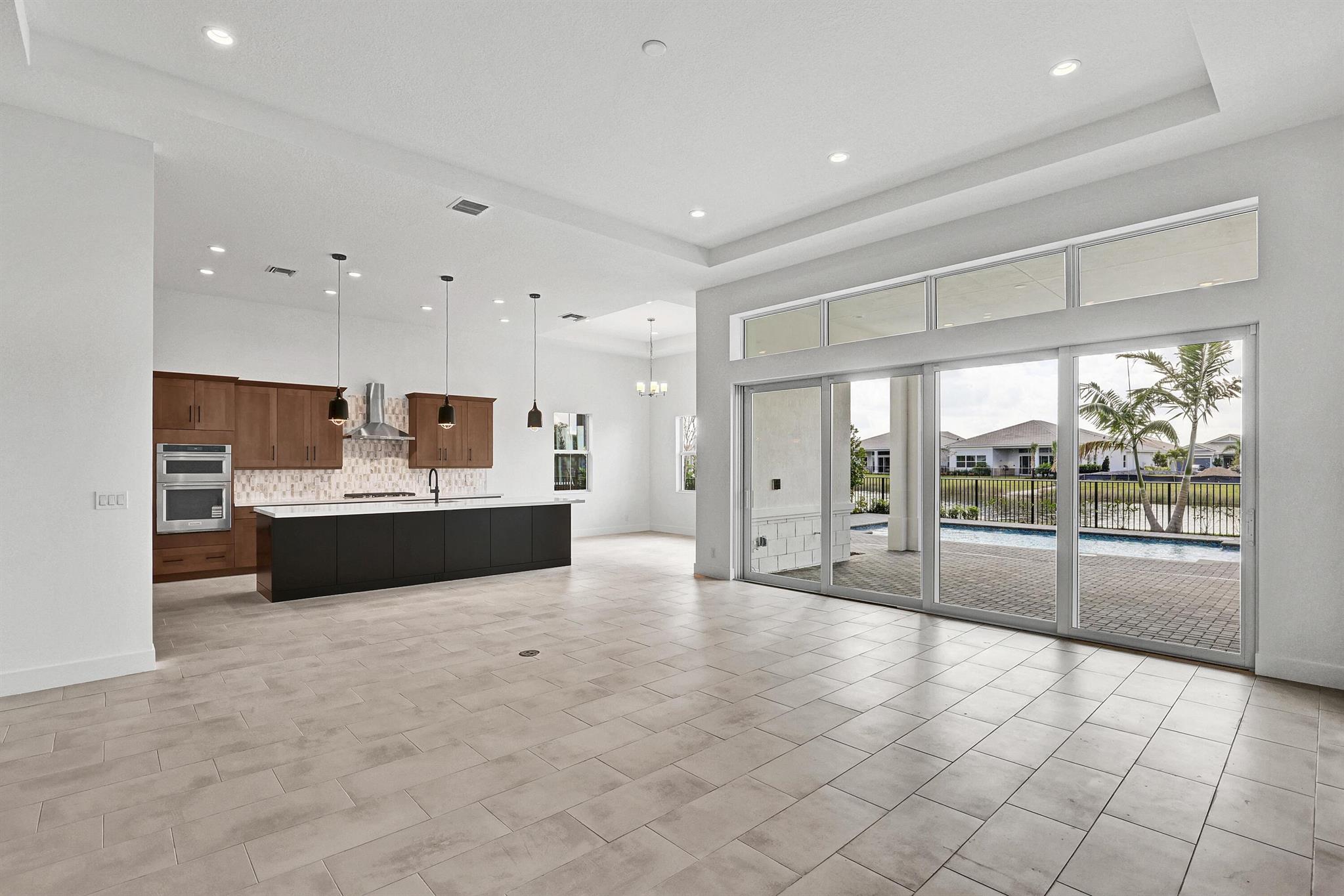 Welcome Home! Pool with Lake View! Step into this stunning residence featuring a grand foyer with soaring 12-foot ceilings and a bright, open-concept design. Gorgeous LVP flooring flows seamlessly throughout, leading you into the expansive living area. Just off the entry, a sunlit study with glass French doors offers space for a home office or library. The chef-inspired kitchen impresses with stylish two-toned cabinetry, a walk-in pantry. The luxurious primary suite showcases white shaker cabinetry, a spa-like bath with a drop-in soaking tub, a walk-in shower with bench, and a spacious closet. A conveniently located powder bath adds comfort for guests, while secondary bedrooms provide ample space for family or visitors.