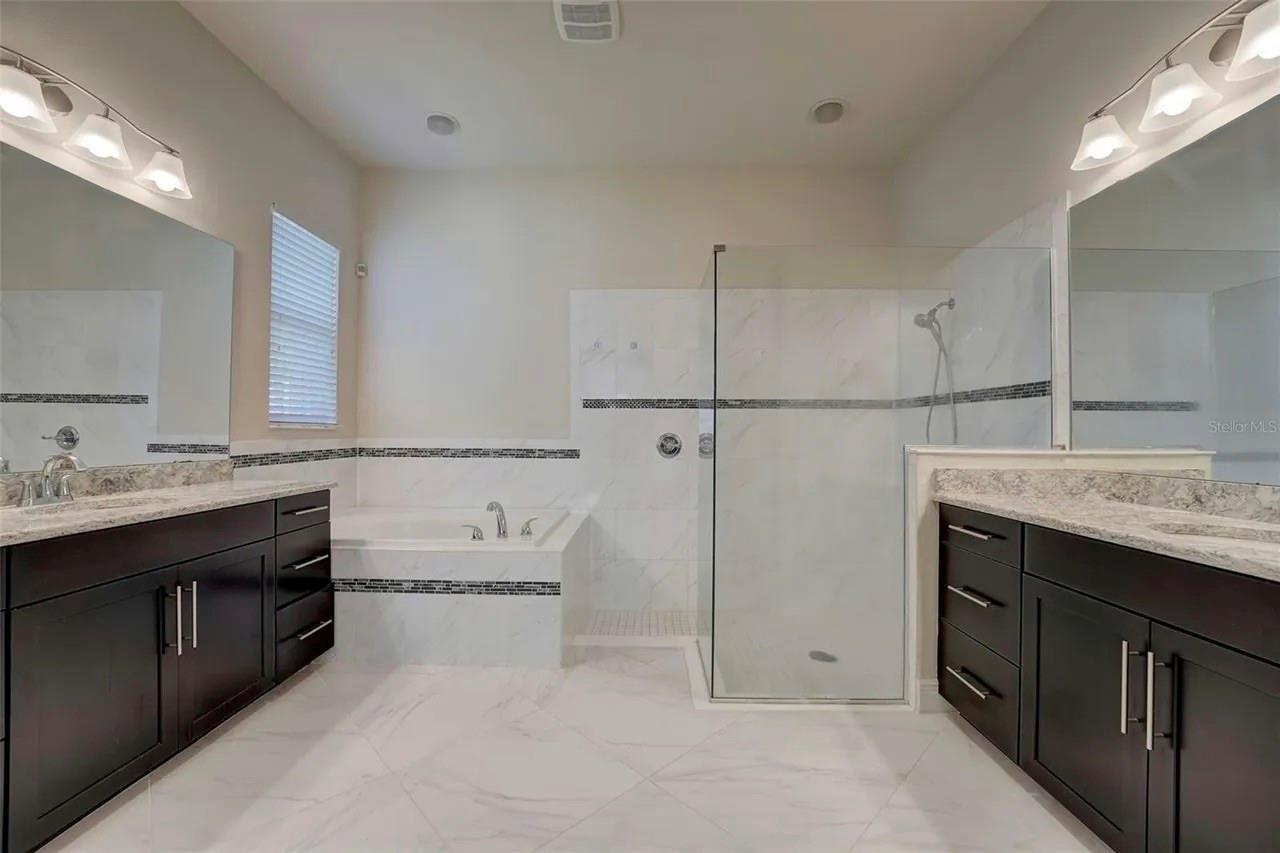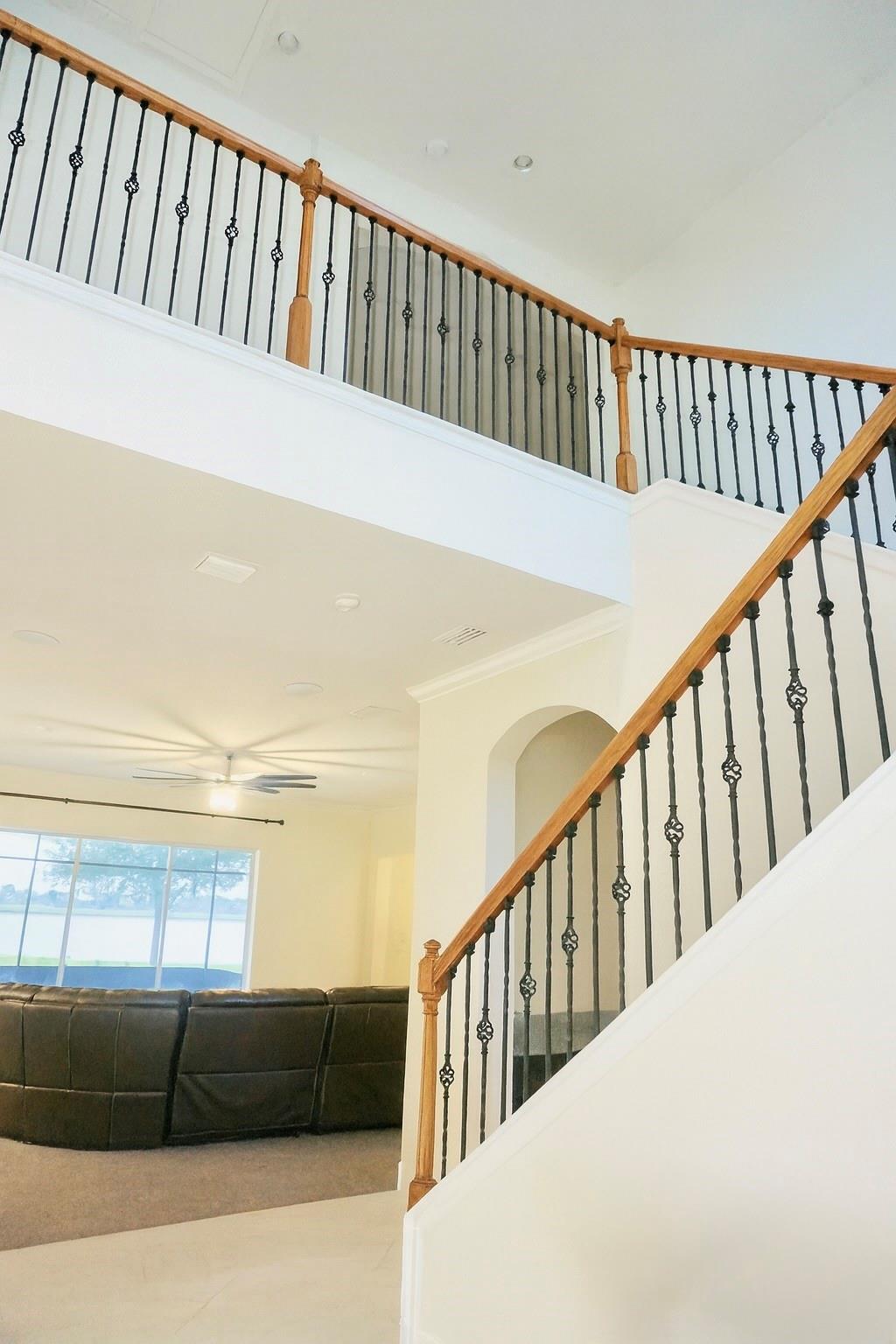 Gorgeous two-story lakefront home with 6 bedrooms, Open Loft, 4.5 baths & 3-car garage. Enjoy special upgrades including reverse osmosis, water softener, and solar panels. The first-floor primary suite features a walk-in shower, dual sinks and designer built-in closet. The gourmet kitchen boasts quartz countertops, 42" cabinets, stainless-steel appliances, and a dinette overlooking the lake. Upstairs includes a large loft, a balcony with gorgeous lake views, Jack-and-Jill bedrooms, a private guest en-suite, and a spacious media room that can be used as an office or 6th bedroom. Lucaya Lake offers resort-style amenities including a clubhouse, designer pool, fitness center trails, and a community dock. Located near Tampa, MacDill AFB, dining, shopping, and beaches.