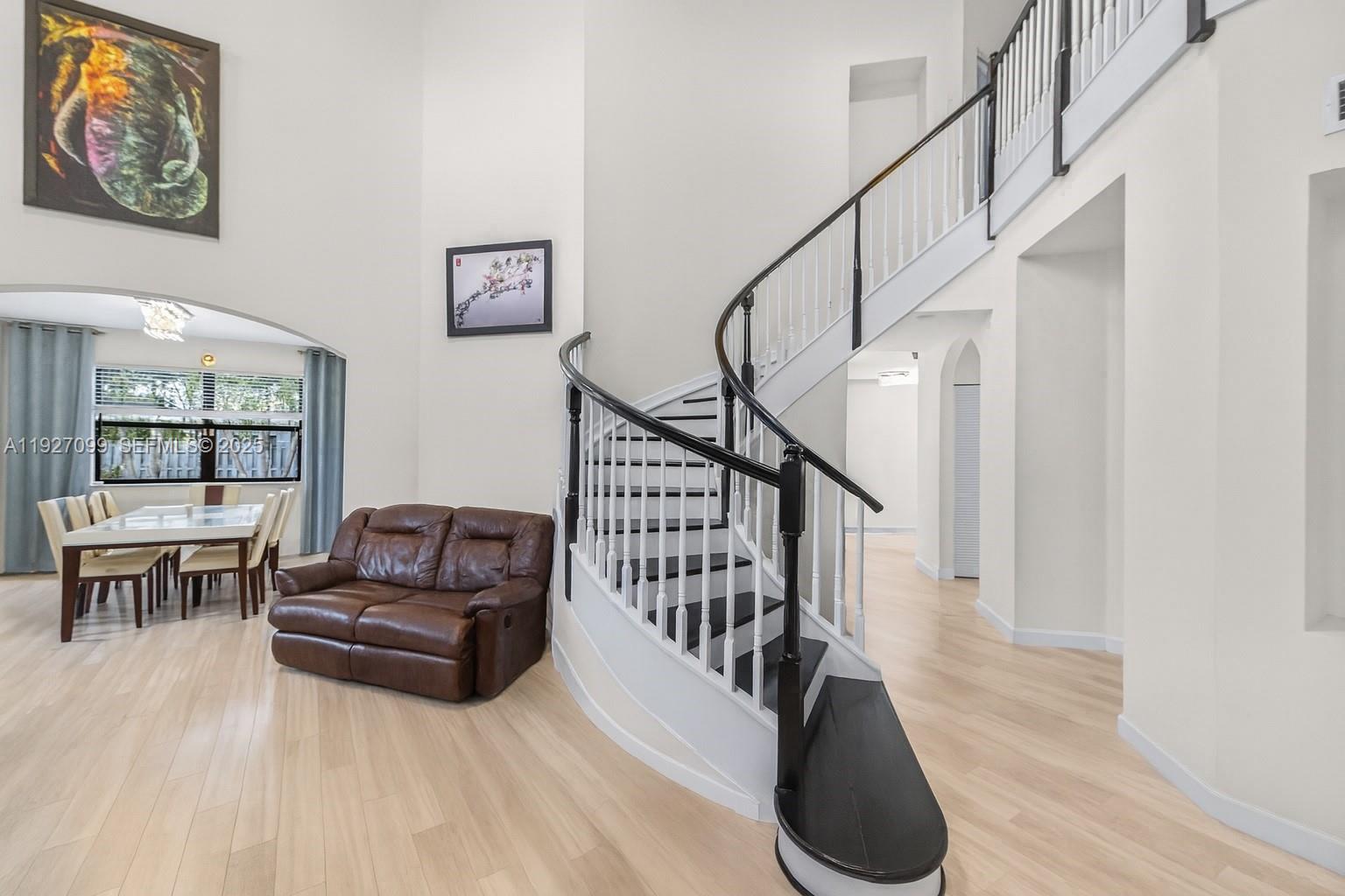 Discover the perfect blend of space, elegance, and resort-style living in this stunning two-story home set on an impressive 11,980 sq. ft. lot. Boasting a 3-car garage and an expansive driveway, this residence offers both comfort and convenience for families, entertainers, and those seeking elevated living. With 5 bedrooms, 4 bathrooms, and 4,320 sq. ft. of living area, there is truly room for everyone.Step inside to find a beautifully updated kitchen and two remodeled bathrooms, all completed in 2022 with modern finishes and thoughtful design. Wood stairs and contemporary light fixtures add a sophisticated touch, enhancing the home’s warm yet refined ambiance. The outdoor space is a true Florida oasis. Enjoy travertine flooring throughout the backyard, an aluminum terrace, and a charming wood gazebo perfect for gatherings. Relax in your private pool and Jacuzzi, equipped with colored lighting and a propane gas heater—ideal for evening dips or weekend fun. Additional upgrades include two water filtration systems, a sprinkler system, and accordion shutters throughout, ensuring comfort and peace of mind year-round. Located inside a secure gated community, residents enjoy top-tier amenities including a gym, playground, community pool, and splash water park—everything you need for a vibrant and active lifestyle. This exceptional property offers the perfect combination of luxury, functionality, and outdoor enjoyment—ready for its next owner to call home.