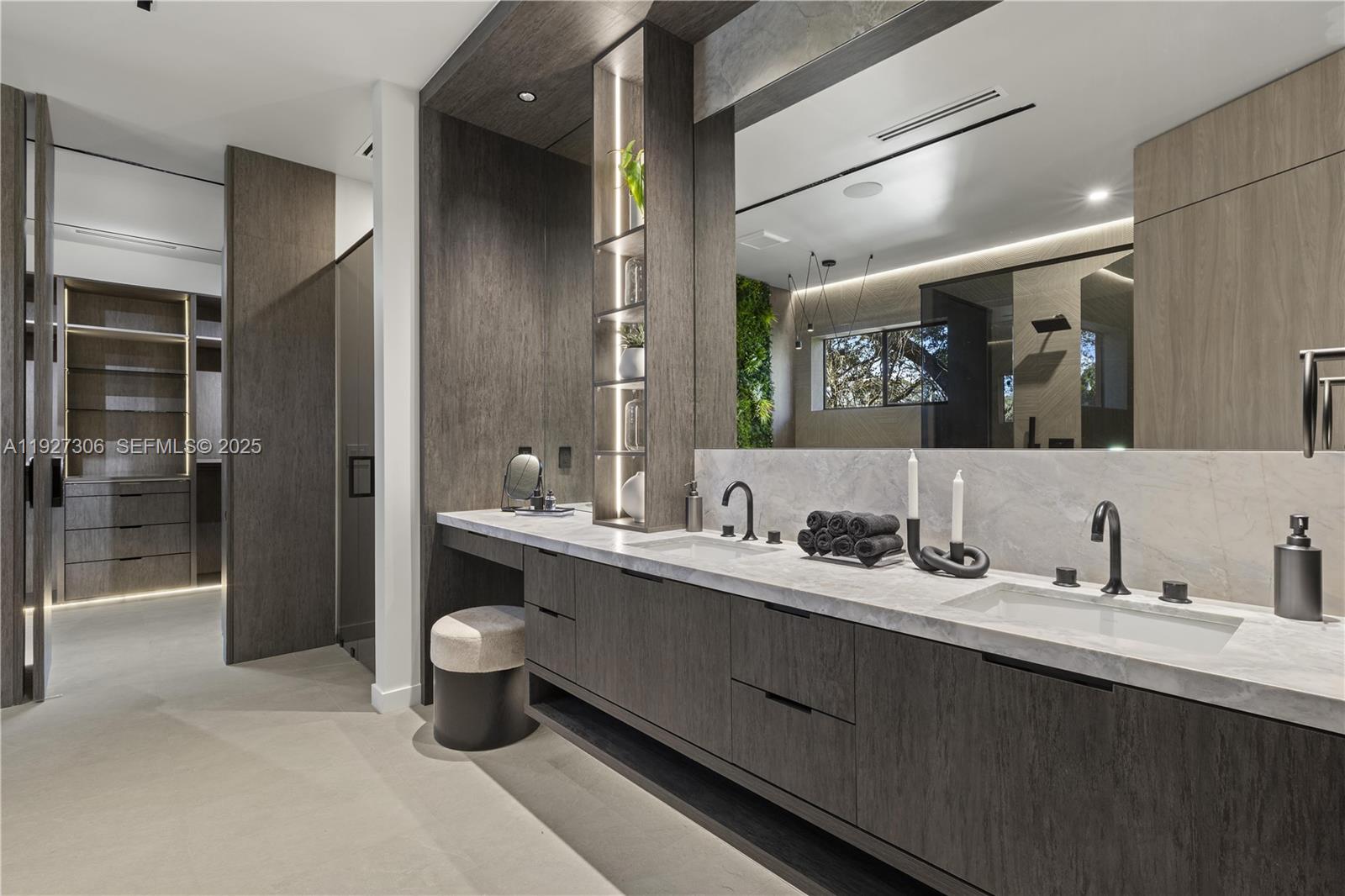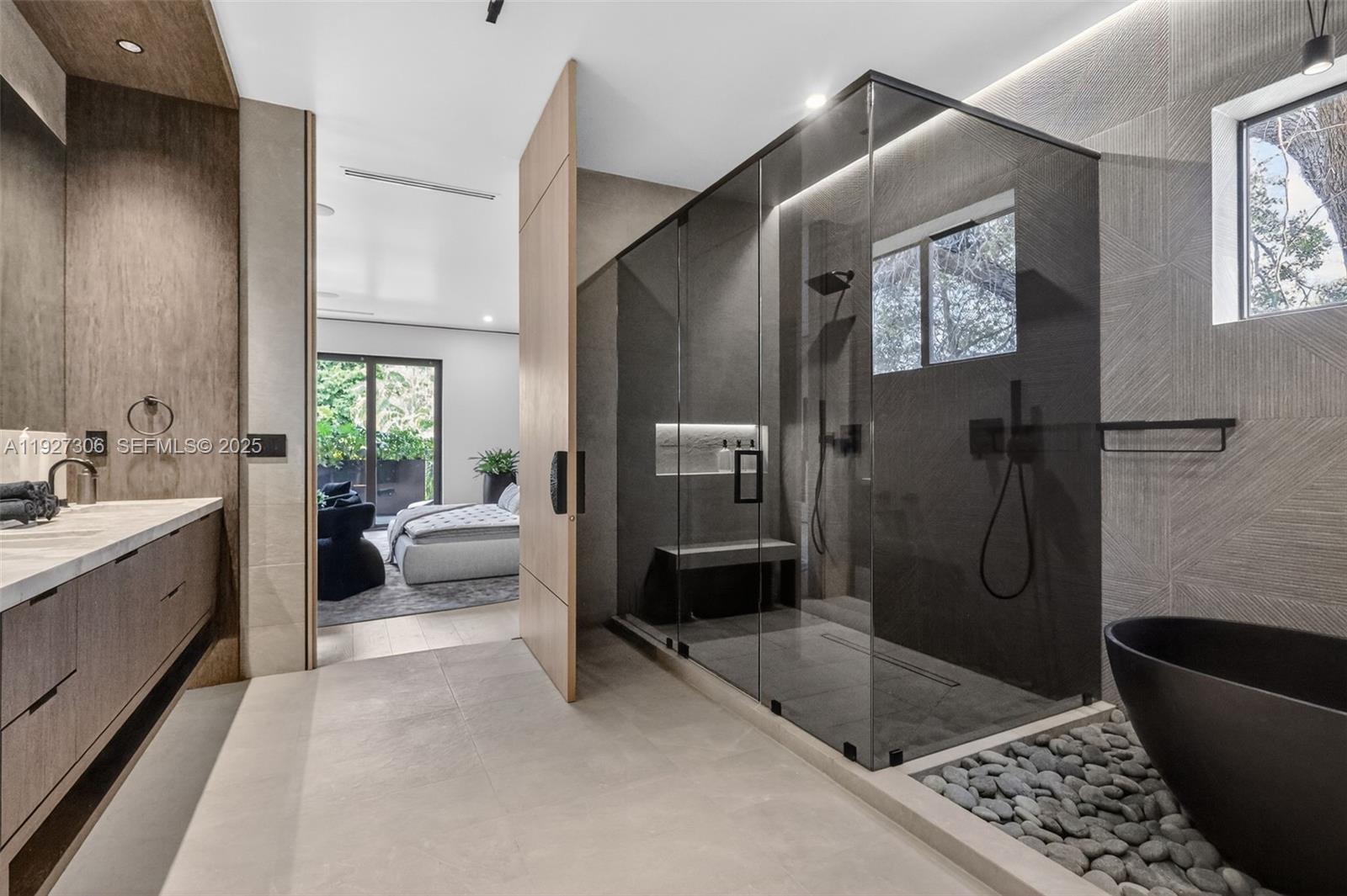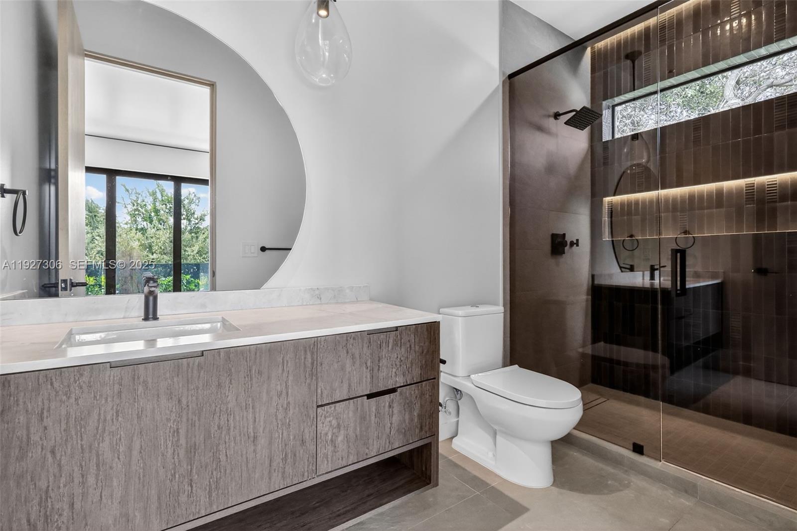 Castello Di Luce, the Castle of Light, is a four bedroom six bath showpiece offering 3,783 sf of living area and 5,393 sf in total. Twenty one foot ceilings crown a great room that opens to a negative edge pool, summer kitchen, and a lush tropical garden. Every space is thoughtfully curated with designer finishes, including green agata quartzite counters, a private gym with sauna, and Sonos audio throughout. With a two car garage and refined details at every turn, this home delivers resort style living in one of Miami’s most family friendly and scenic neighborhoods.