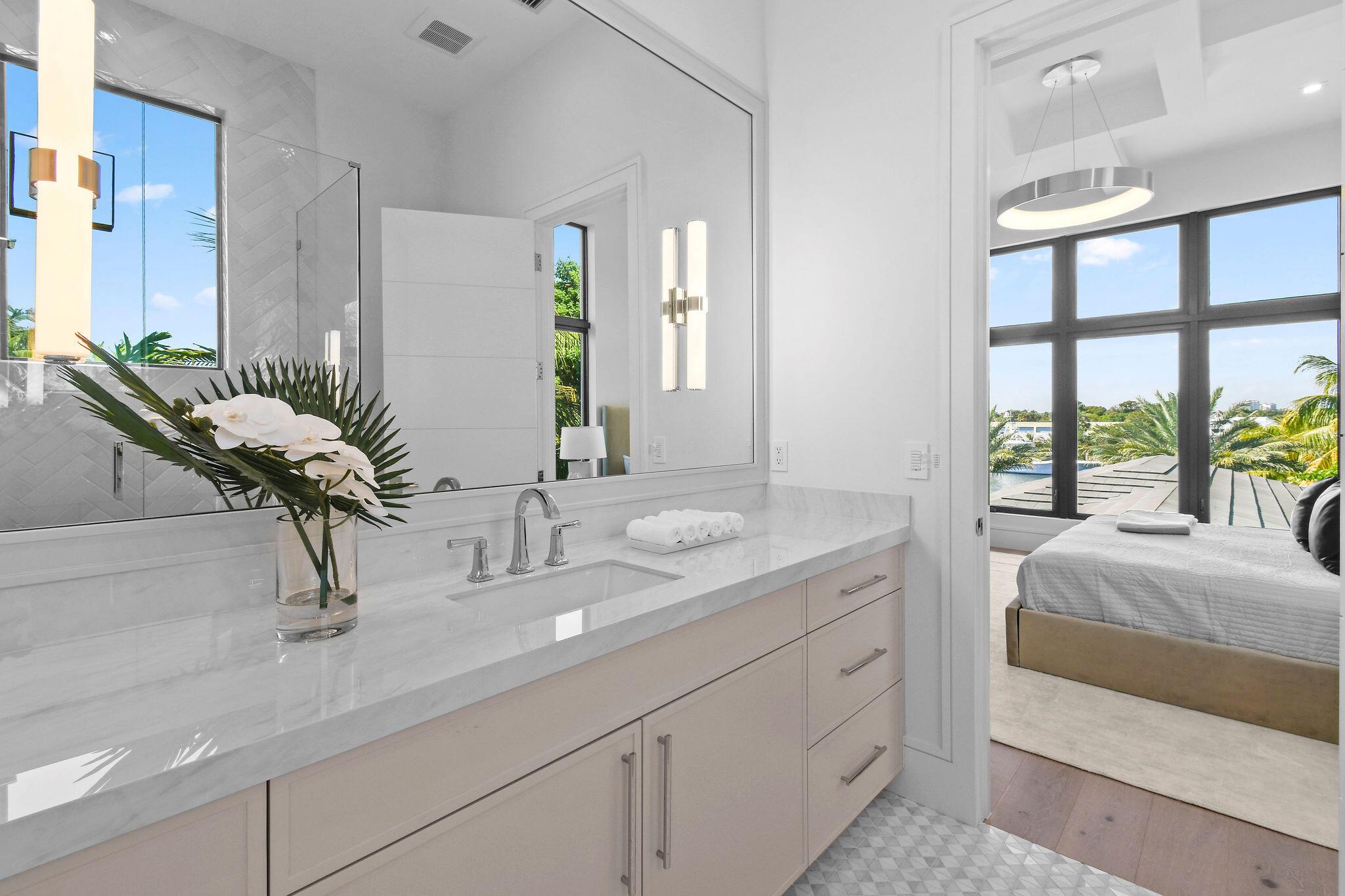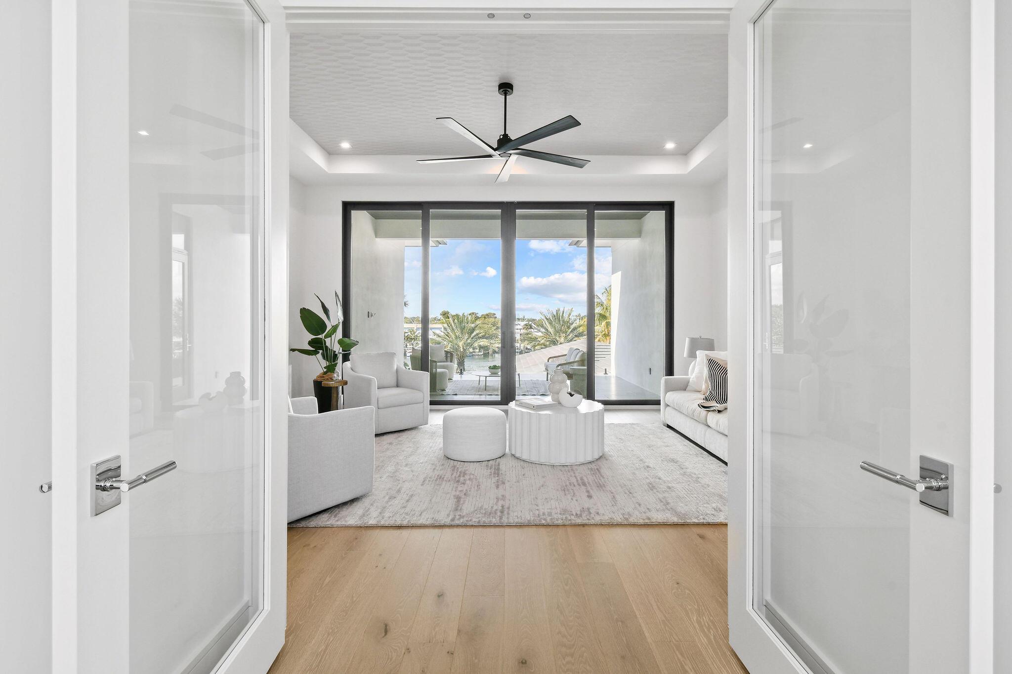 Newly built Intracoastal estate positioned on over half an acre along the direct Intracoastal. This privately gated modern estate embodies uncompromising craftsmanship and refined contemporary living. Completed with a structural integrity seldom seen in residential construction, the home and pool are supported by 106 helical piles, establishing a foundation built for permanence and peace of mind. Thoughtfully designed to merge the architecture with its waterfront surroundings, the residence showcases clean lines, expansive glass, and seamless indoor-outdoor living. A spacious motor court and gated entry offer complete privacy upon arrival, framed by illuminated, meticulously designed landscaping, turf grounds, and custom hardscape inlays. Inside, the home reveals 12-foot ceilings with