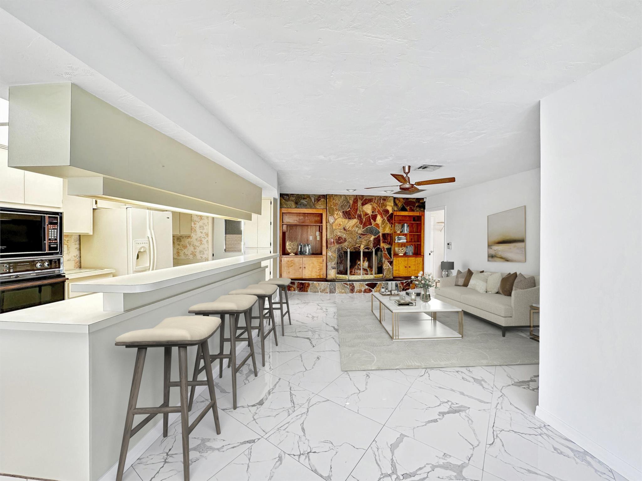 Discover the epitome of family living in this charming 3-bedroom, 2-bathroom single-family residence nestled in a serene, well-established neighborhood, perfect for those seeking tranquility and convenience. This home stands out with its robust construction featuring a 2021 metal roof and a spacious 2156 sq/ft living area, all on a generous .32-acre corner lot with a welcoming circular driveway.Boasting a split floor plan that promotes privacy, the masterful design integrates a sizable living room with sliders that lead out to a screen-enclosed, freshly refinished inground pool--your private oasis for relaxation or entertaining. The family room, warmed by a cozy fireplace, flows seamlessly into a kitchen equipped with ample cabinets, vast countertop space, and a convenient recipe/