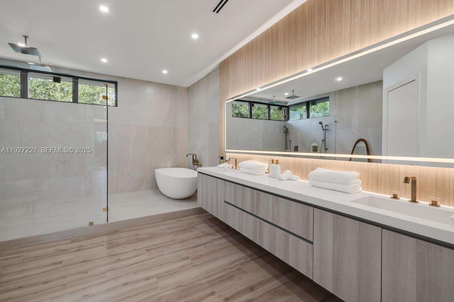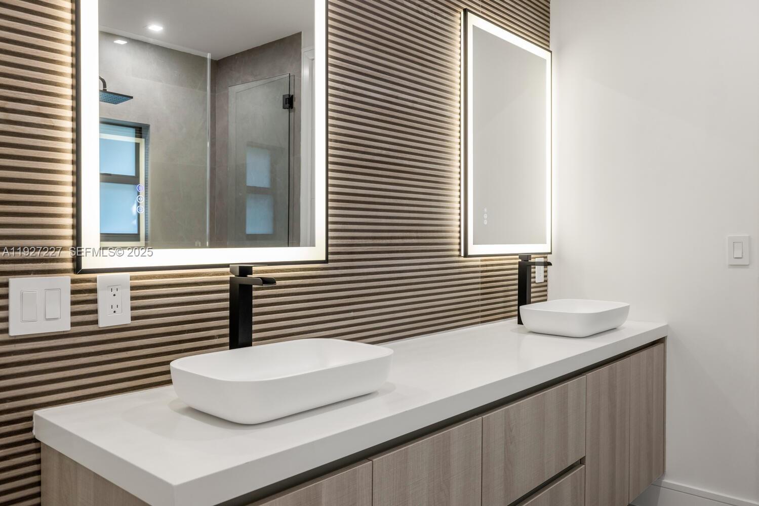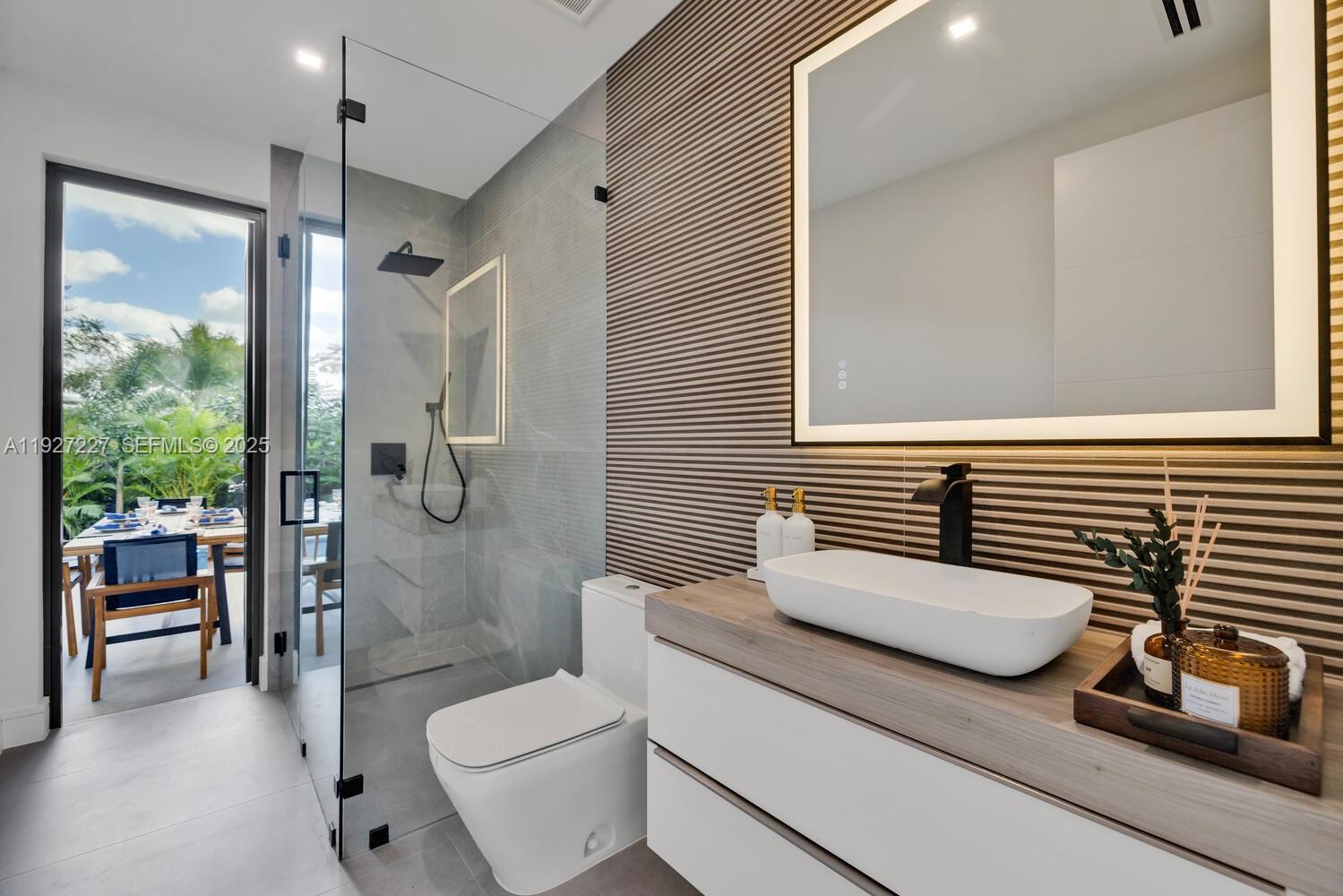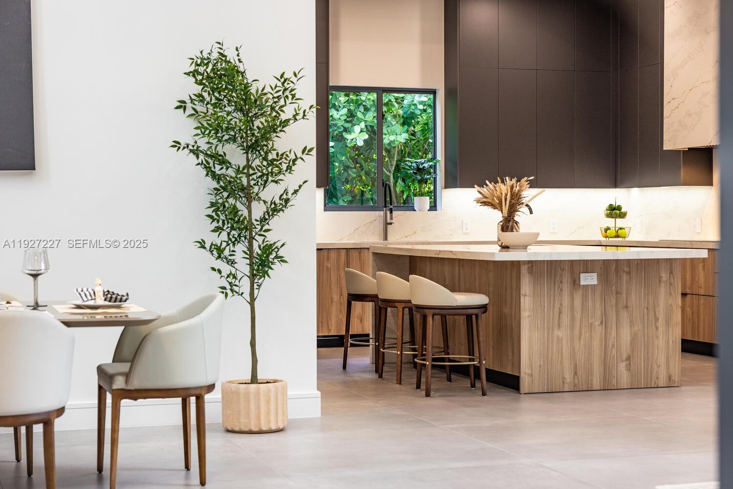Be the first to live in this newly built contemporary residence located on one of the most desirable streets in Biscayne Park, known for its tree-lined streets and architecturally distinctive homes. This home blends Mid-Century Modern design with a dramatic 22-ft ceiling, open floor plan, sleek custom finishes, and Wolf appliances. Lush landscaping grounds the modern build and enhances privacy. Filled with natural light throughout, the home features an impressive 1,000-sq-ft primary suite with an open office/den that overlooks the canopy of mature Oaks. An oversized garage, exceptional craftsmanship, and high-quality construction materials, and solid concrete roof make this over engineered masterpiece one of a kind. Ideally located minutes from the beach, Miami Design District and some of Miami’s top private schools (Miami Country Day and Cushman) Contact listing agent for additional details and material. 3918 sq ft under AC + 483 sq ft garage. Over 5000 sq ft total