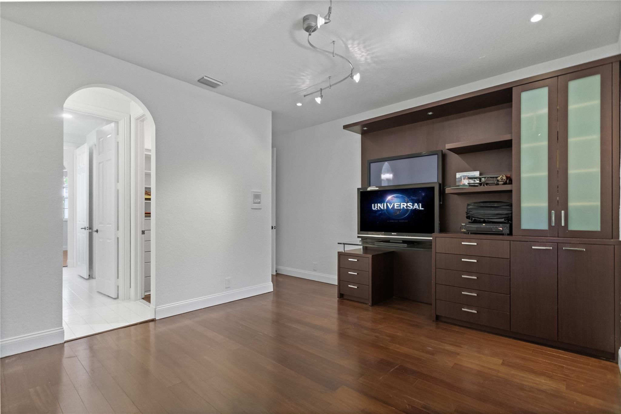 One of a kind, custom 6 beds, 5.5 baths+ office, media room, 3 car garage on nearly ½-acre private lot with no rear neighbors, massive travertine pool deck, outdoor kitchen and is fully fenced. What REALLY sets this house apart is the extended oversized kitchen, extended primary bathroom and custom closet add on (extra sqft) in the primary suite. No expense spared, only the finest materials and natural stones used throughout. Modern floating staircase, smooth texture walls, build outs, solid core doors, full steam shower, jacuzzi tub. Chef’s kitchen w/ Wolf double ovens, Sub-Zero refrigerators, Miele induction stove, built in espresso machine, dishwasher. Viking wine cooler. Separate bed/bath downstairs is perfect for an in-law or guest. Walking distance to park and school bus drop off.